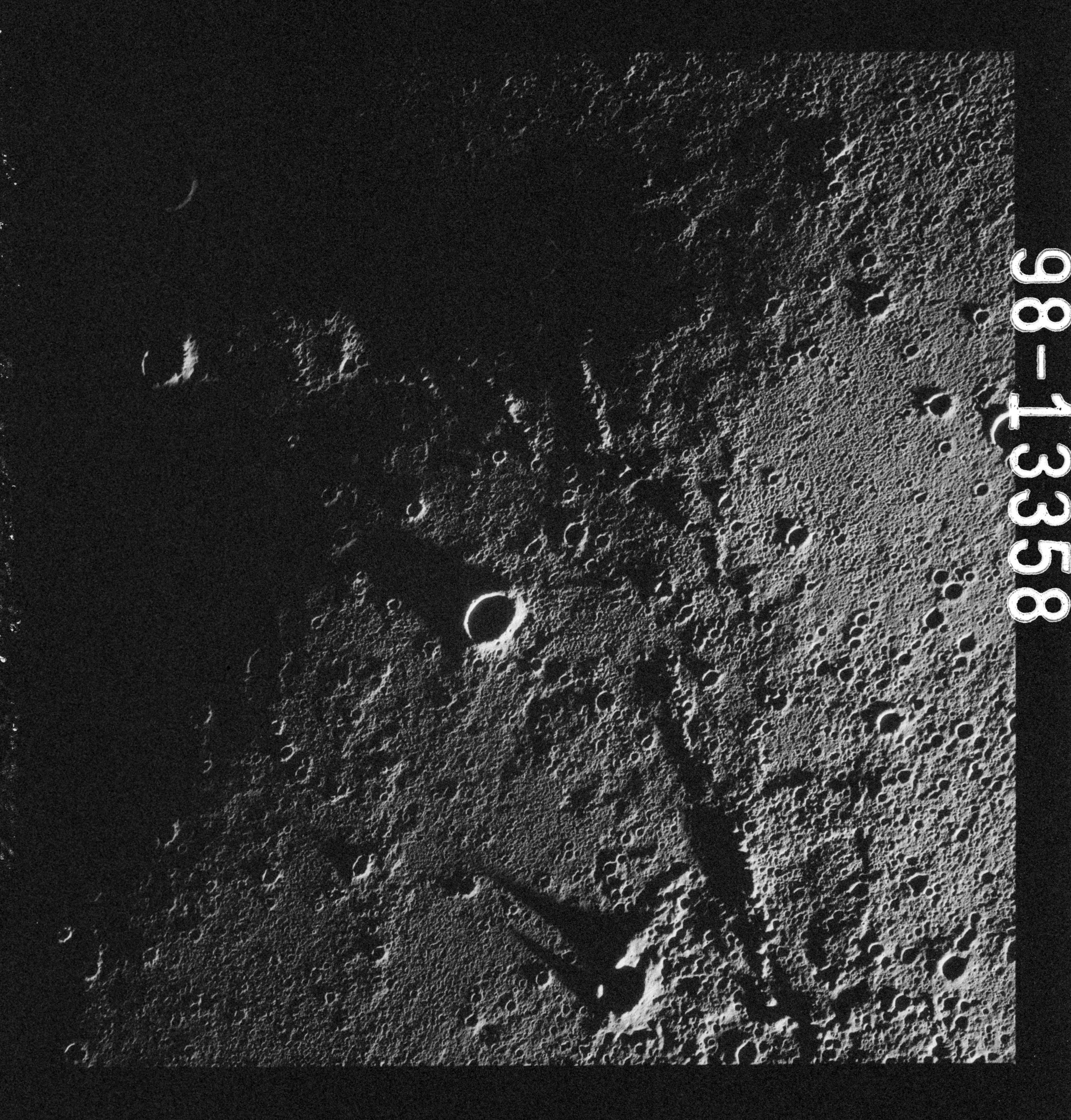 The next 11 images, AS15-97-13183 to 13193 scan across the 127-km crater Sklodowska travelling in a SE-NW direction. Not far away from this feature is the slightly larger crater, Curie, which gives a hint of where the former got its name, for Sklodowska is the maiden name of Marie Curie, 1867-1934, the Polish physicist and chemist who twice won the Nobel prize, first in physics along with her husband Pierre for whom the other crater is named, and then in chemistry.