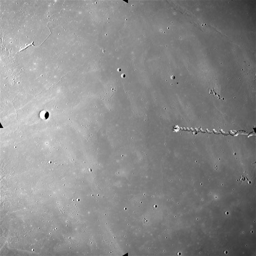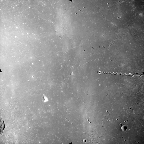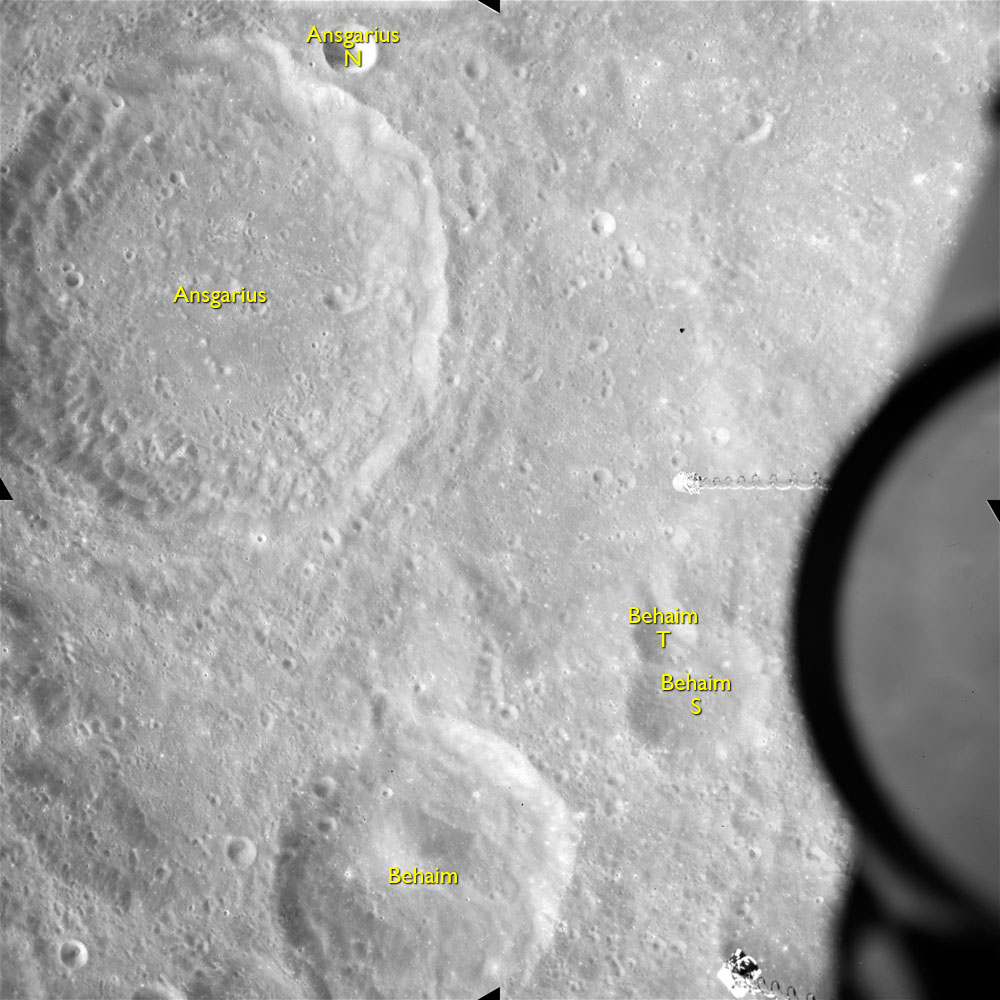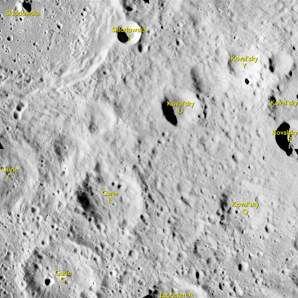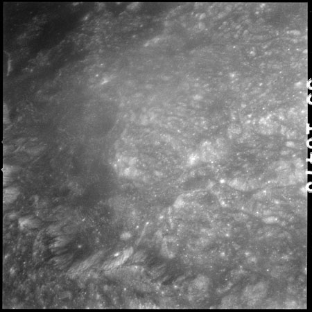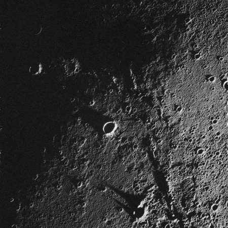 Before reaching their target, they take an excellent image of crater Koval'sky P which obscures the entire southwest rim of Kovalsky.