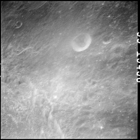 AS15-97-13182 - Eroded crater between Koval'sky U and Koval'sky Y; 21.09°S, 99.2°E - Image by NASA/Johnson Space Center.