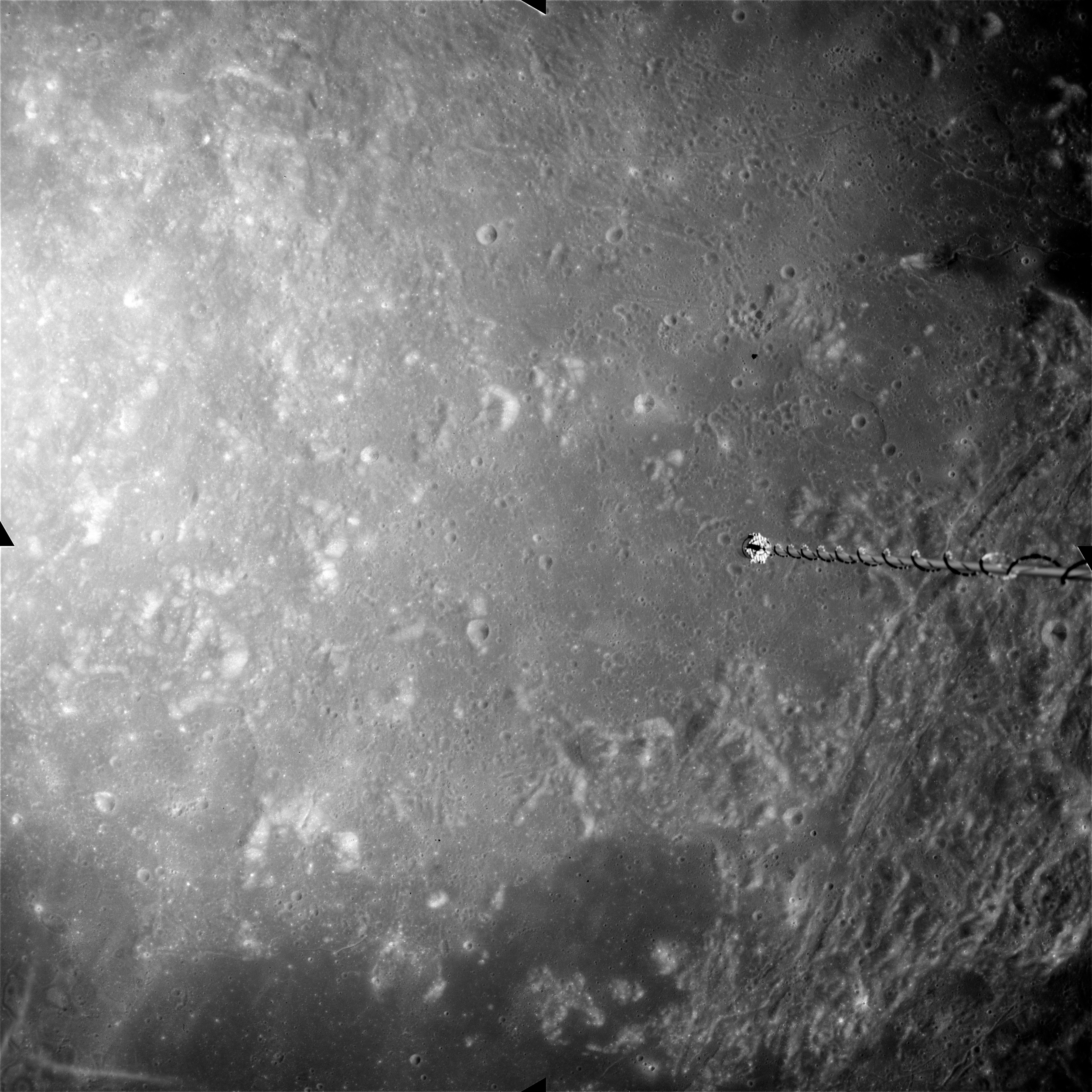 At about 198:15 GET, Endeavour begins its 62nd orbit of the Moon. Soon after, Al reduces the deadband to ½° for the sake of a period of Mapping Camera photography which is due to begin at 198:32:10, just as the spacecraft crosses the terminator into lunar day. However, they will miss this start time and instead start the camera 14 minutes later after a prompt from Mission Control.