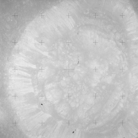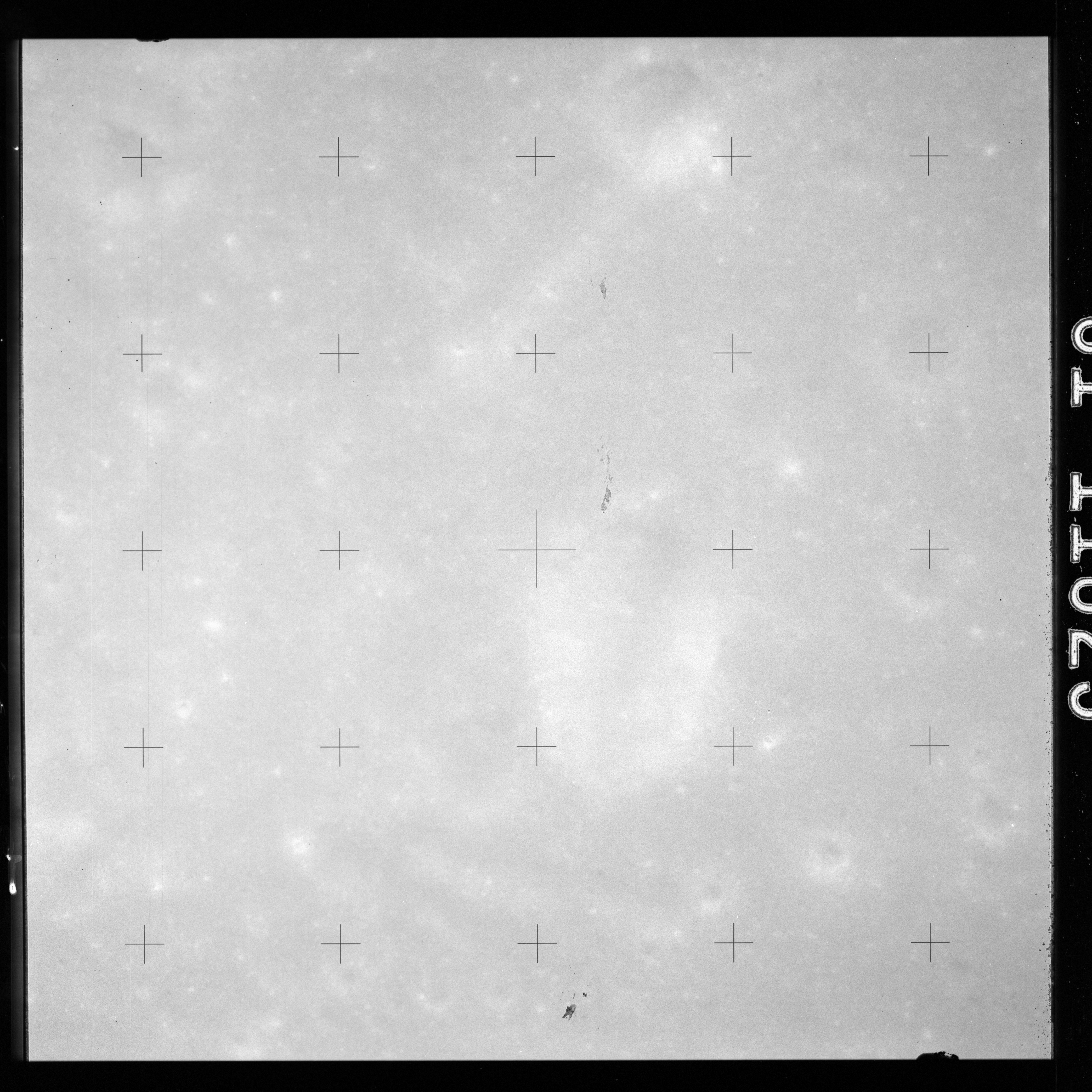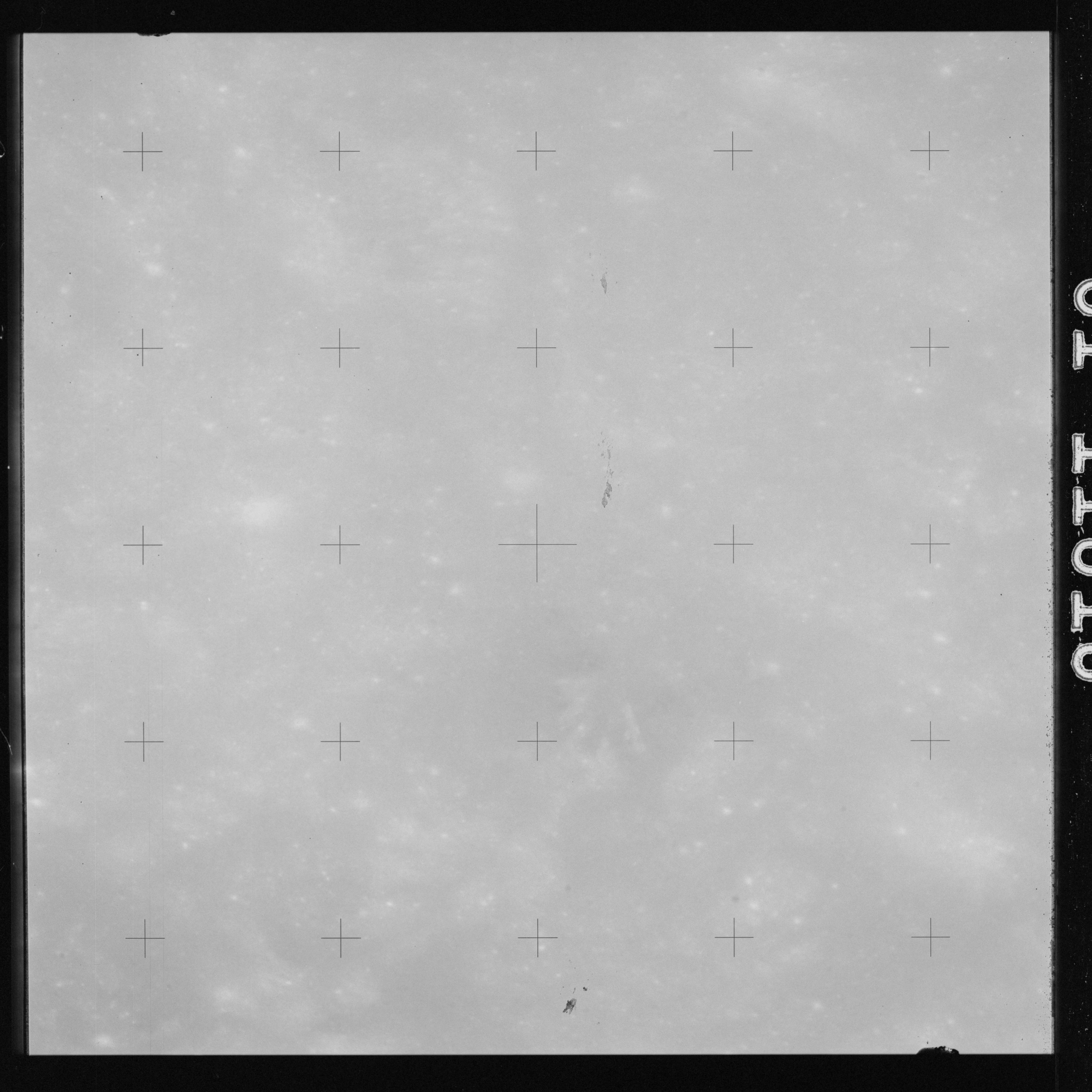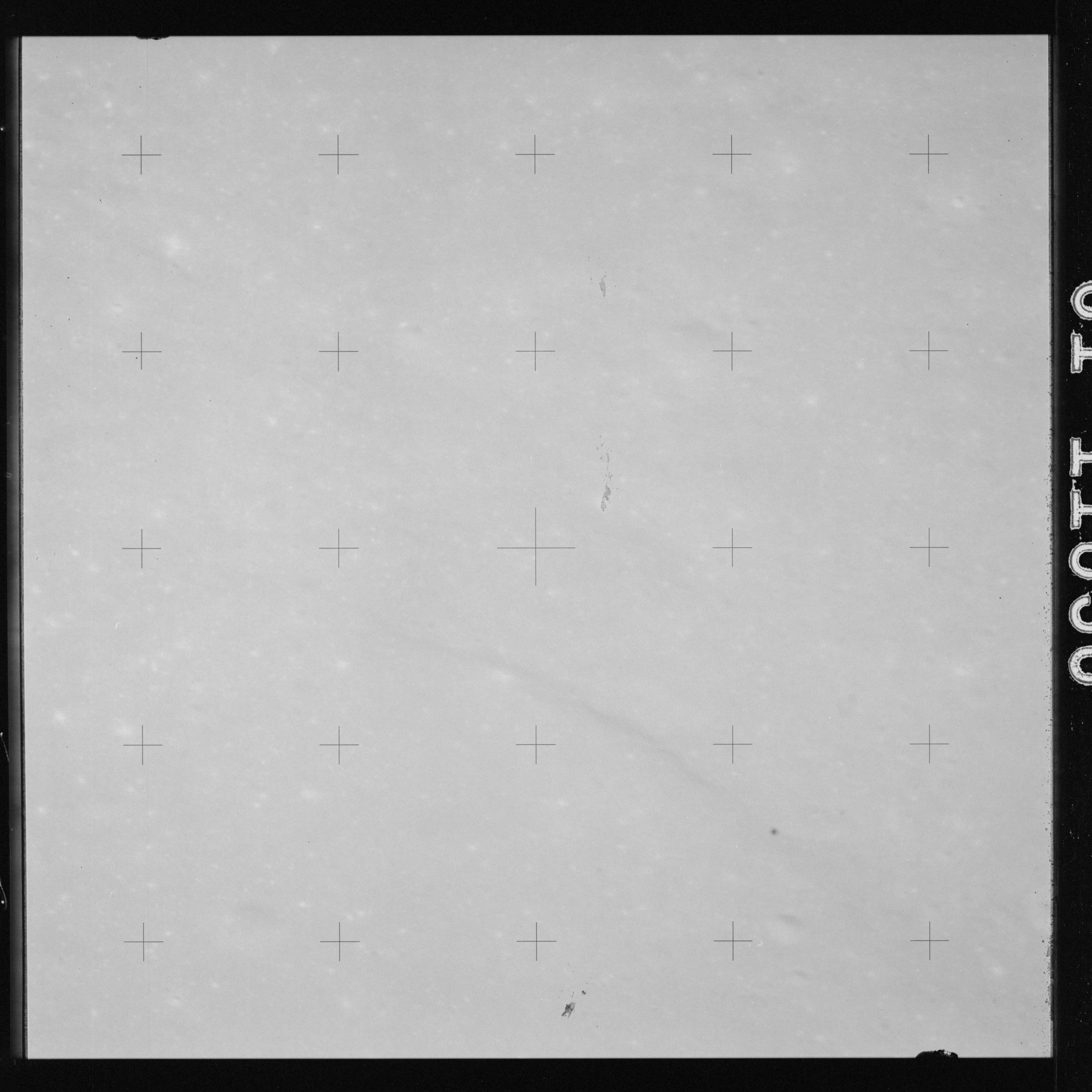 Using colour film in magazine PP and its wide-angle lens, AS15-90-12299 begins a sequence of four images which allow the spacecraft's motion to track the camera across the western Mare Imbrium. The contamination on the Réseau plate of this camera is very apparent.