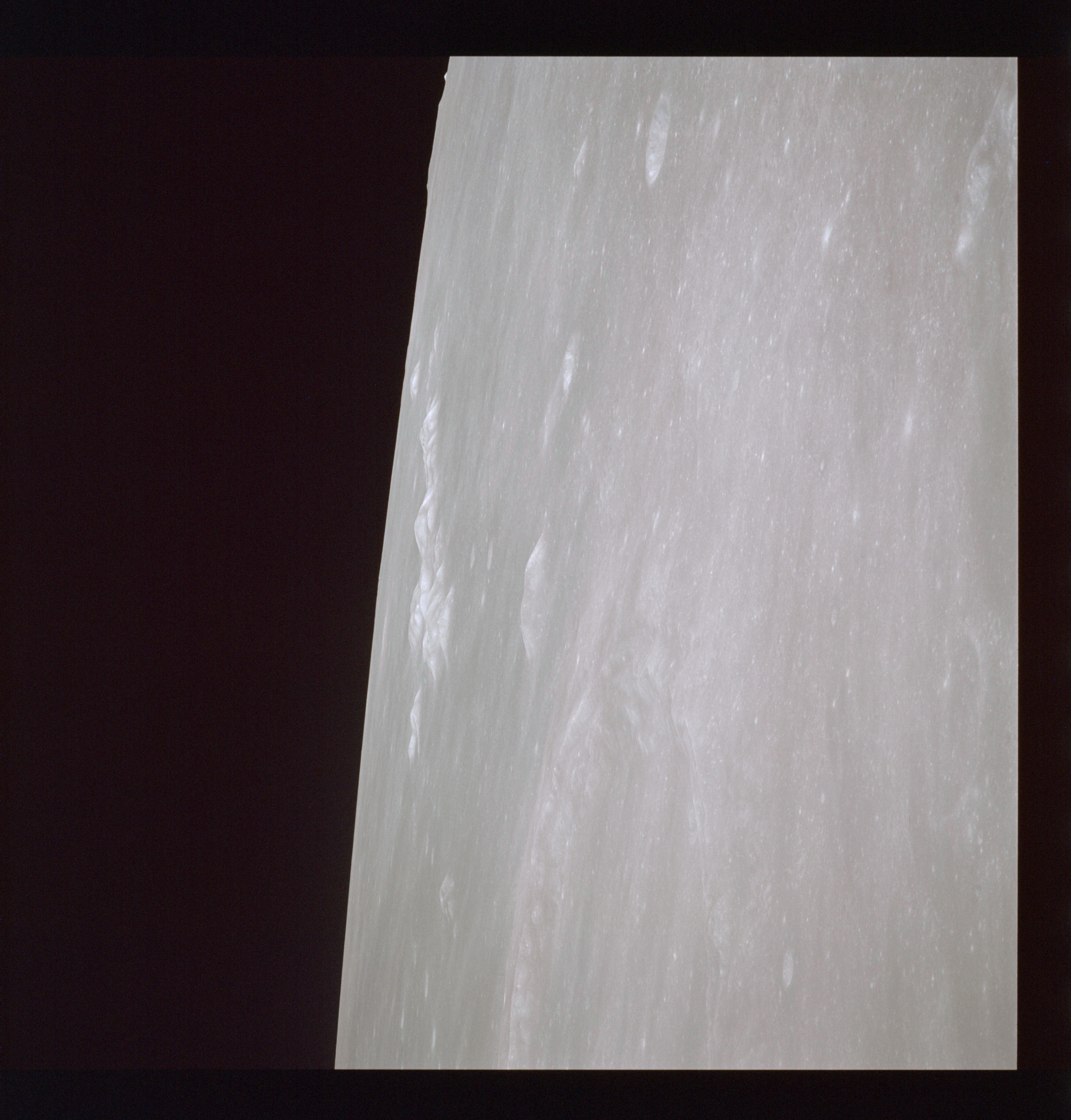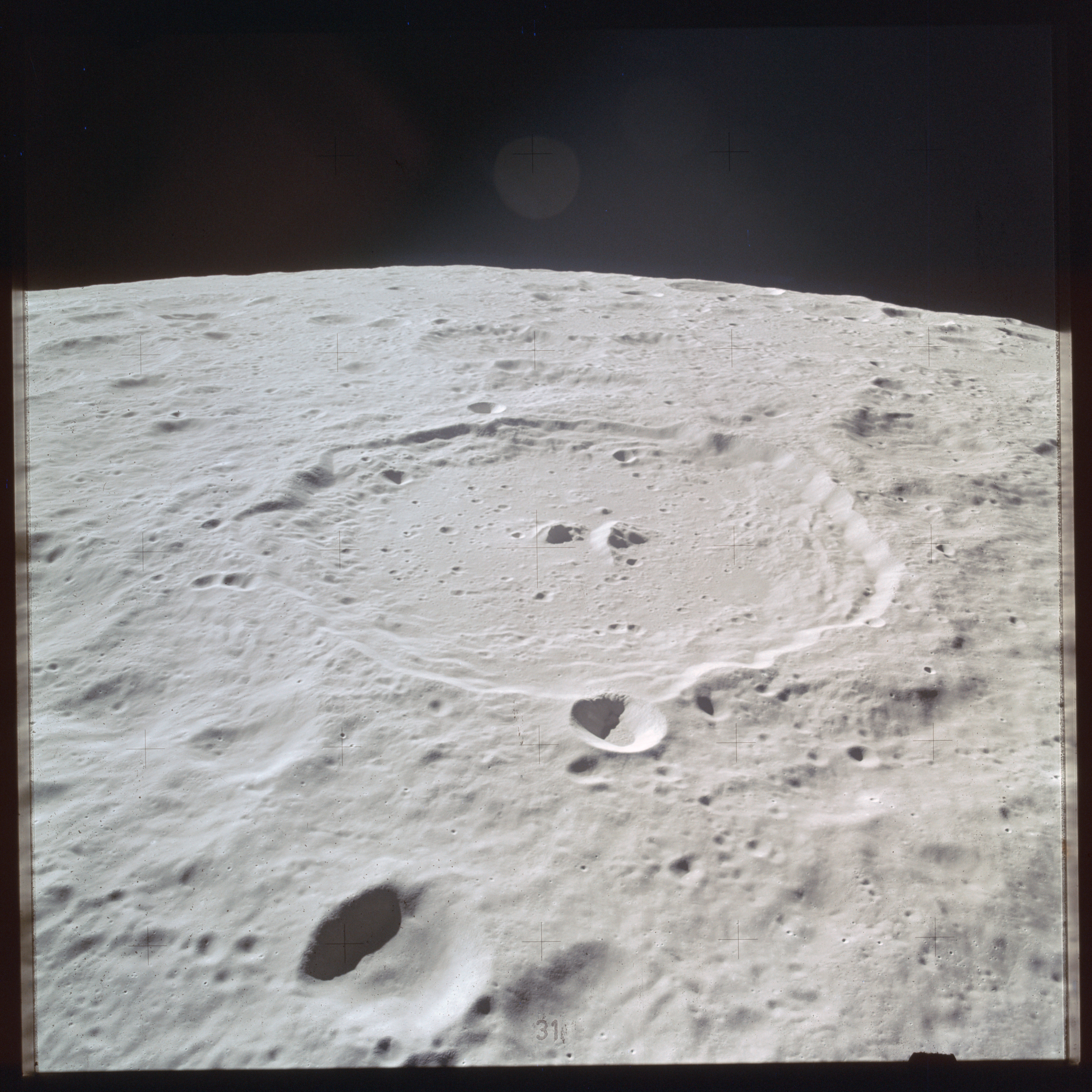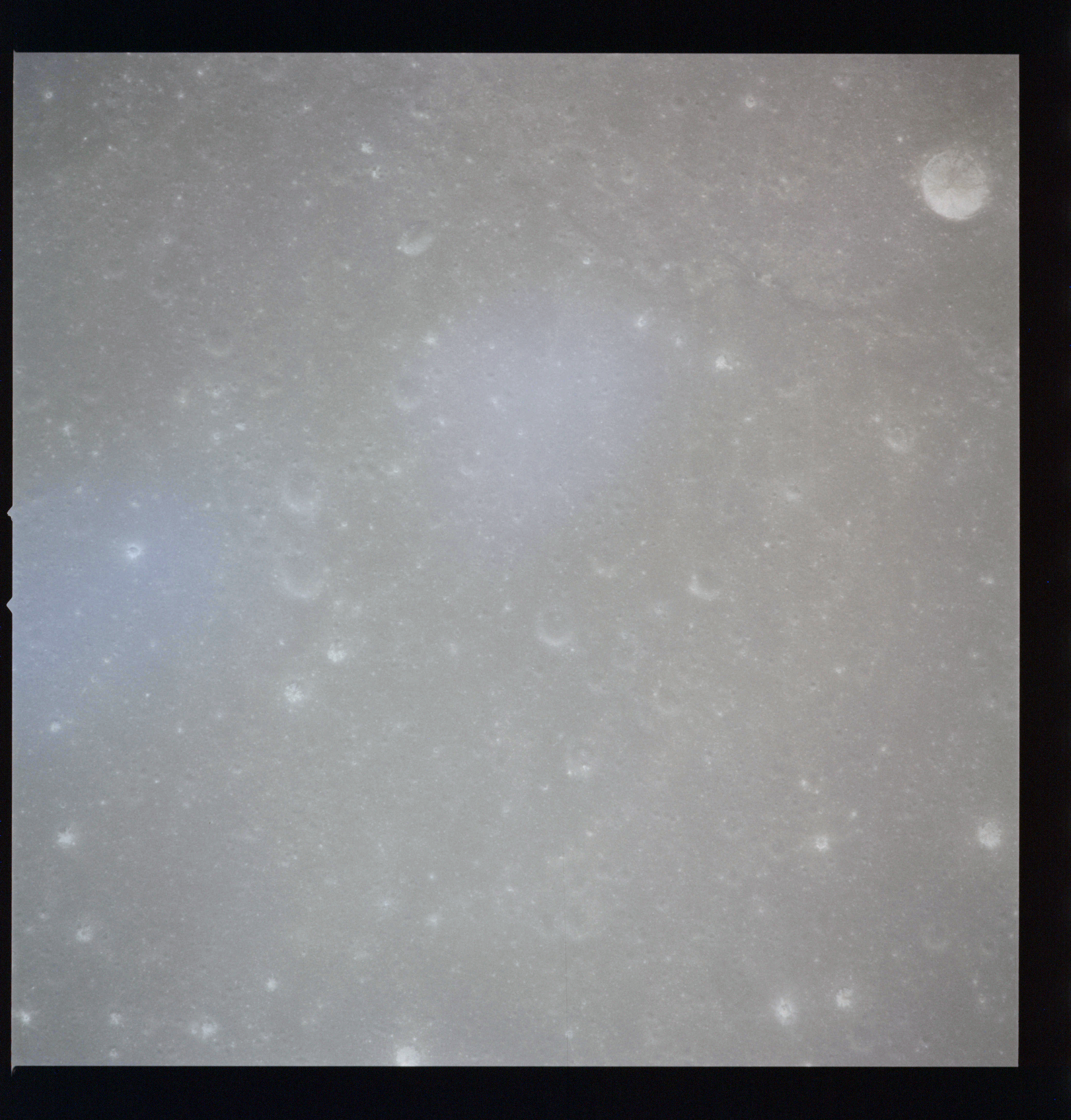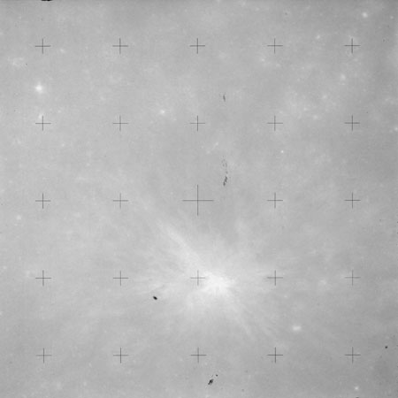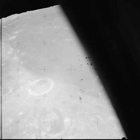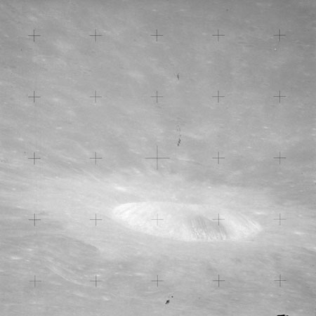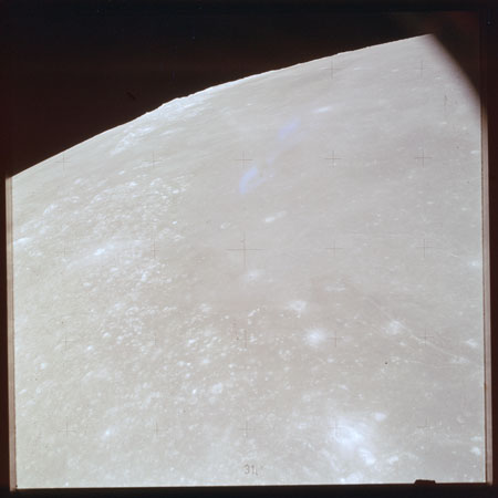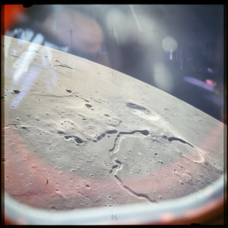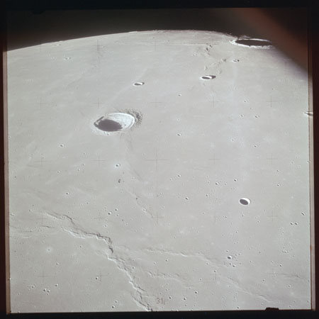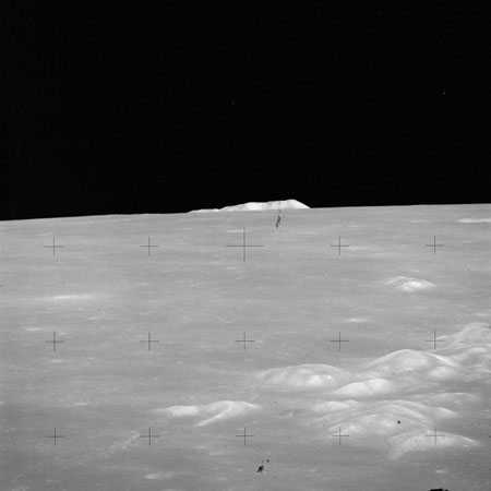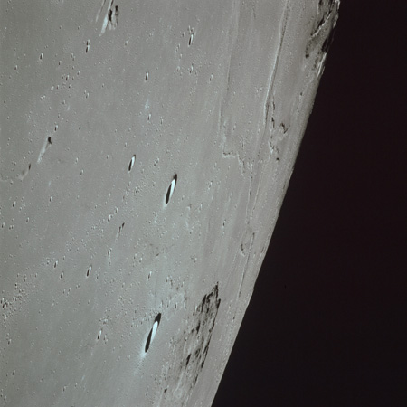 The 'Apollo 15 Index of 70-mm Photography' lists a sequence of 22 photographs as having been taken at any time between revolutions 64 and 72, the photo analysts having been unable to tie the exposures down more accurately. They were taken on magazine TT with a 60mm lens and are AS15-88-11985 to 12006. This seems as good a time as any to discuss these images.