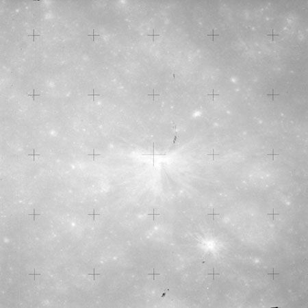 The Paperclip also appears in image AS15-90-12304 but is partly obscured by the dirt on the camera's Réseau plate.