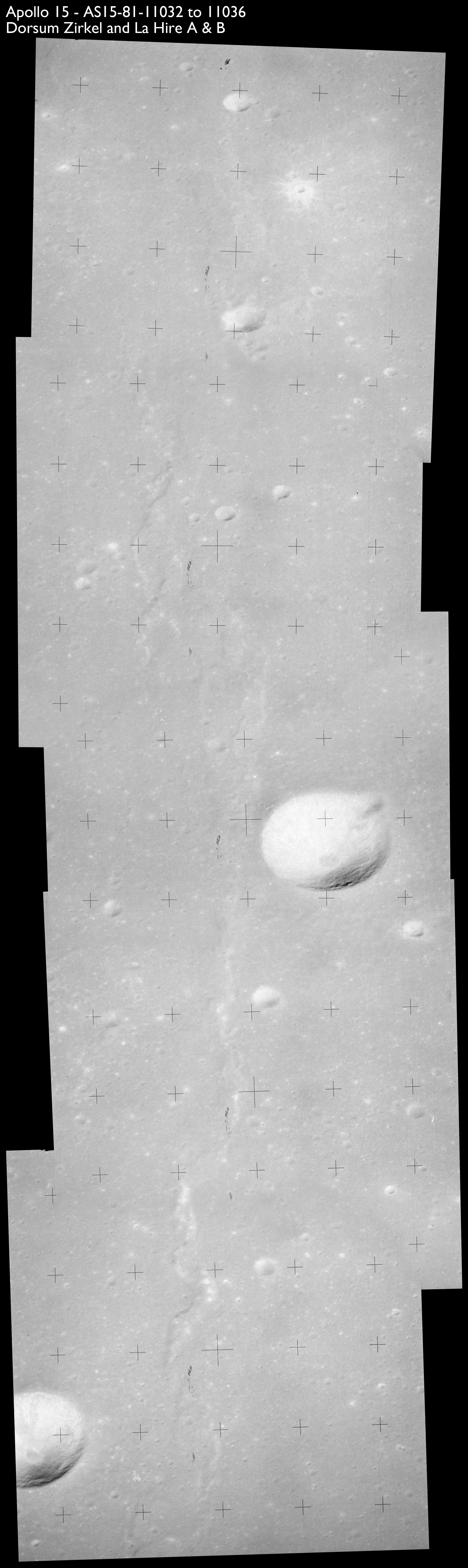 Composite image of Dorsum Zirkel and craters La Hire A (centre) and La Hire B (cut off bottom left) - Source images by NASA/Johnson Space Center.