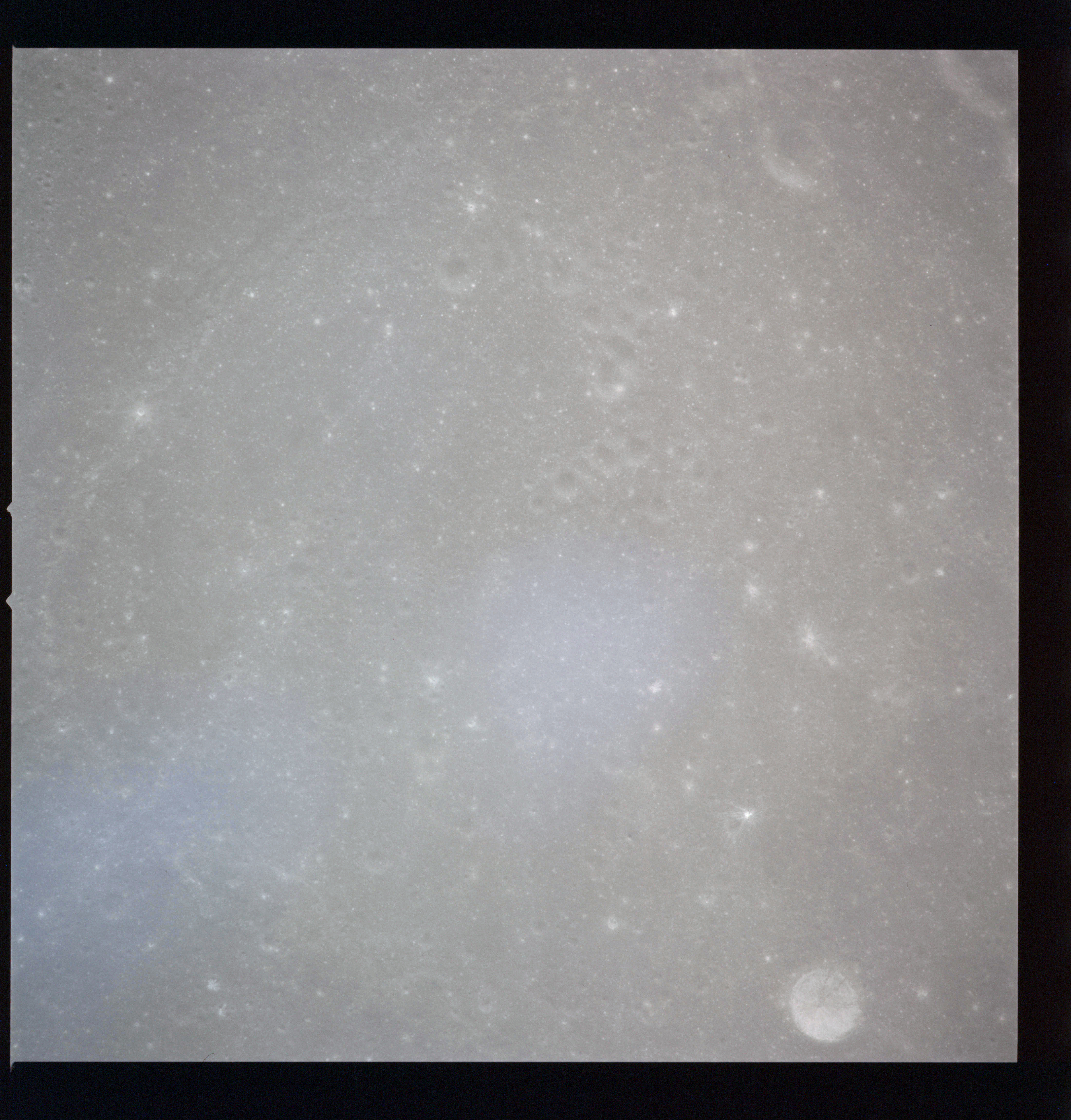 AS15-88-12000 and 12001 is of the Sulpicius Gallus region and the southwest rim of the Serenitatis basin, also known as Montes Haemus. The high Sun elevation makes the boundary between the mare and the Montes Haemus mountain chain difficult to see.