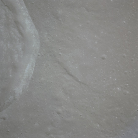 As seen from Earth, the Moon is very near full and as a consequence, there are only about five minutes between Endeavour passing the terminator and AOS. Only limited photography can be achieved on the far side, so with magazine TT and the slightly wide-angle 60-mm lens, three images are taken during this short interval.