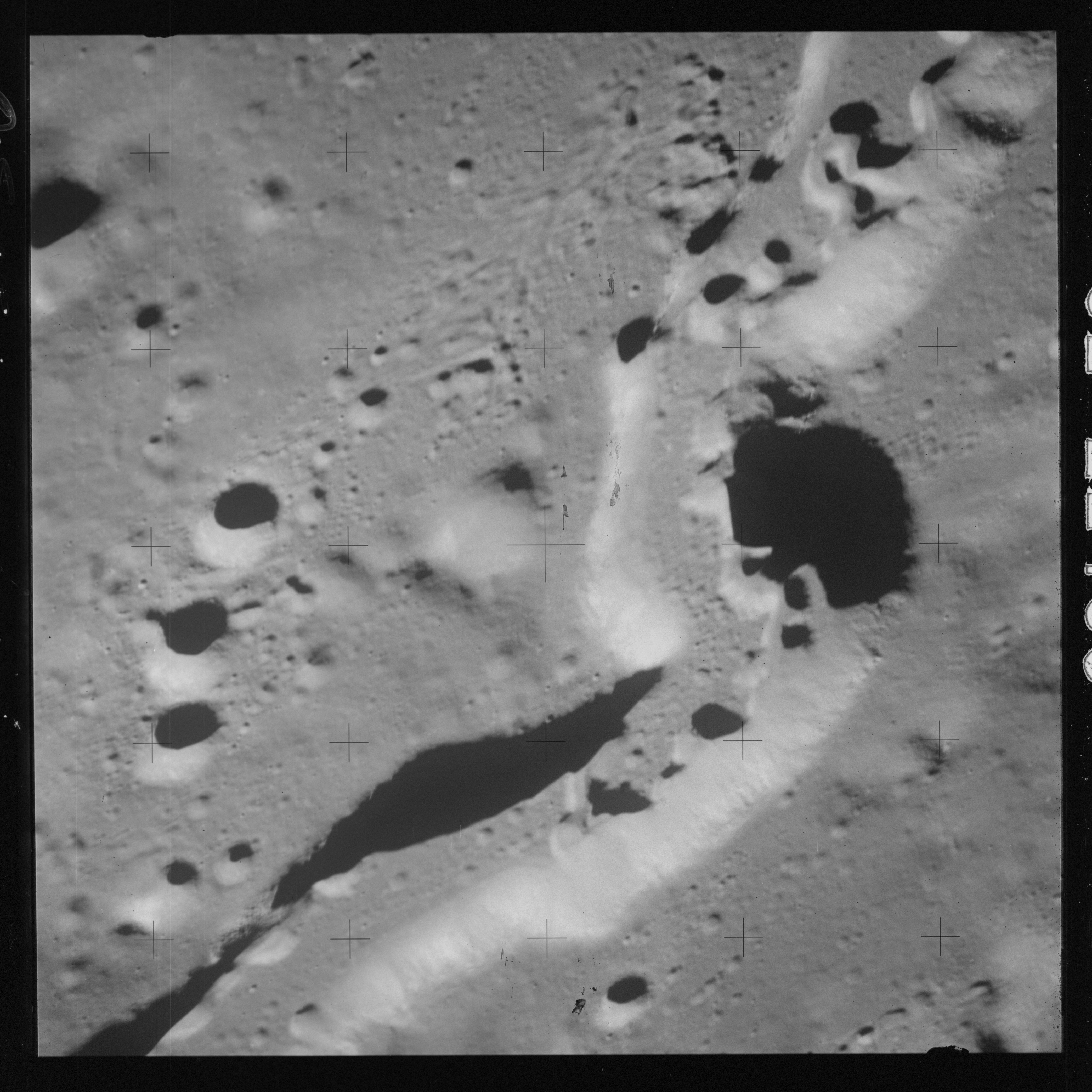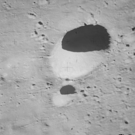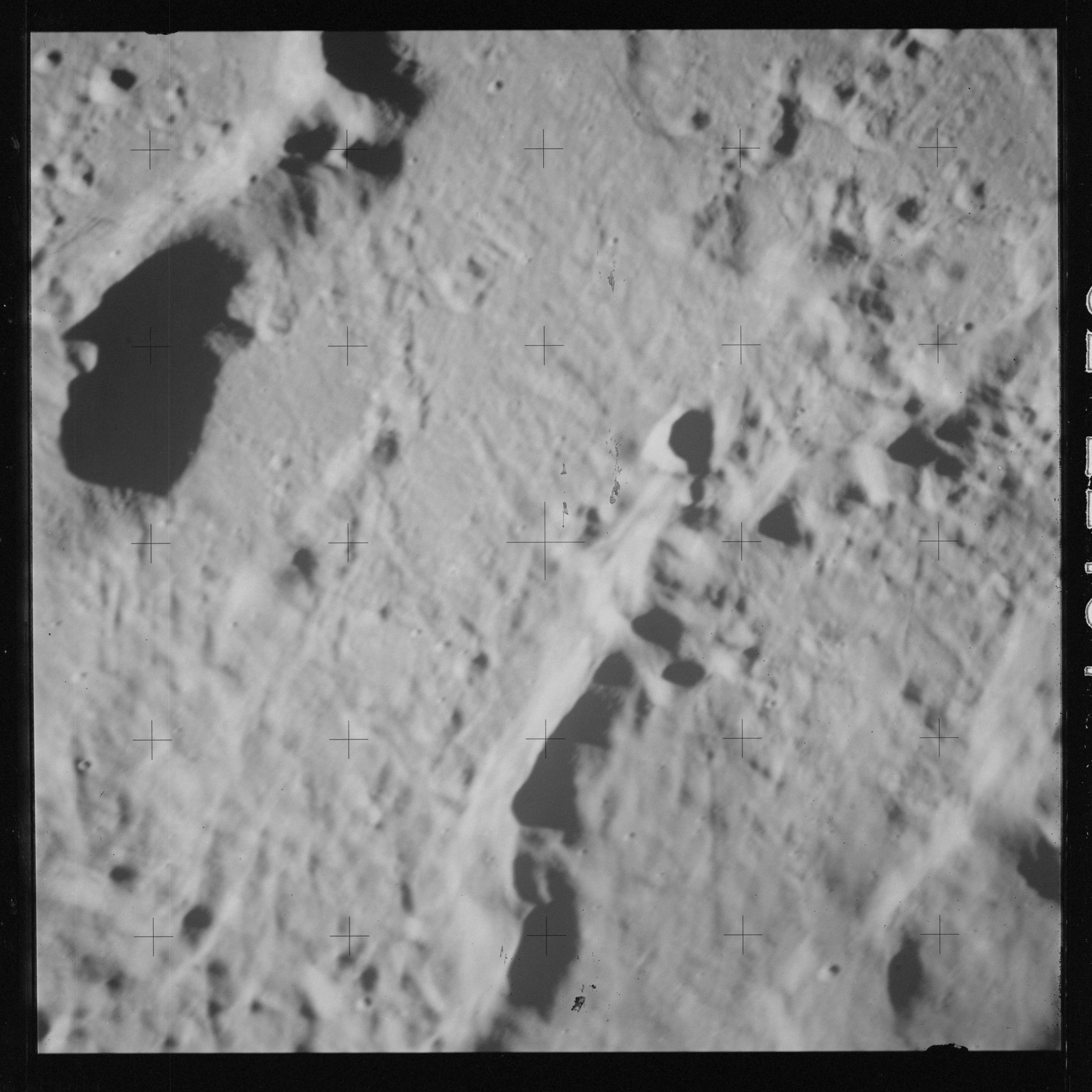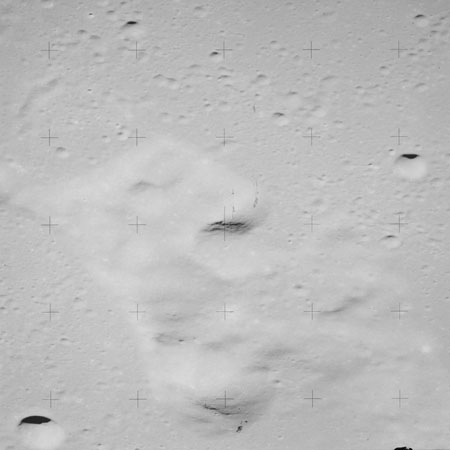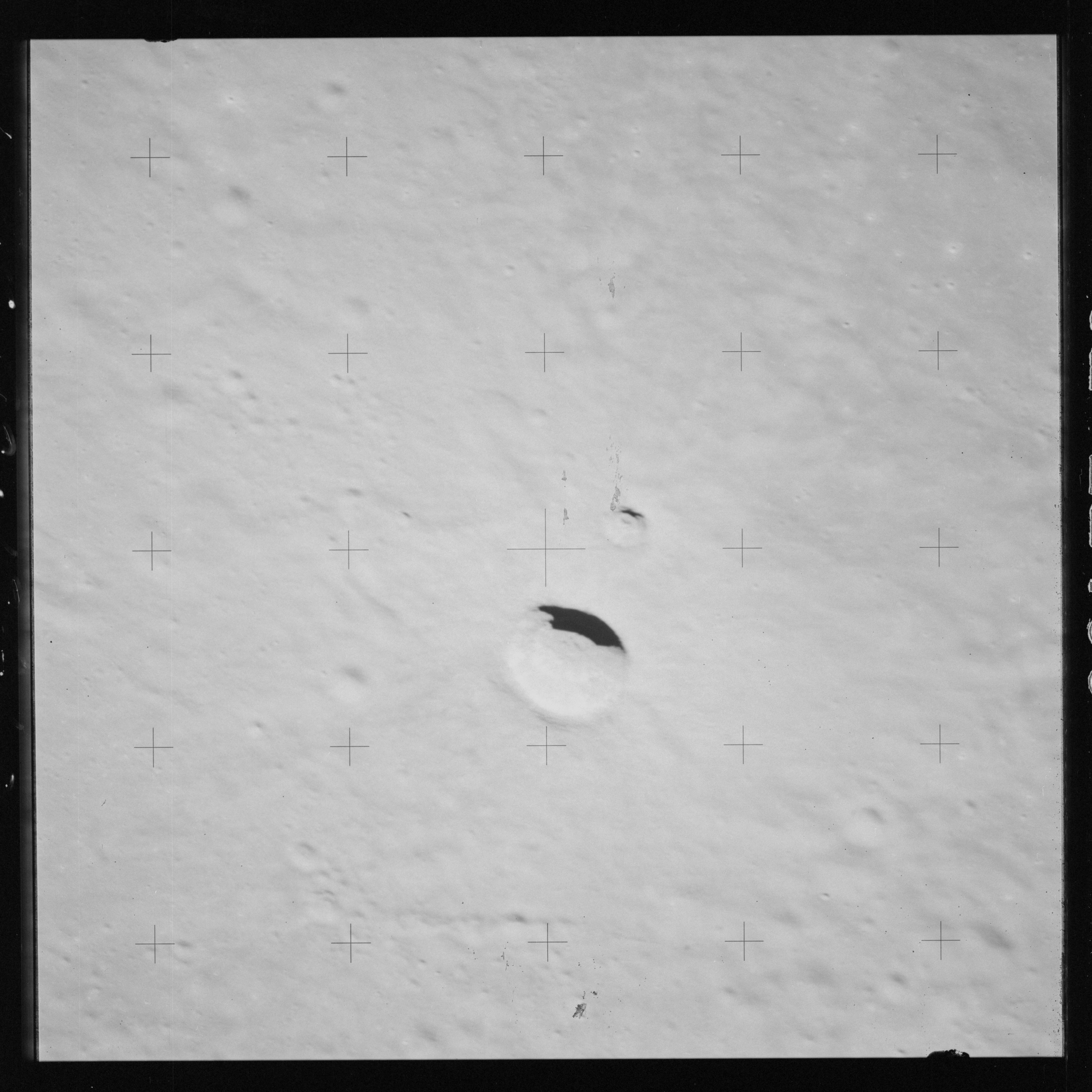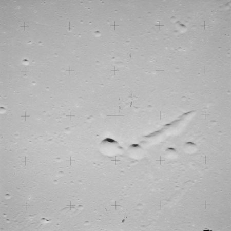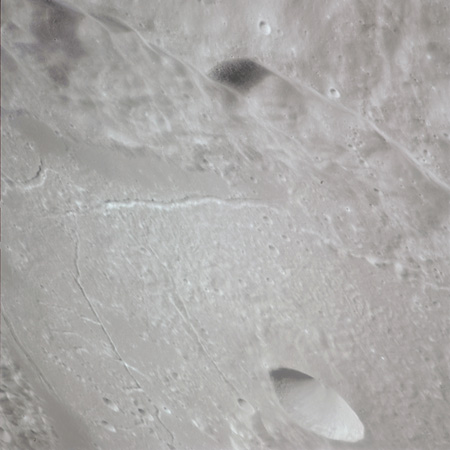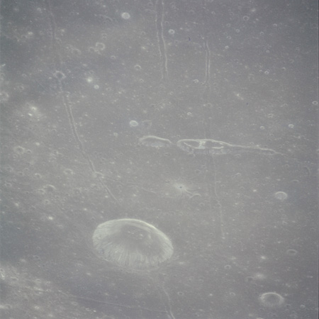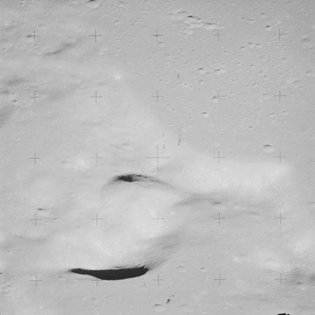 Continuing the photography on magazine O, and looking further north, AS15-97-13278 shows two irregular craters, believed to be unnamed.