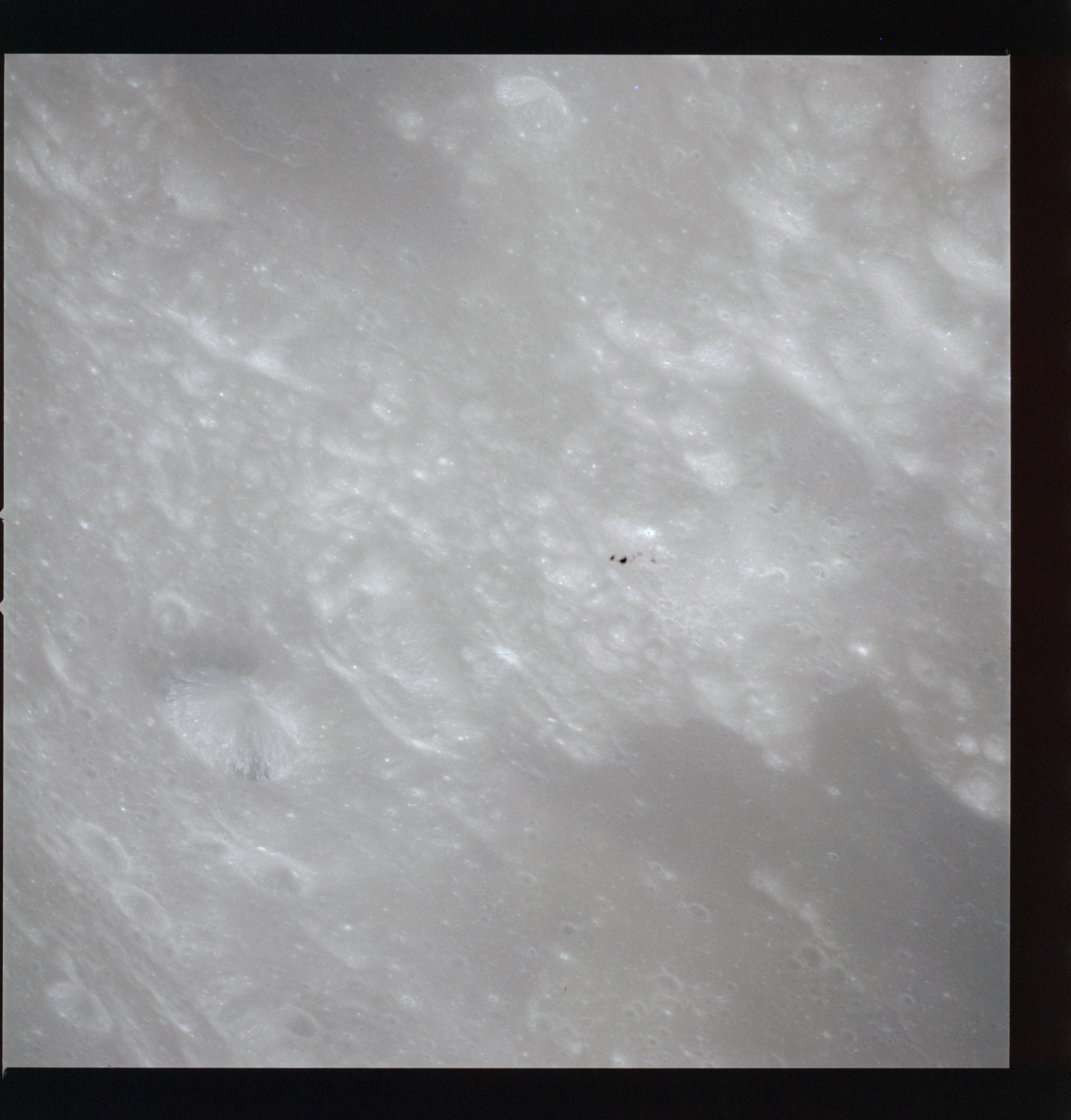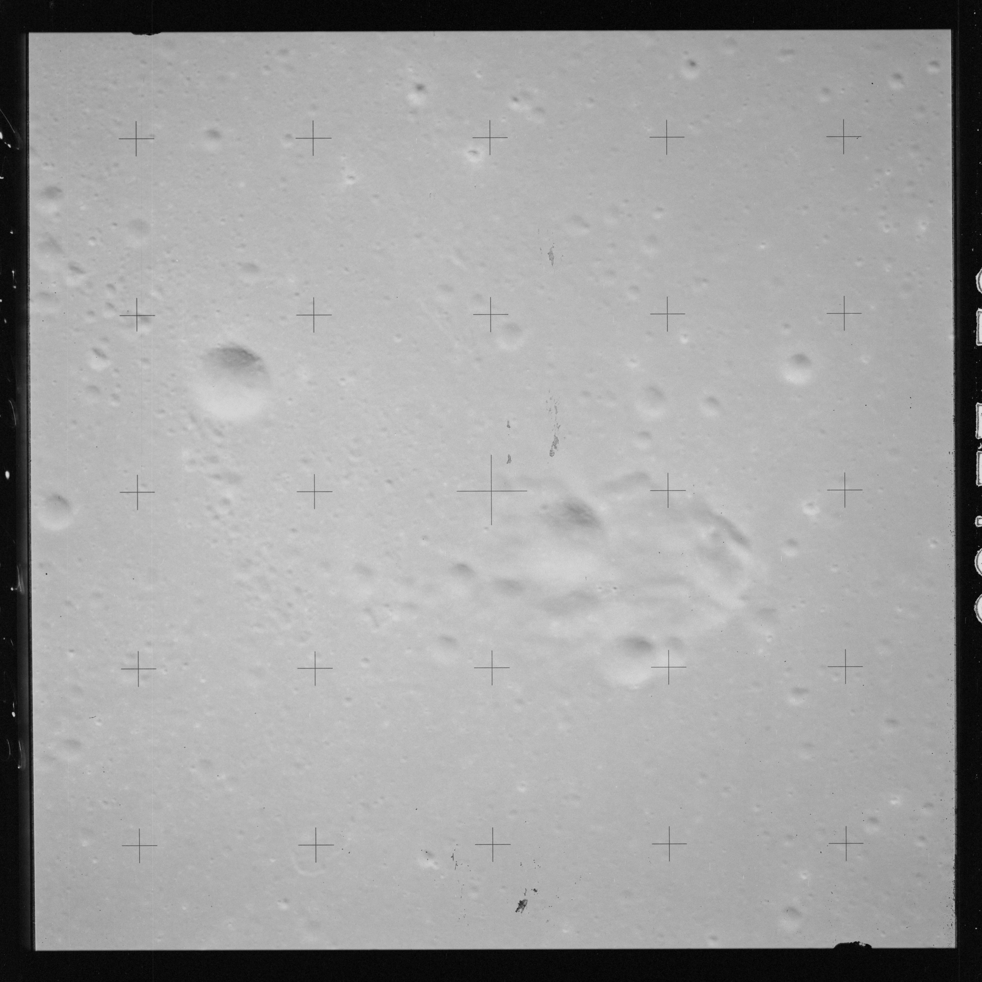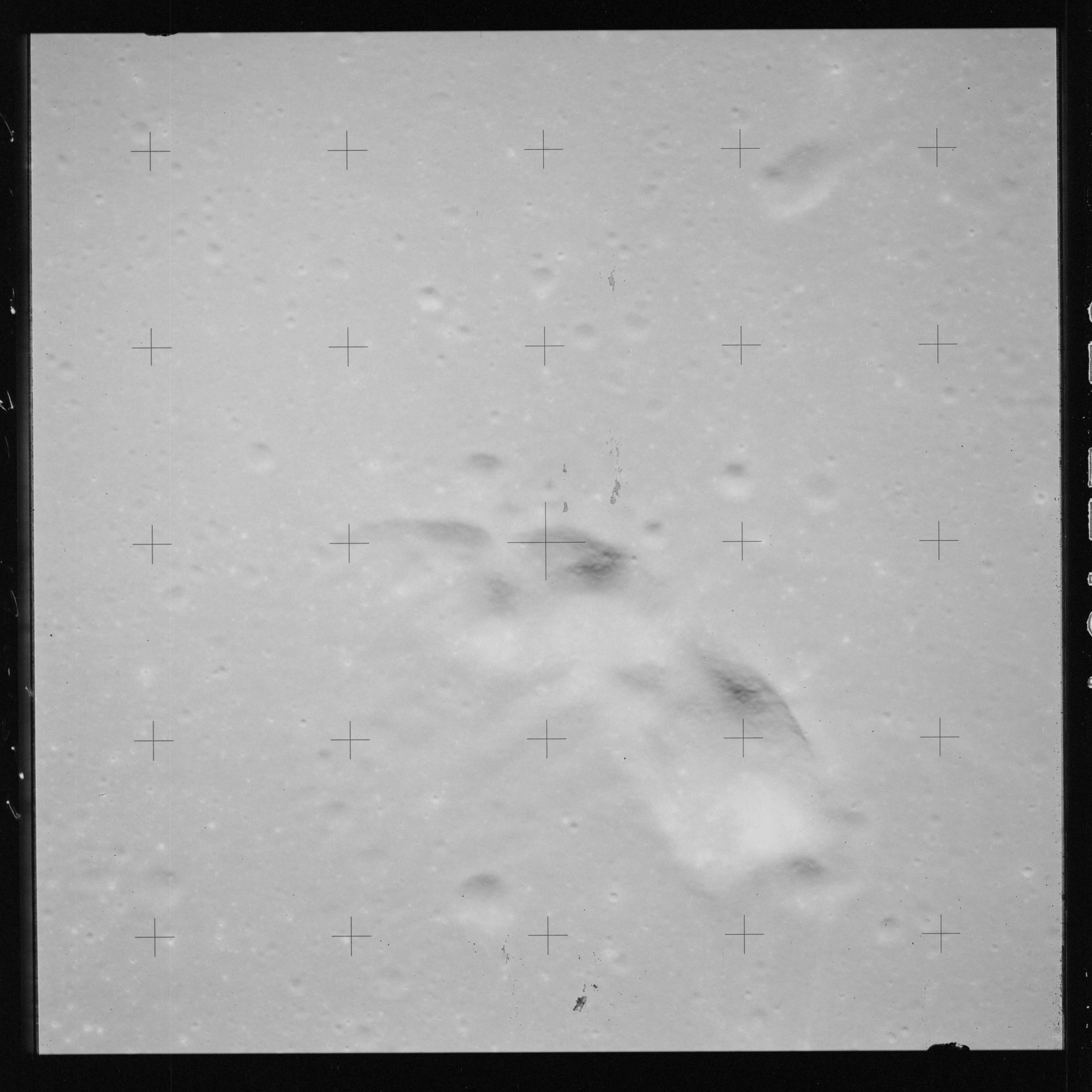 Continuing the photography on magazine O, and looking further north, AS15-97-13278 shows two irregular craters, believed to be unnamed.