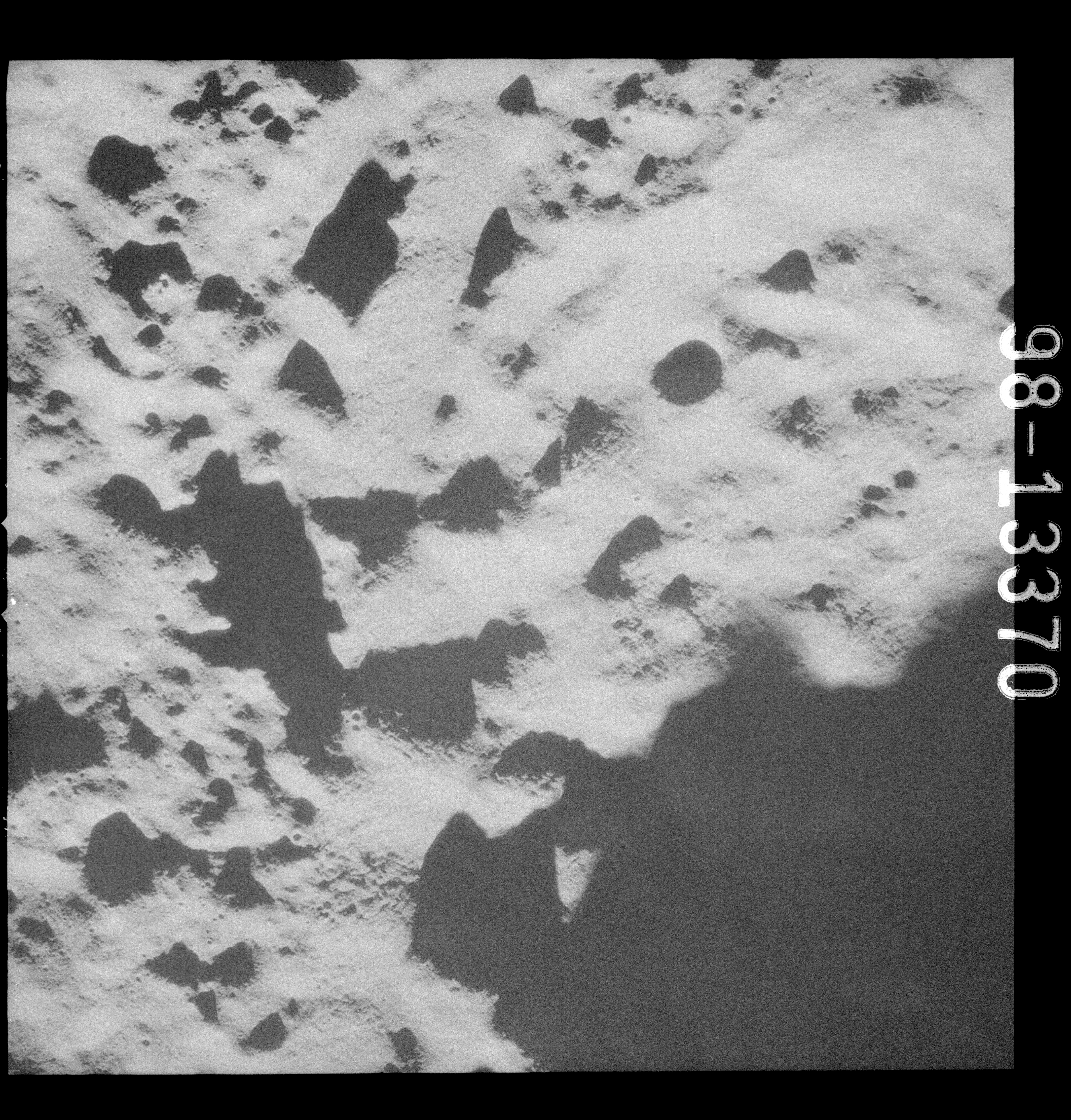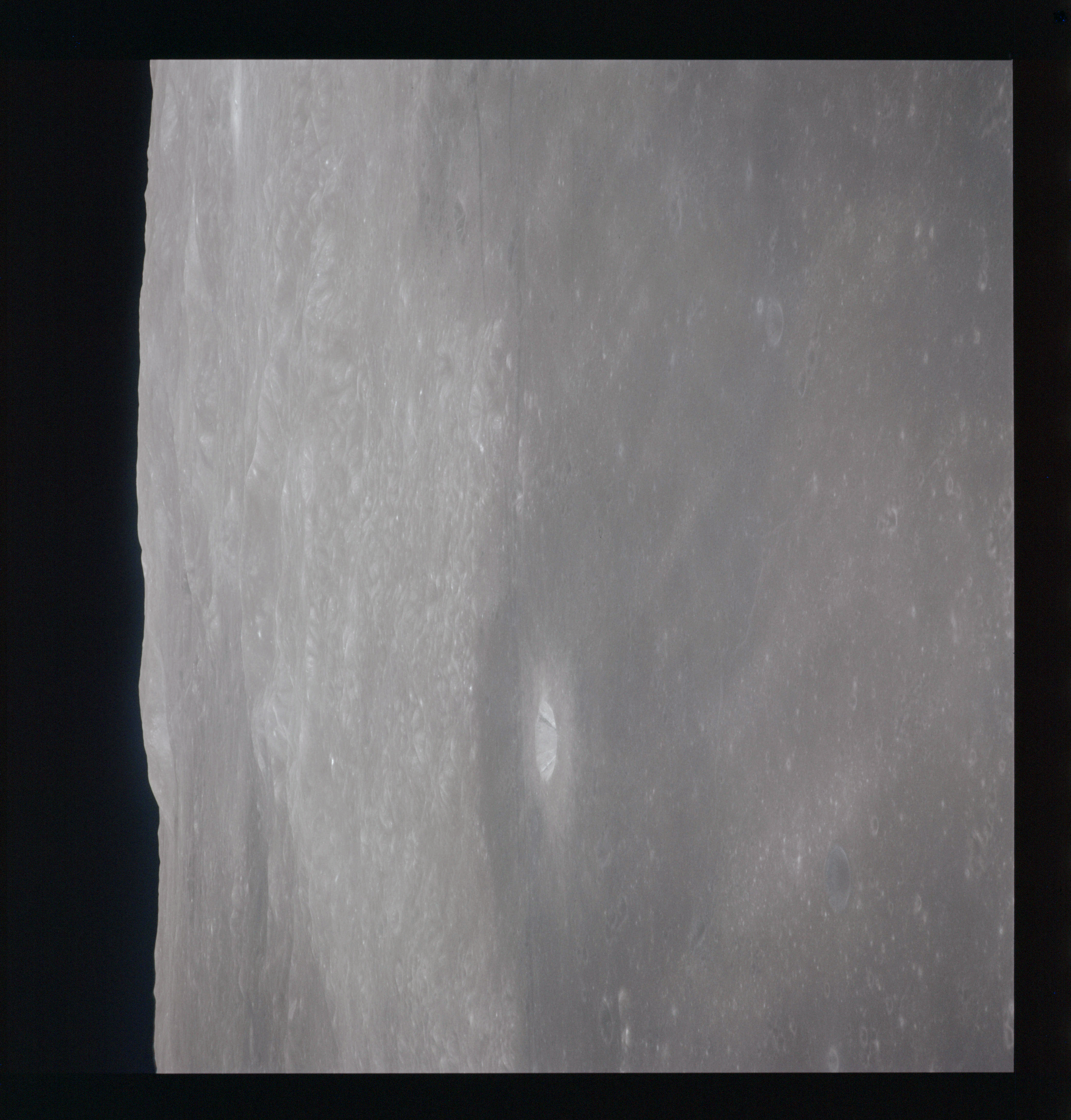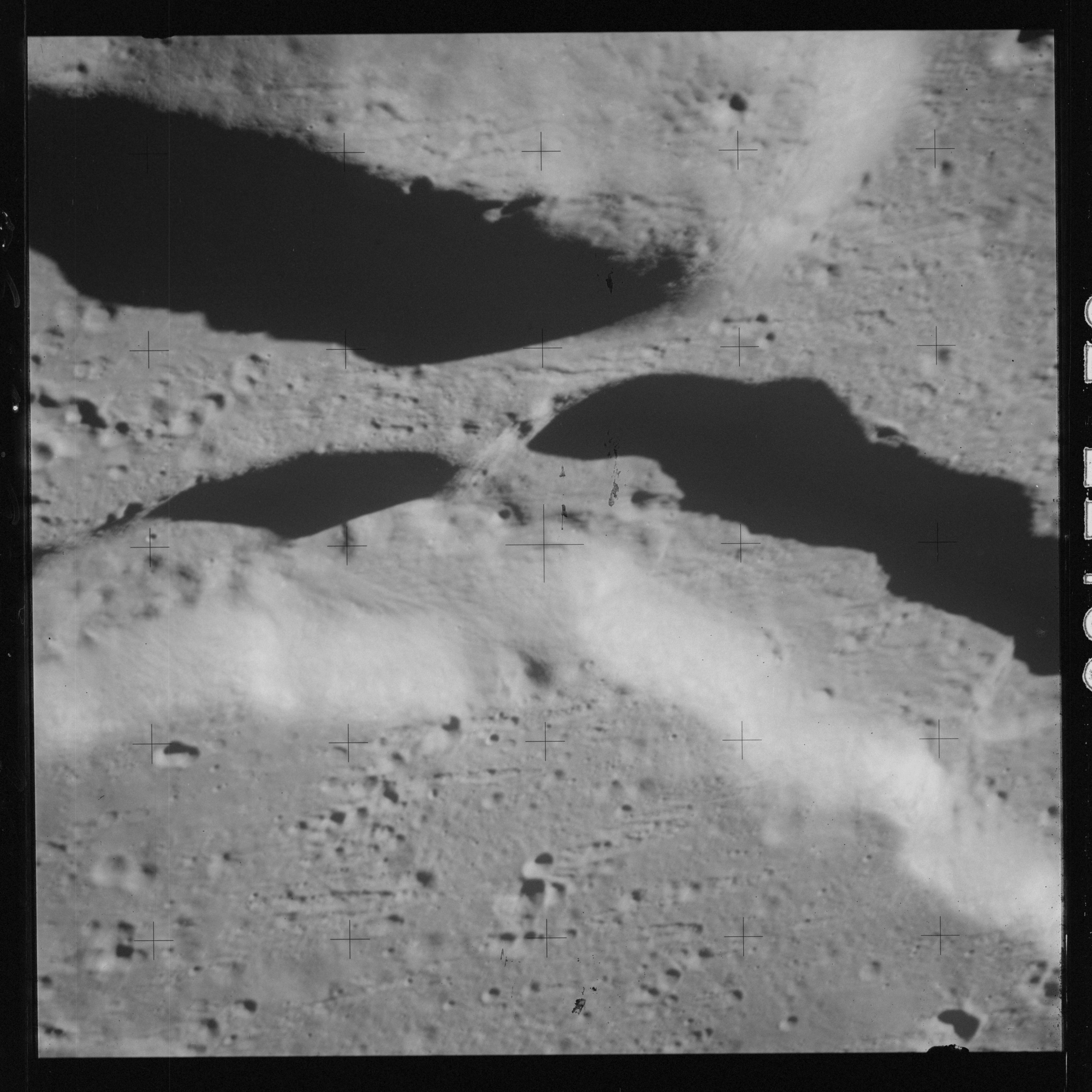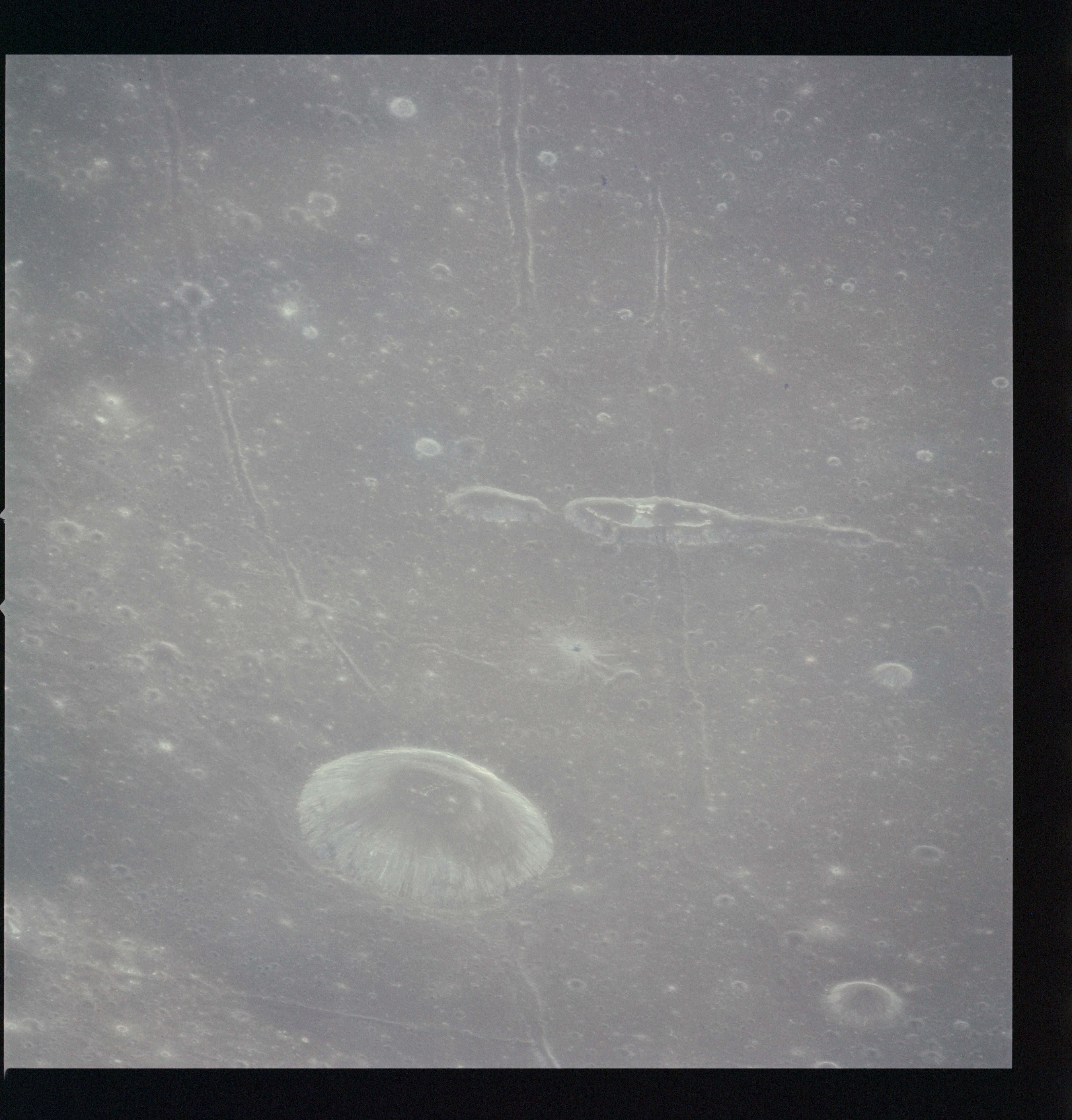 Continuing the photography on magazine O, and looking further north, AS15-97-13278 shows two irregular craters, believed to be unnamed.