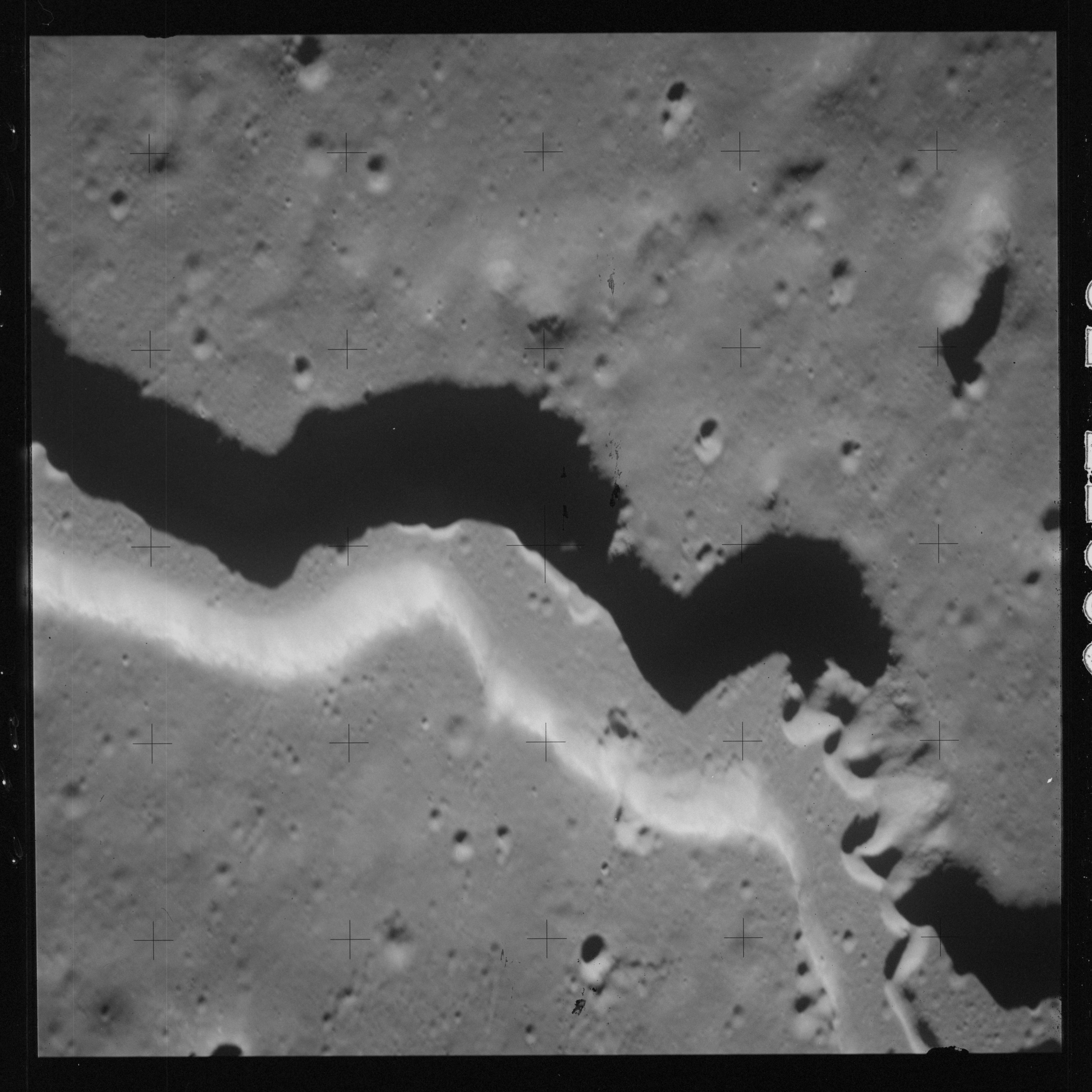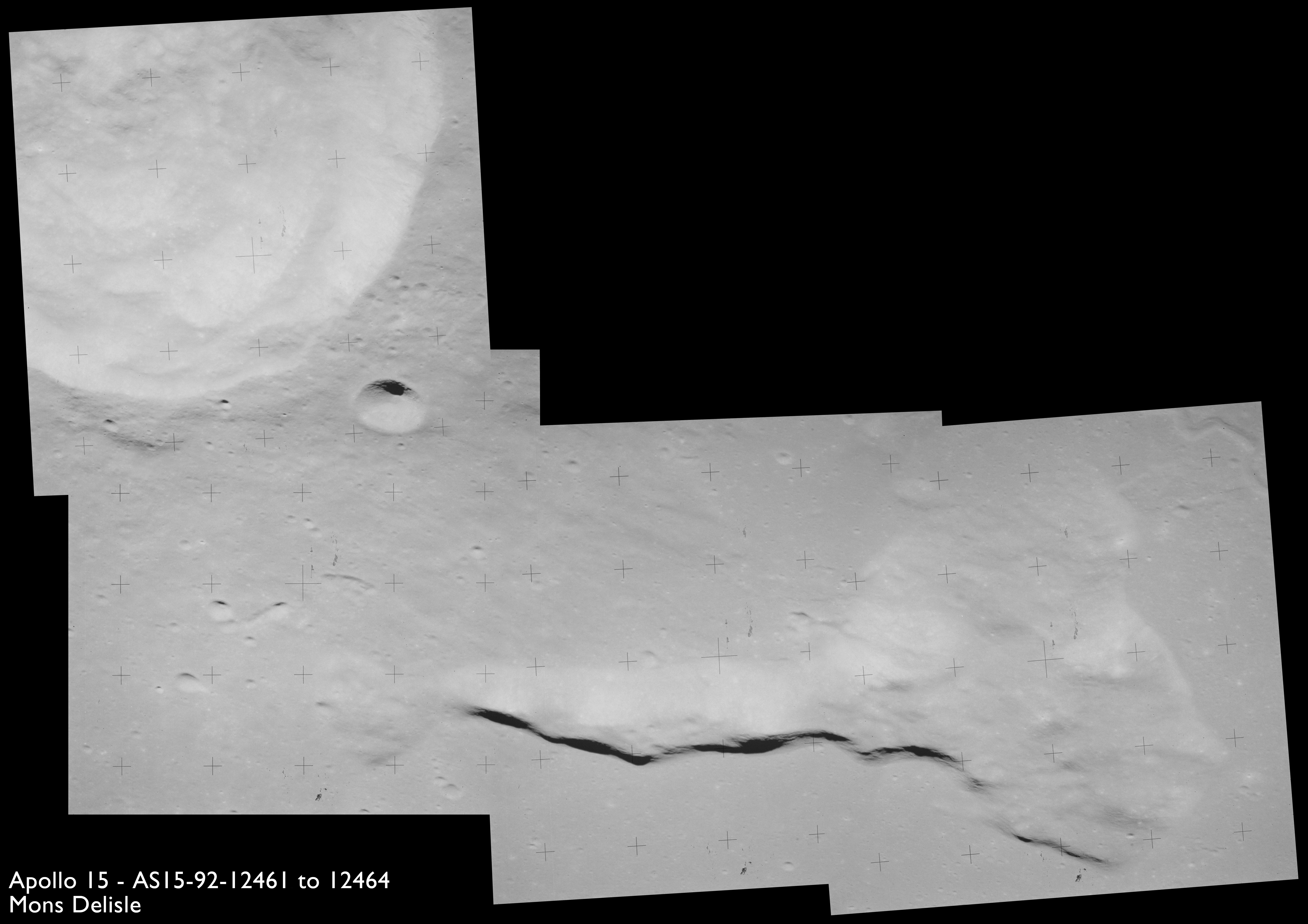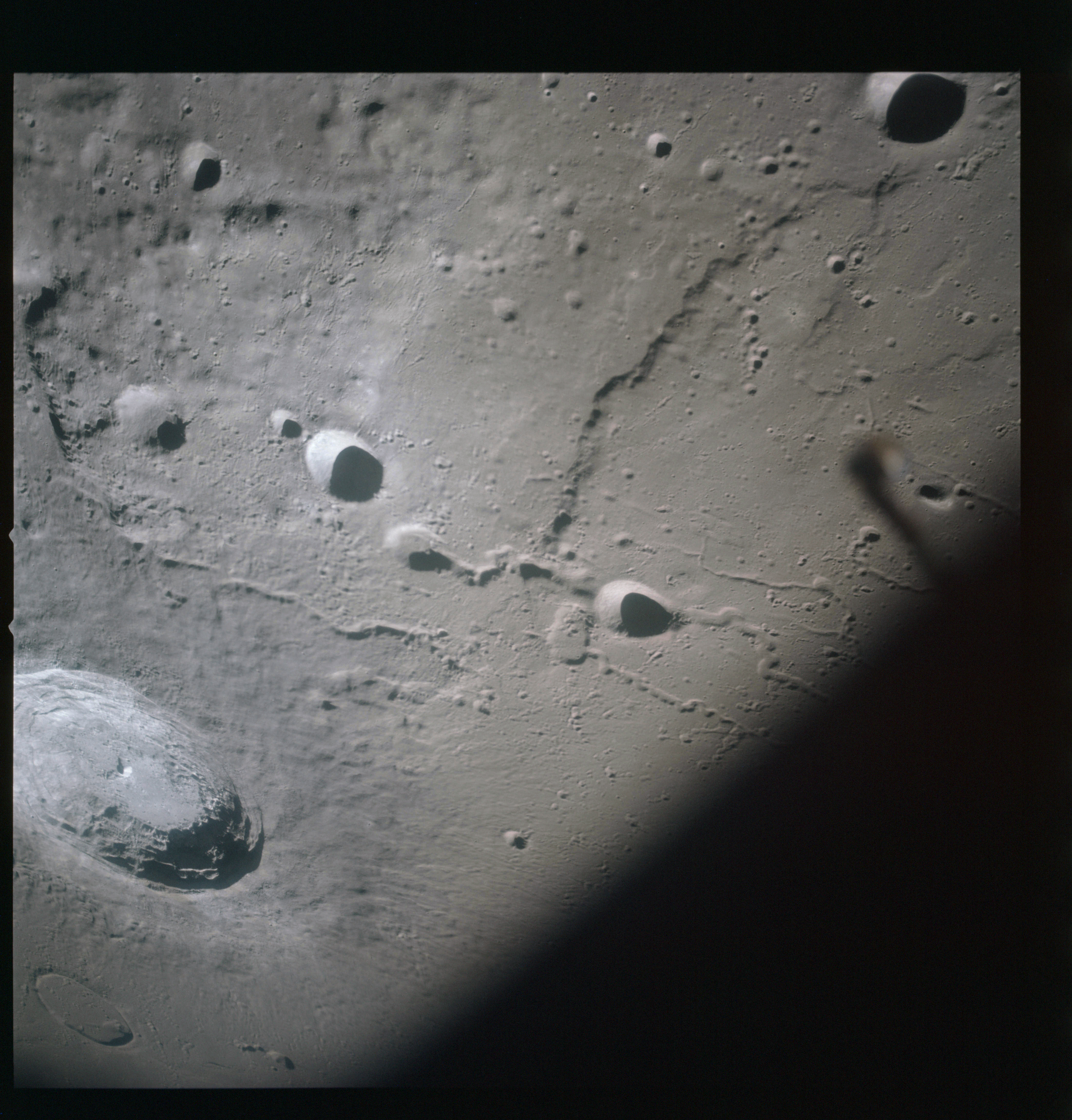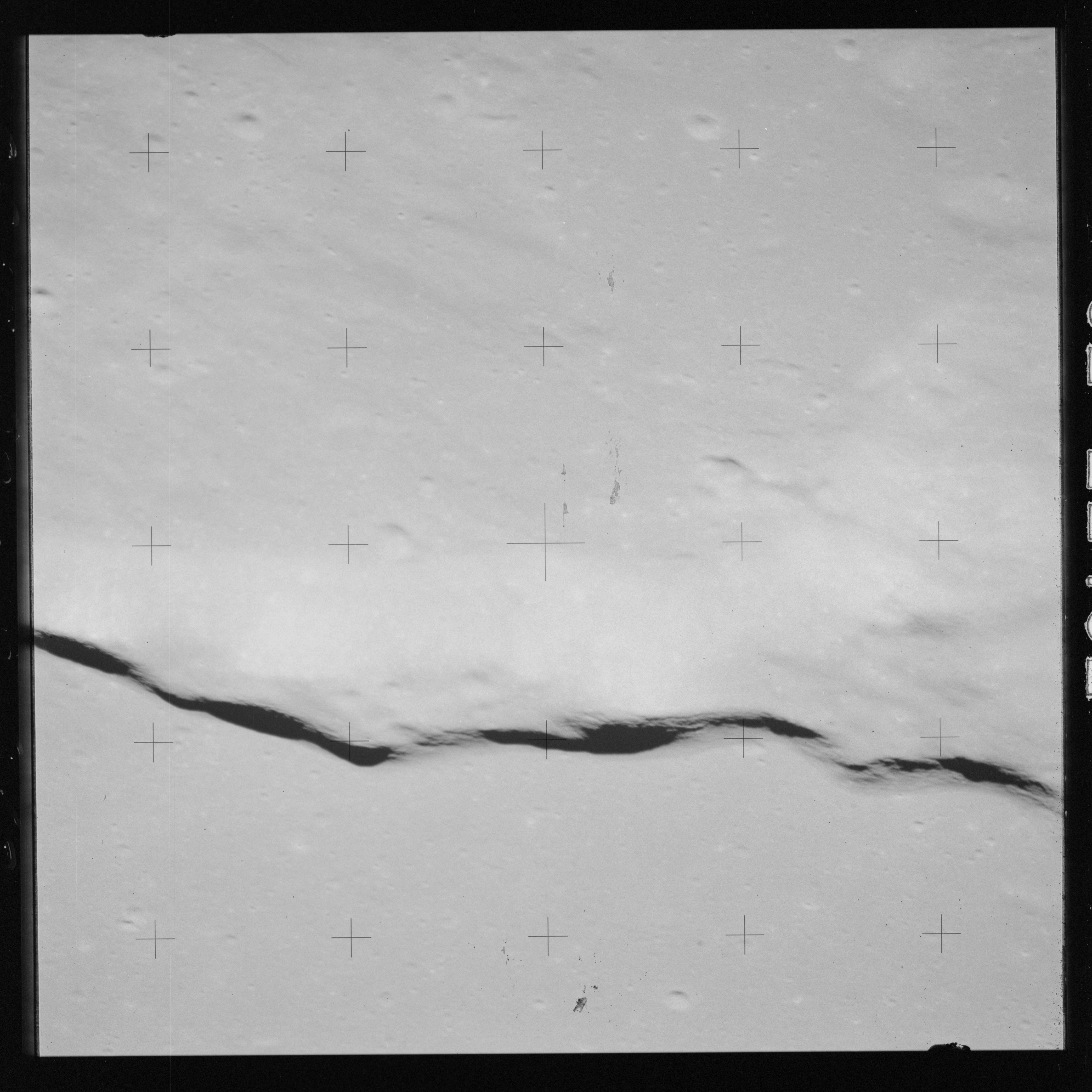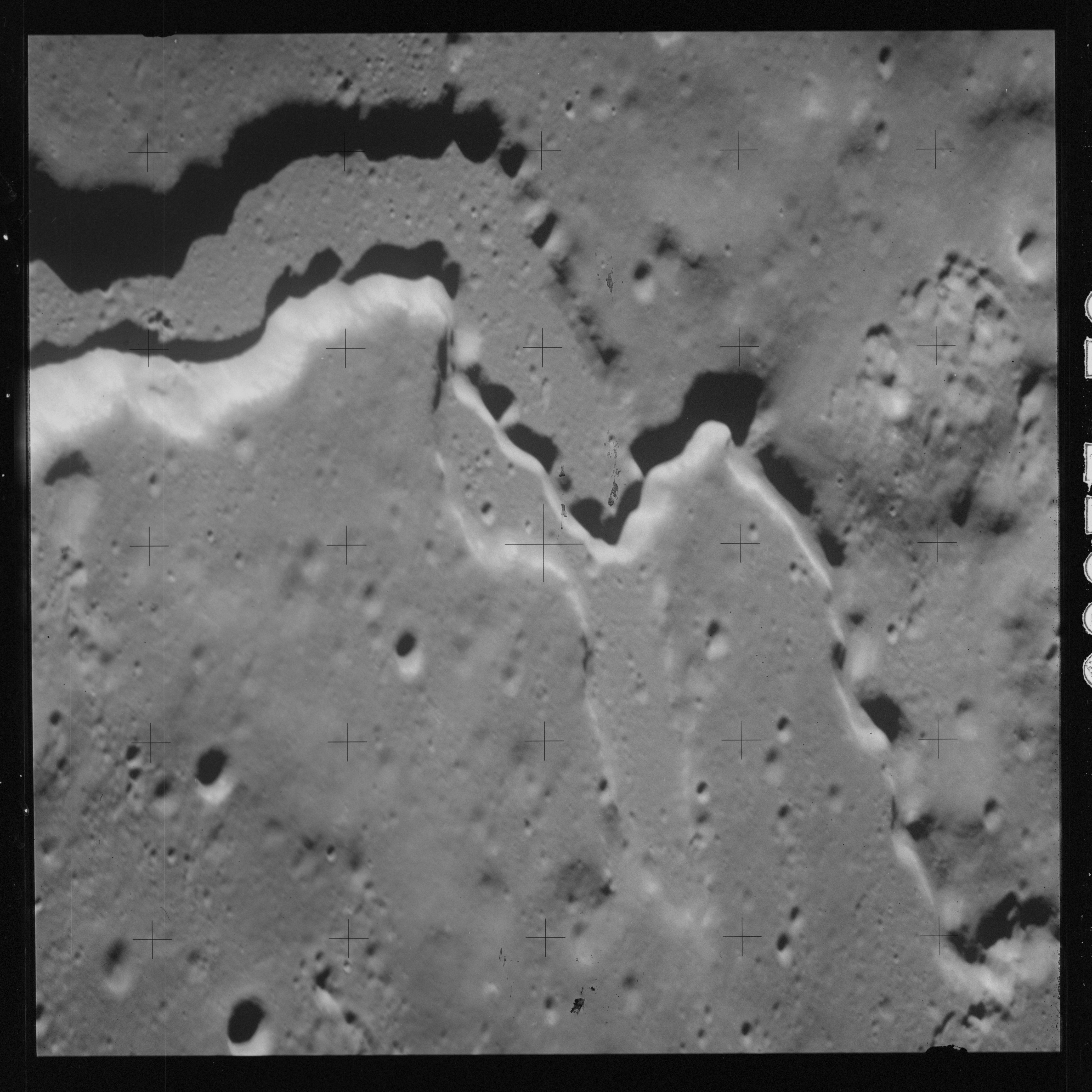 The 500-mm lens is being used with magazine OO to capture the detail of Vallis Schröteri along its length in two series of consecutive black and white images. The first series comprises AS15-92-12495 to 12502.