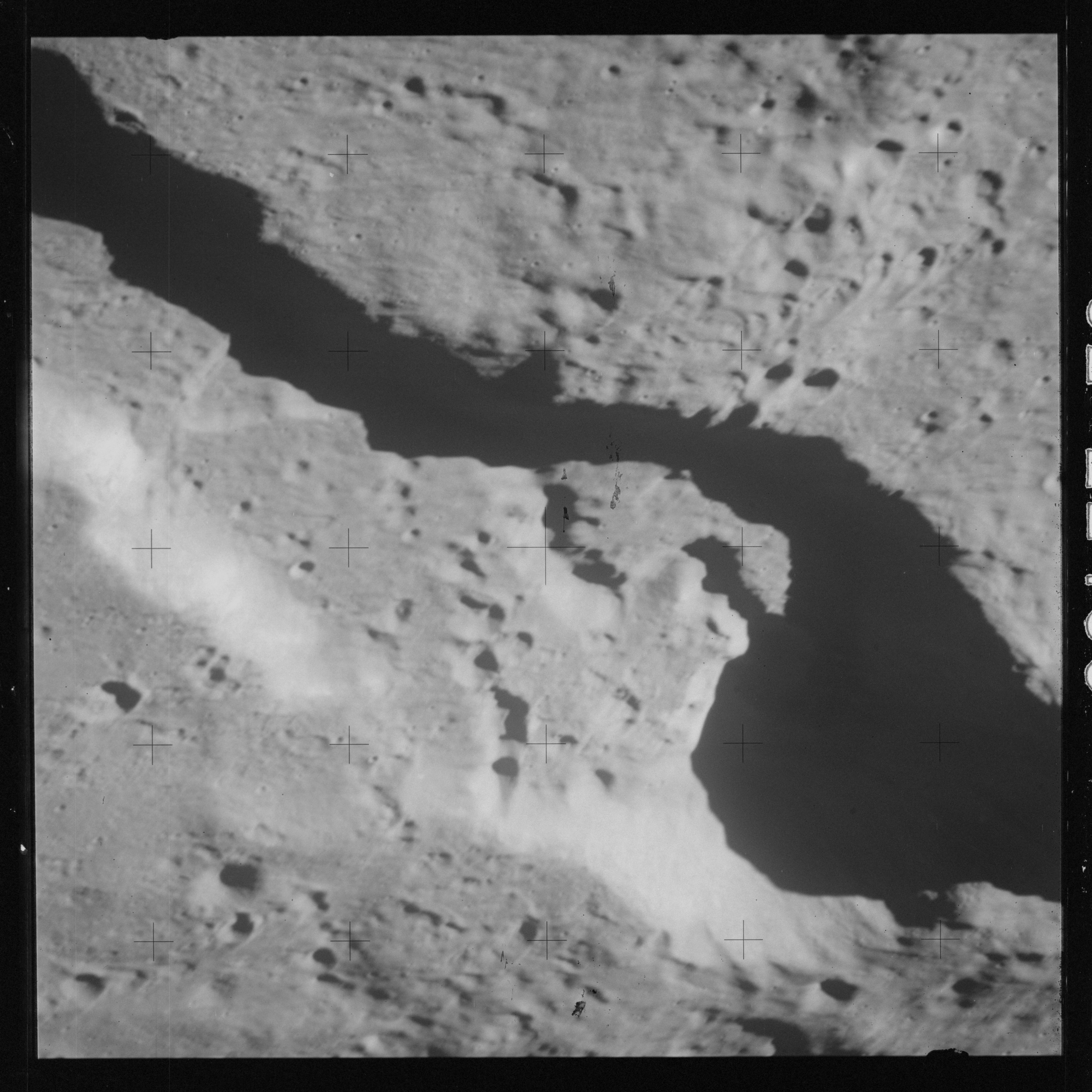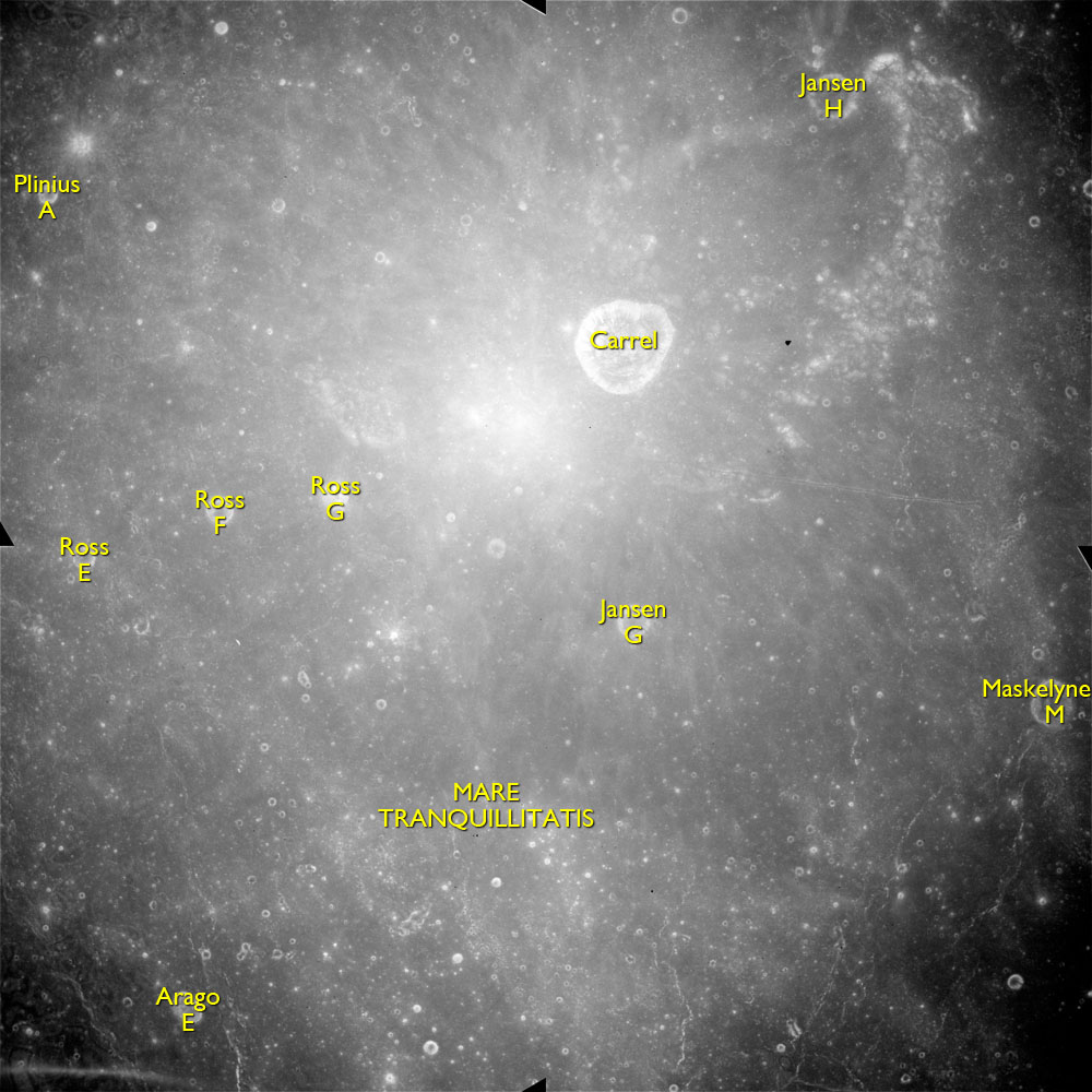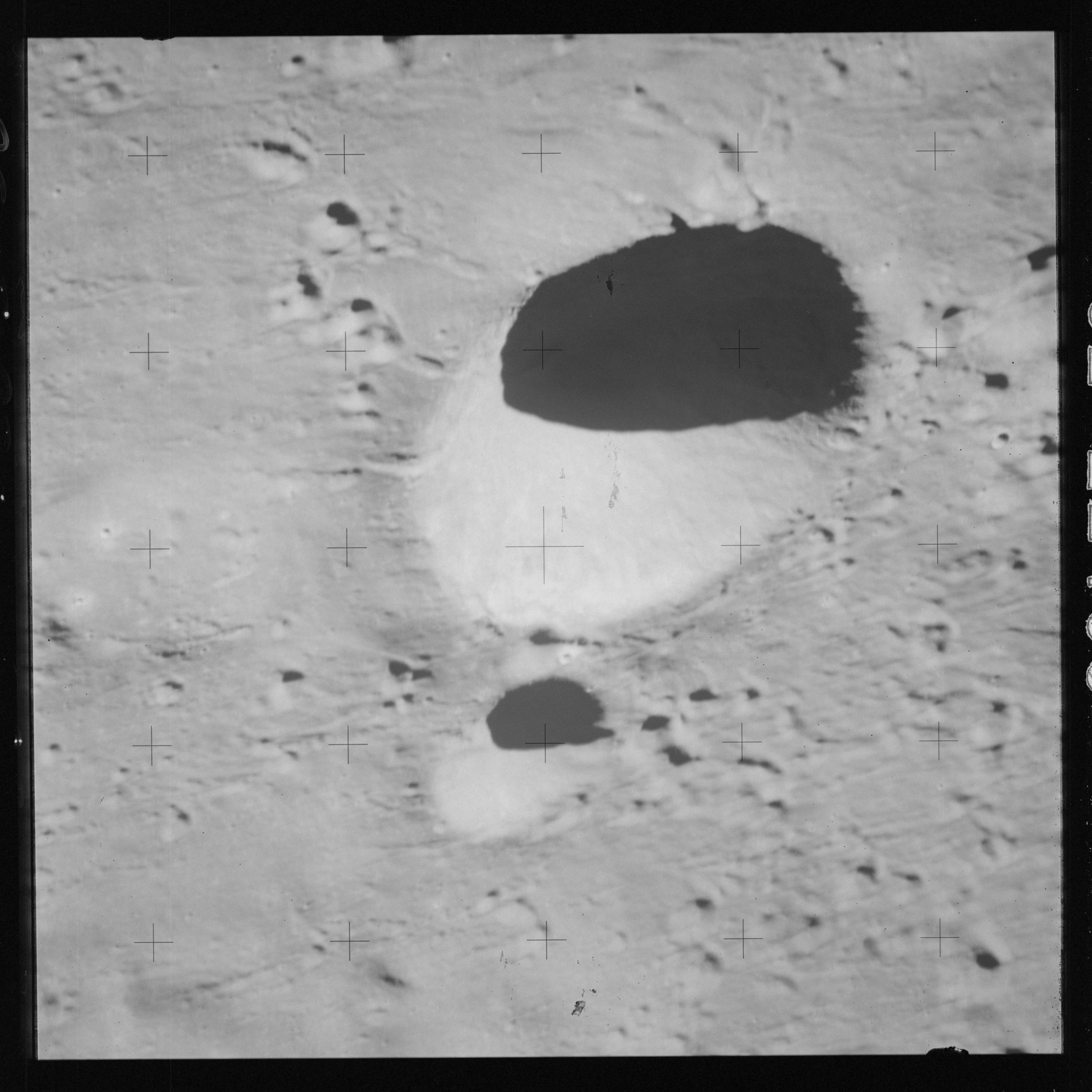 AS15-M-2404 - Metric Camera image of Mare Fecunditatis and craters Messier and Messier A. Image taken at about 214:42. (250 megapixel version), (labelled version) - Image by NASA/ASU.