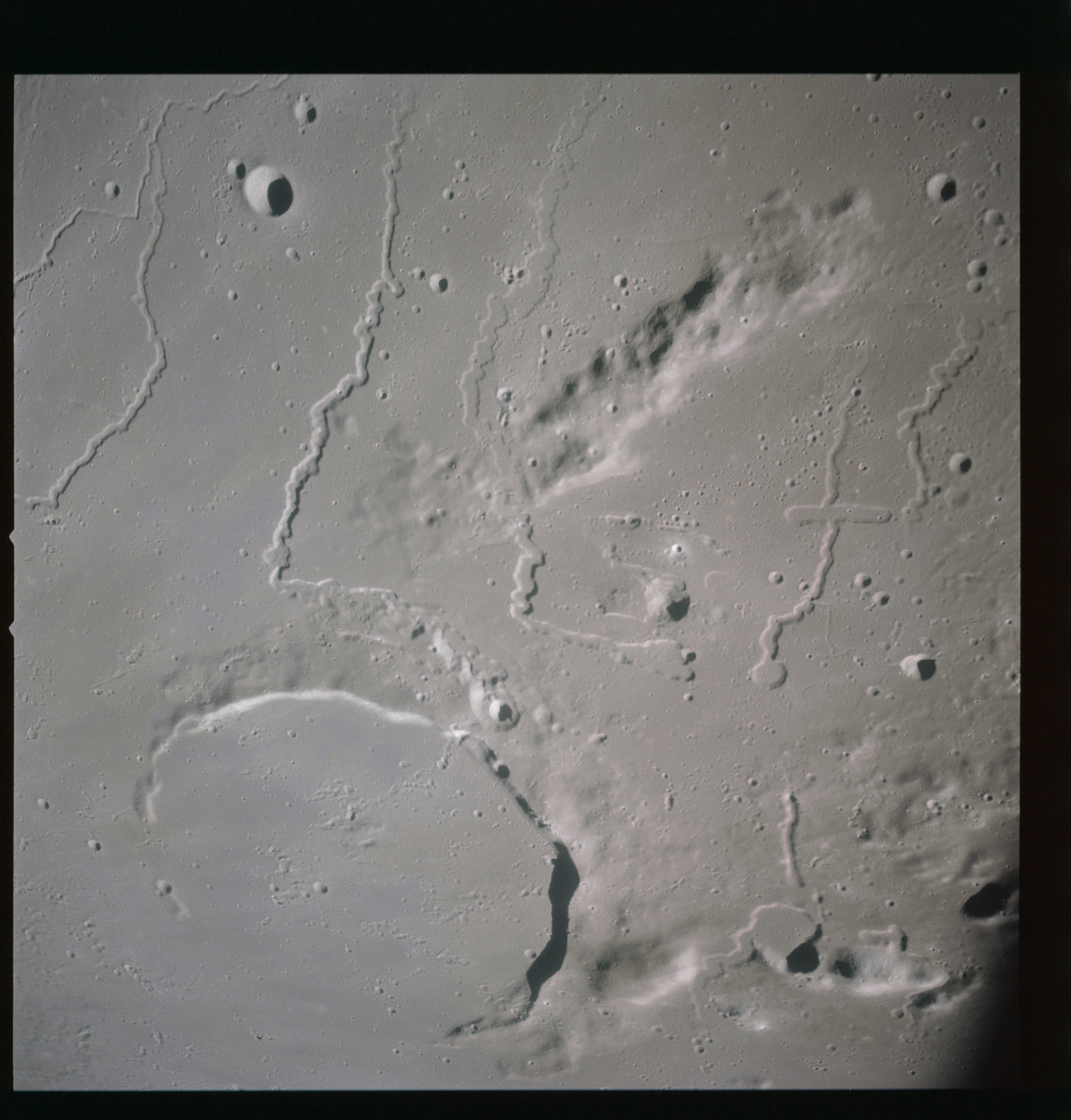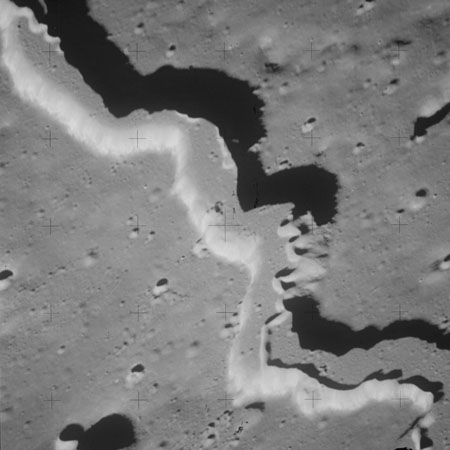 The sequence of images AS15-93-12623 to 12631 follow Vallis Schröteri from its source at the Cobra Head to where it loses its identity in the mare surface of Oceanus Procellarum.