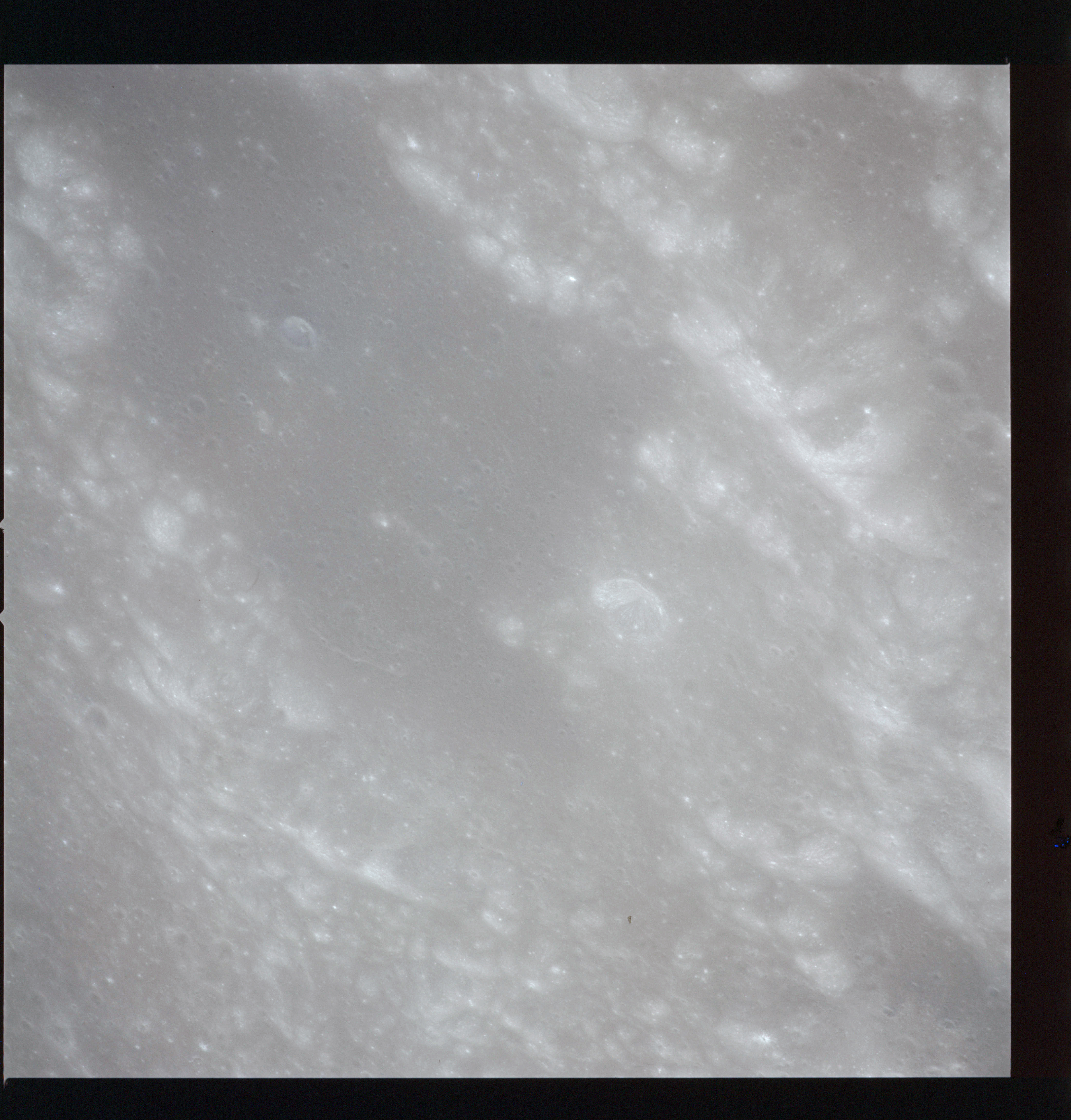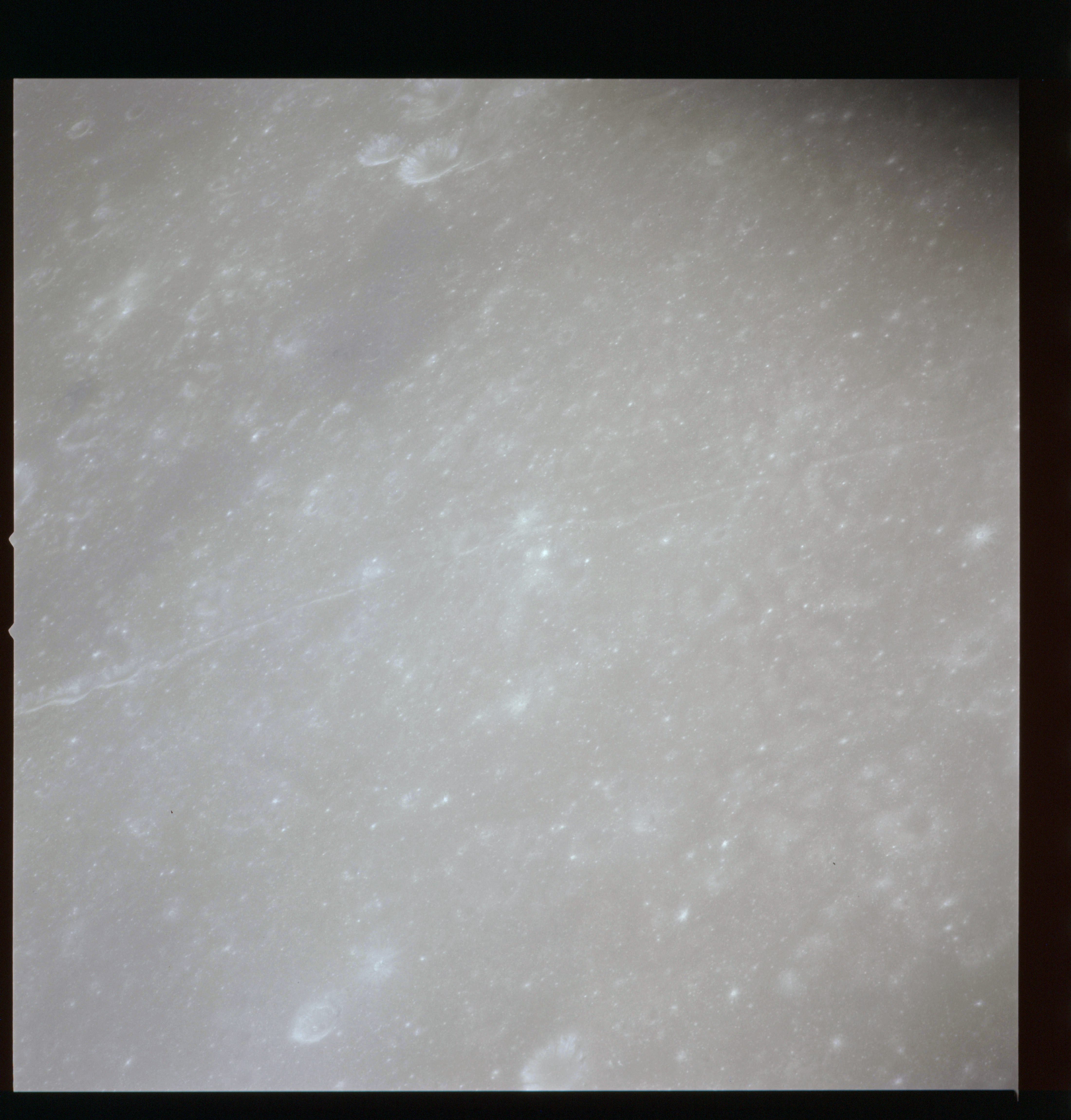 Looking a little to the left, AS15-97-13281 is an oblique shot of Messier asnd Messier A and the unique ray system surrounding the pair.