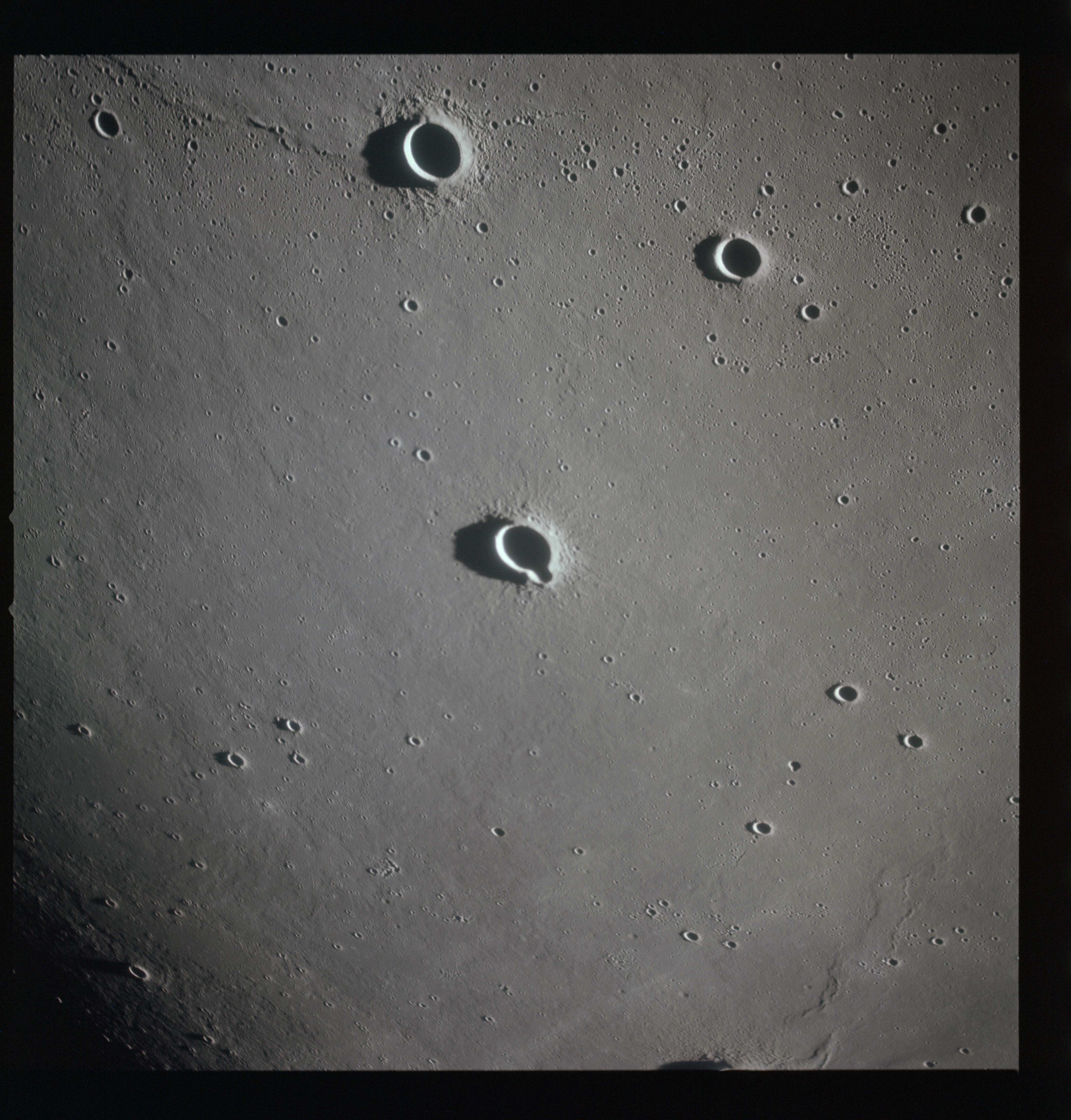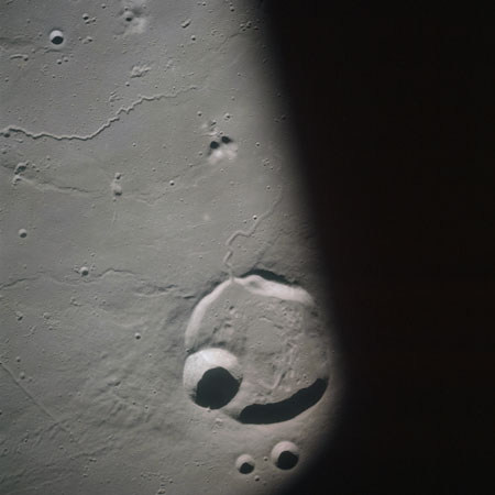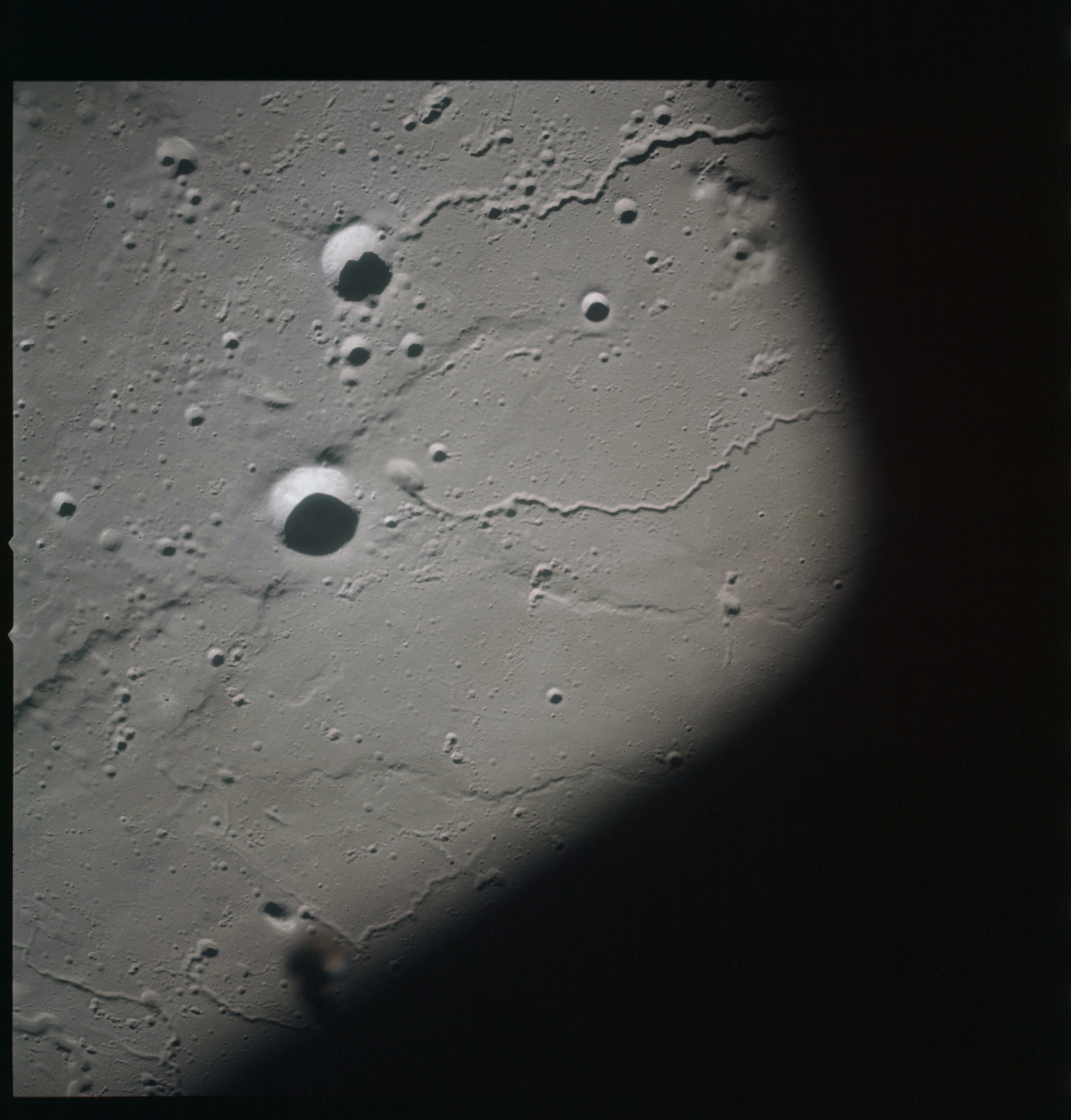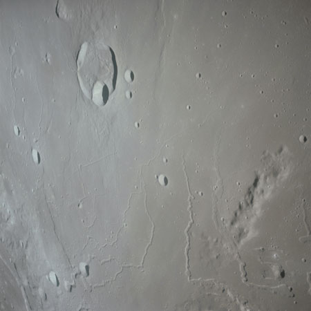 Finally, AS15-93-12638 shows a triplet of small craters right next to the terminator, the largest two of which are Schiaparelli C (in the centre of the image) and E.