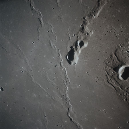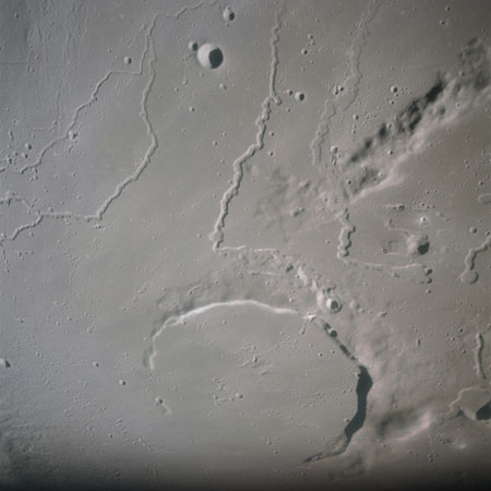 AS15-92-12494 - Damaged rilles east-southeast of crater Väisälä. Image centre at 25.63°N, 47.28°W - Image by NASA/Johnson Space Center.