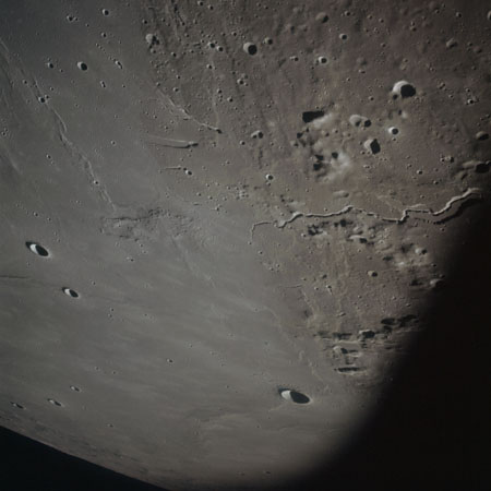 AS15-98-13370 - Terminator area. North rim of Scaliger. Image centre is at 25.93°S, 109.45°E - Image by NASA/Johnson Space Center via National Archives.