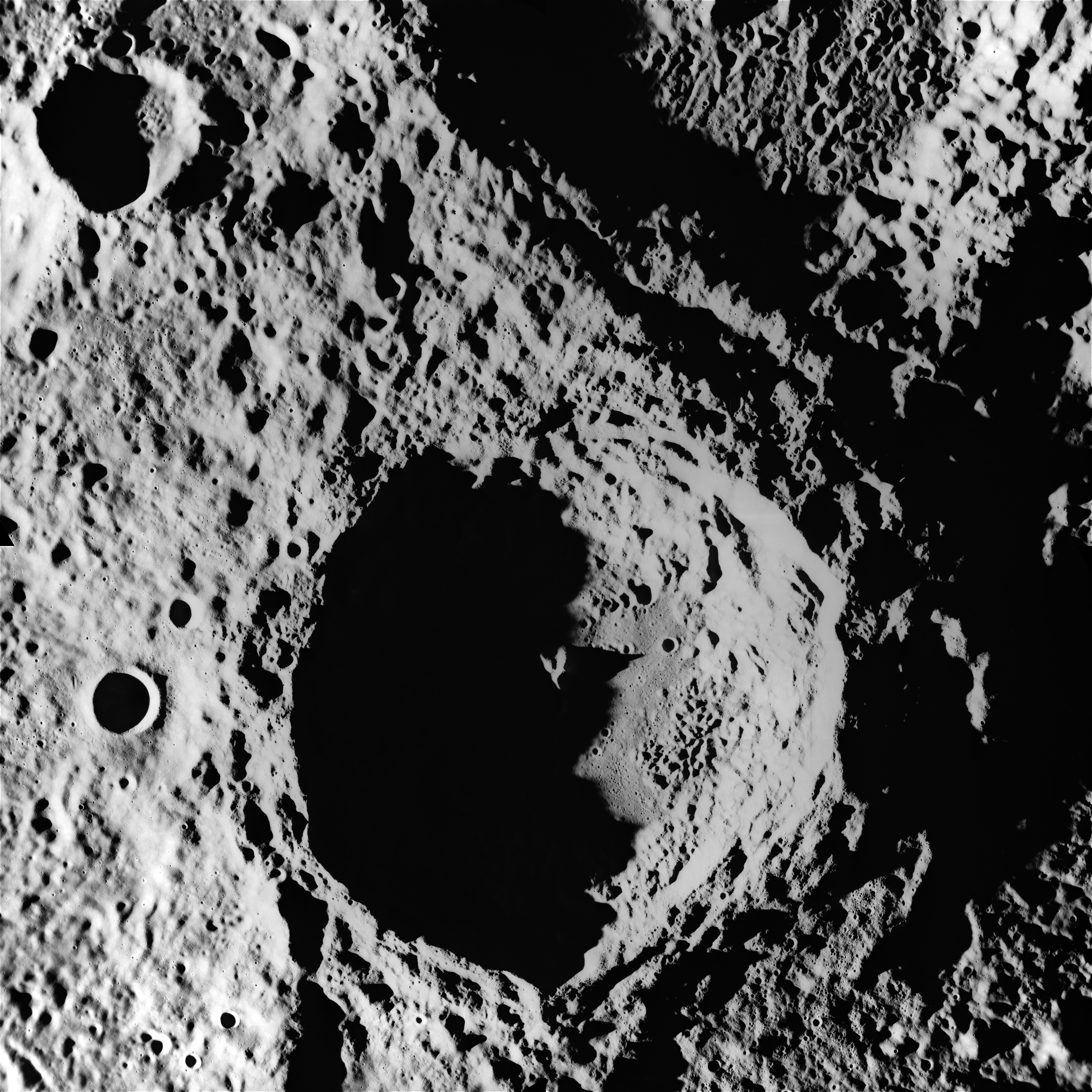 Frames AS15-97-13275 and 13276 look within the 200-km Humboldt which was named for Wilhelm von Humboldt, 1767-1835, a German statesman.