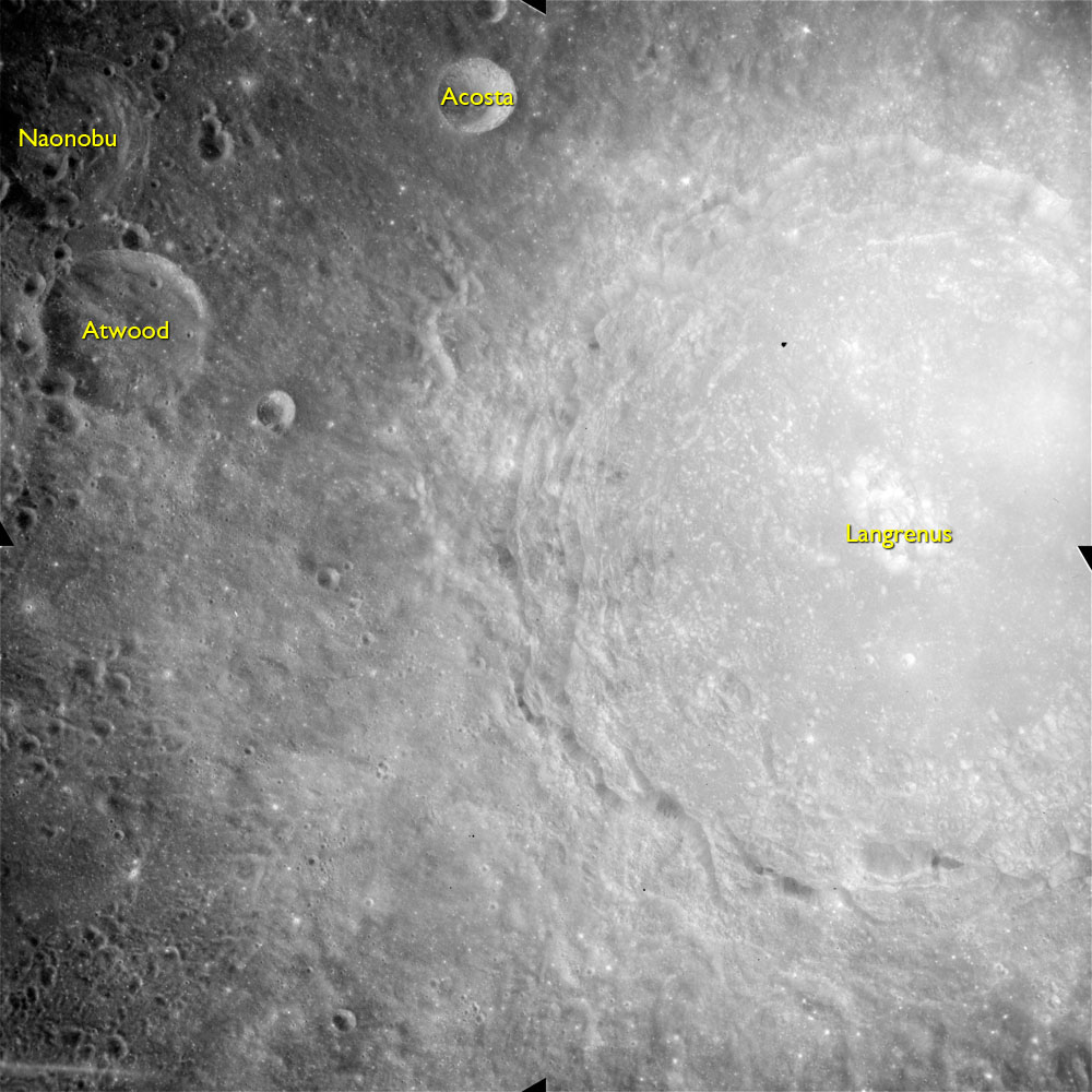 AS15-M-2394 - Metric Camera image of craters Langrenus, Atwood, Acosta and Naonobu. Image taken at about 214:38. (250 megapixel version), (labelled version) - Image by NASA/ASU.