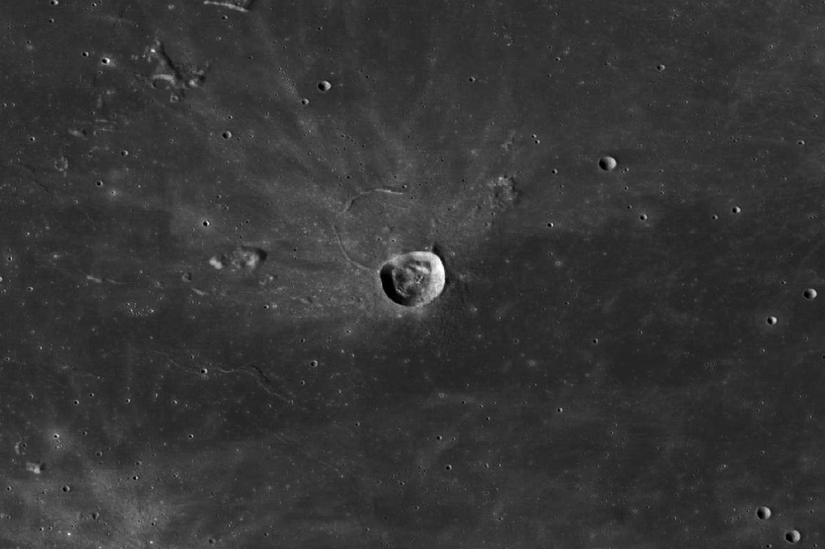 Crater Lichtenberg and its obscured southern ray system - Image by LROC/ASU.