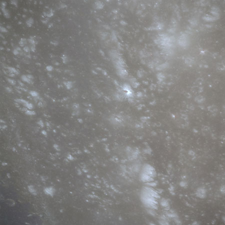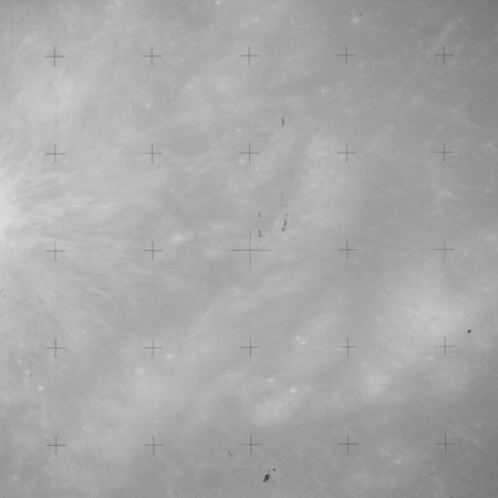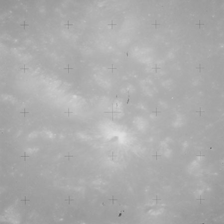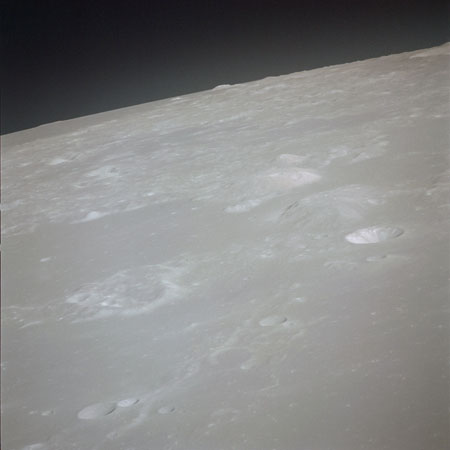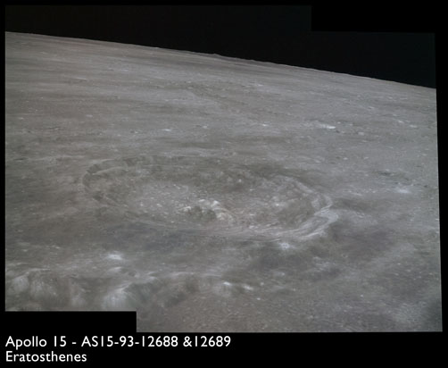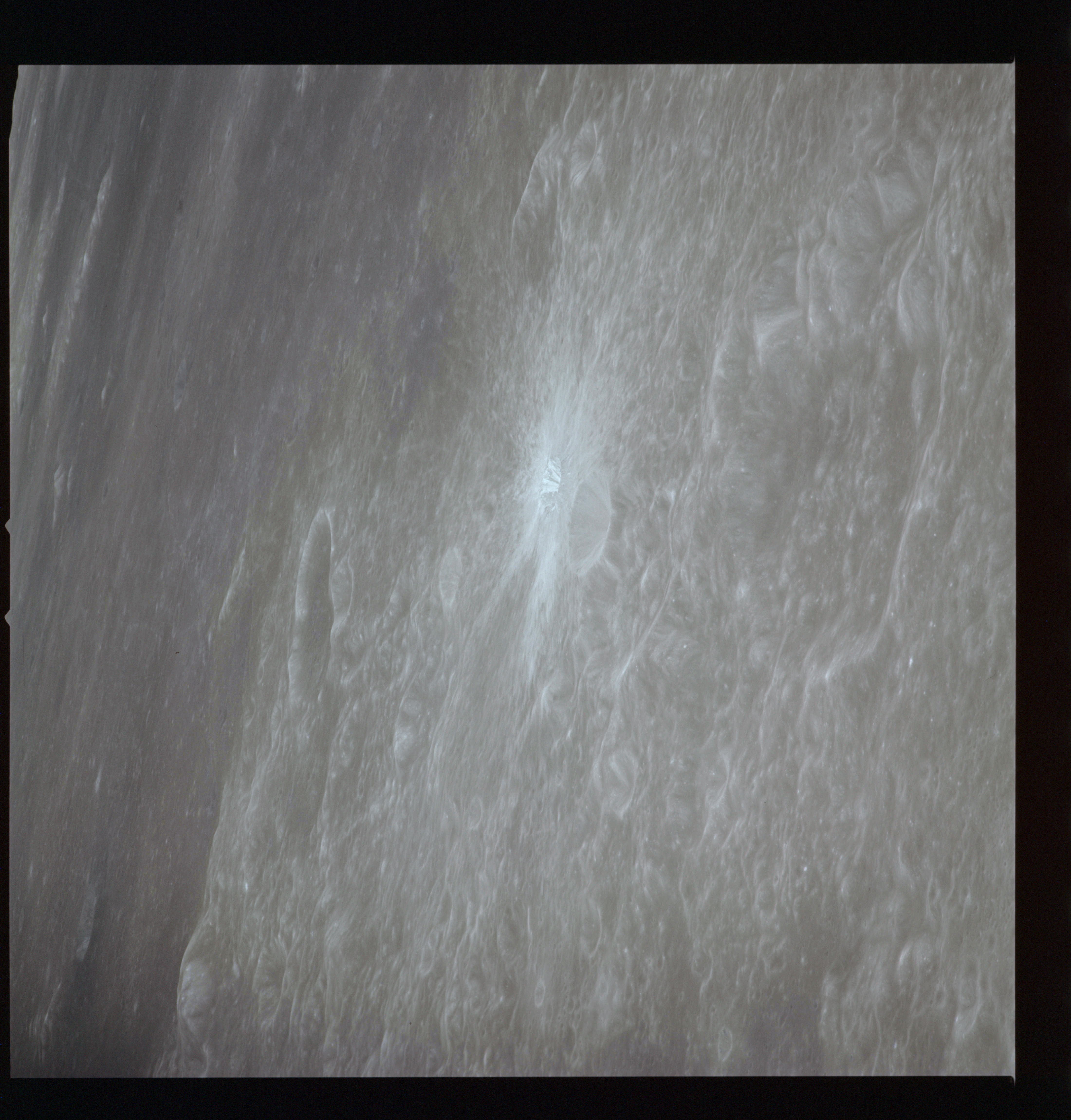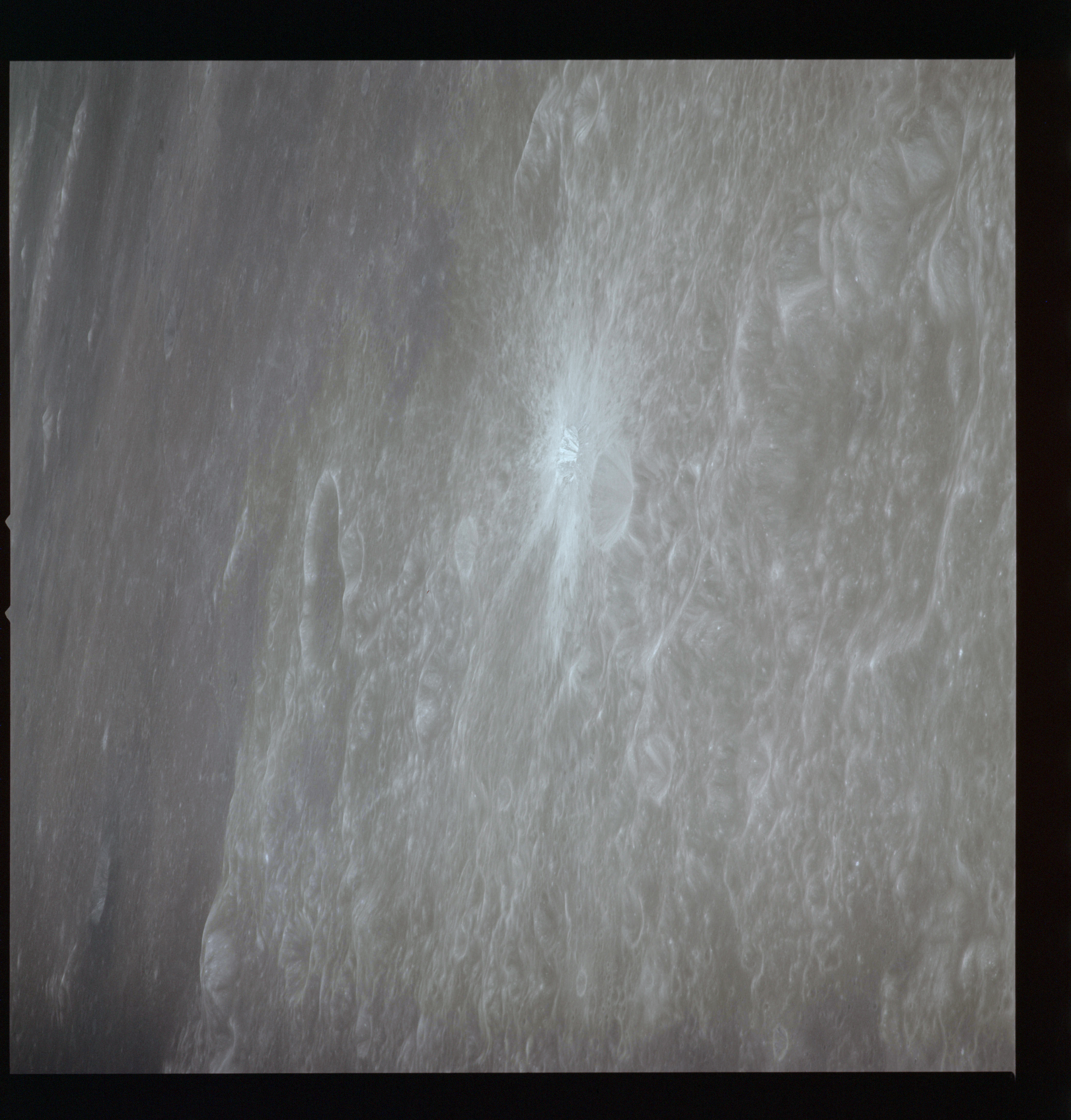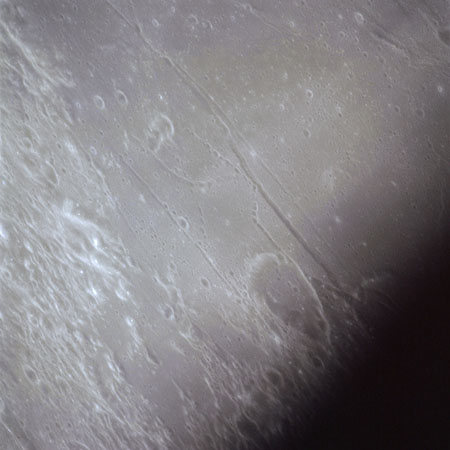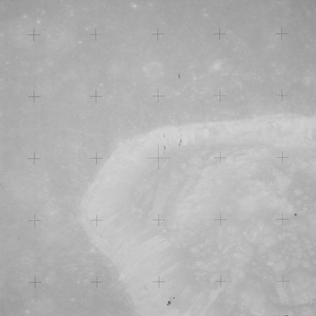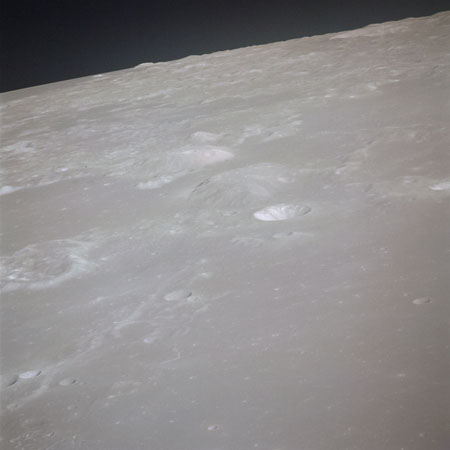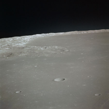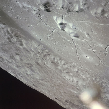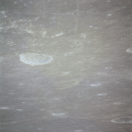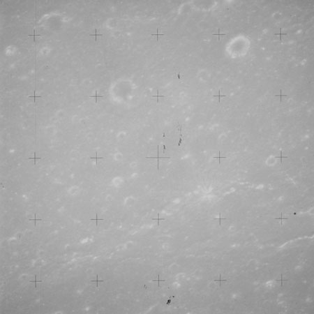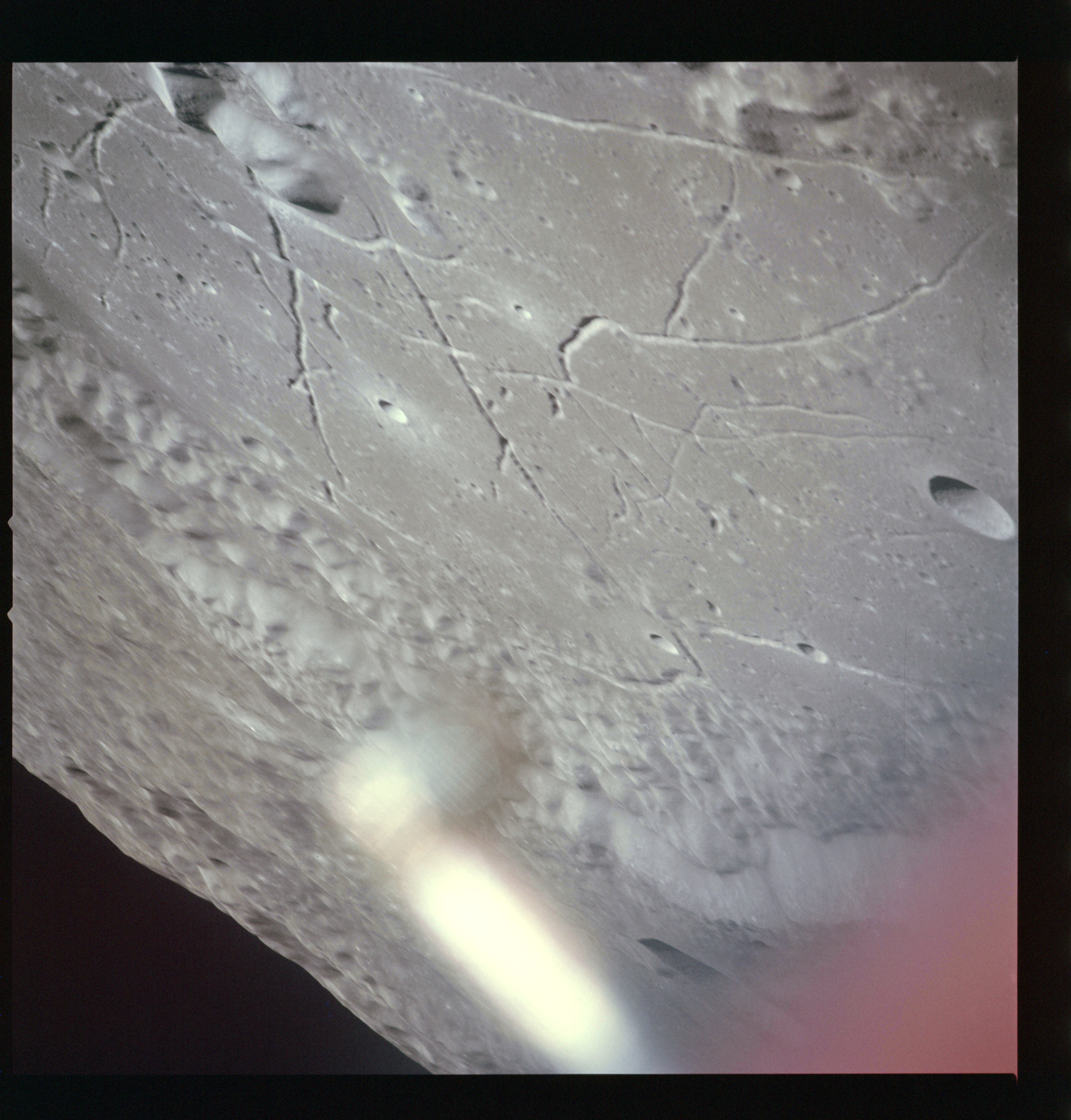 The 16-kilometre crater after which so many of these features are named is nicely framed in AS15-93-12719. Franz von Paula Gruithuisen, 1774-1852, was a German astronomer who pioneered lunar study in two opposing ways. He was the first to postulate an impact theory to explain the lunar craters, an idea now very widely accepted. However, through his active imagination, he announced the discovery of buildings and cities on the Moon, writing a book on the subject. Centuries later, there are still people who claim to detect non-human intelligent artifacts through close study of the imagery from manned and unmanned photography of the lunar surface, a concept that is very widely rejected. To the northwest of Gruithuisen is a large, dense cluster of small craters. These are likely to be secondary craters formed by the impact of a loose clump of debris, themselves ejected from a large, distant impact.
