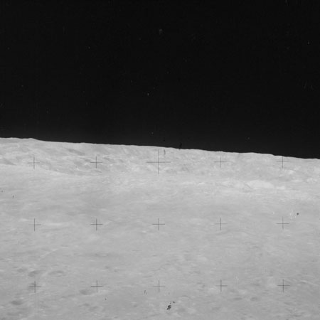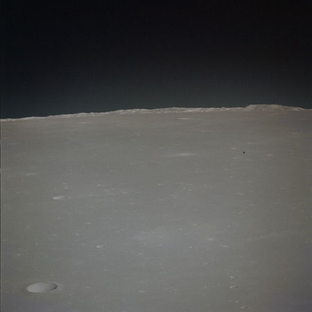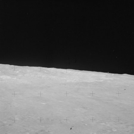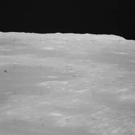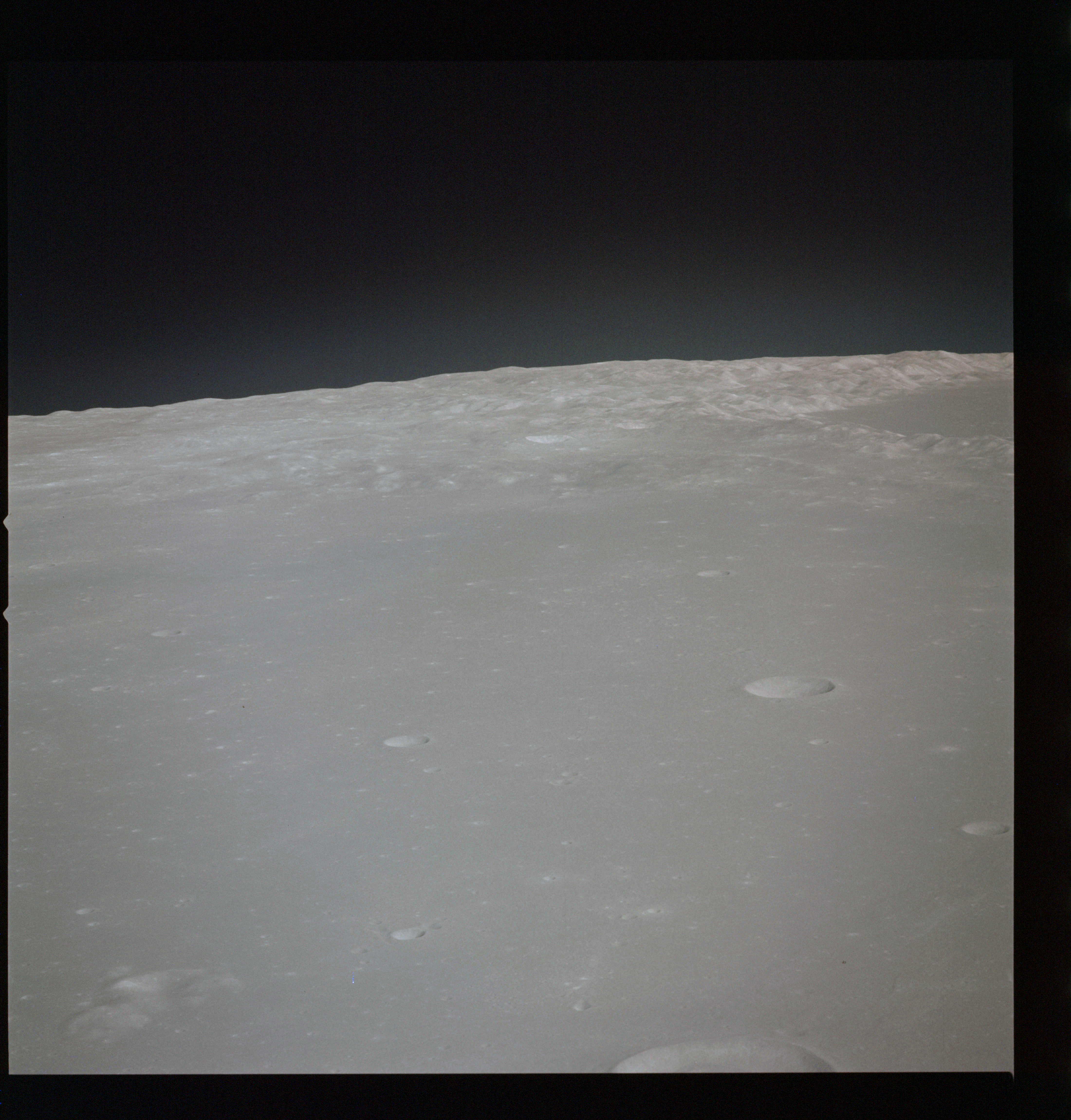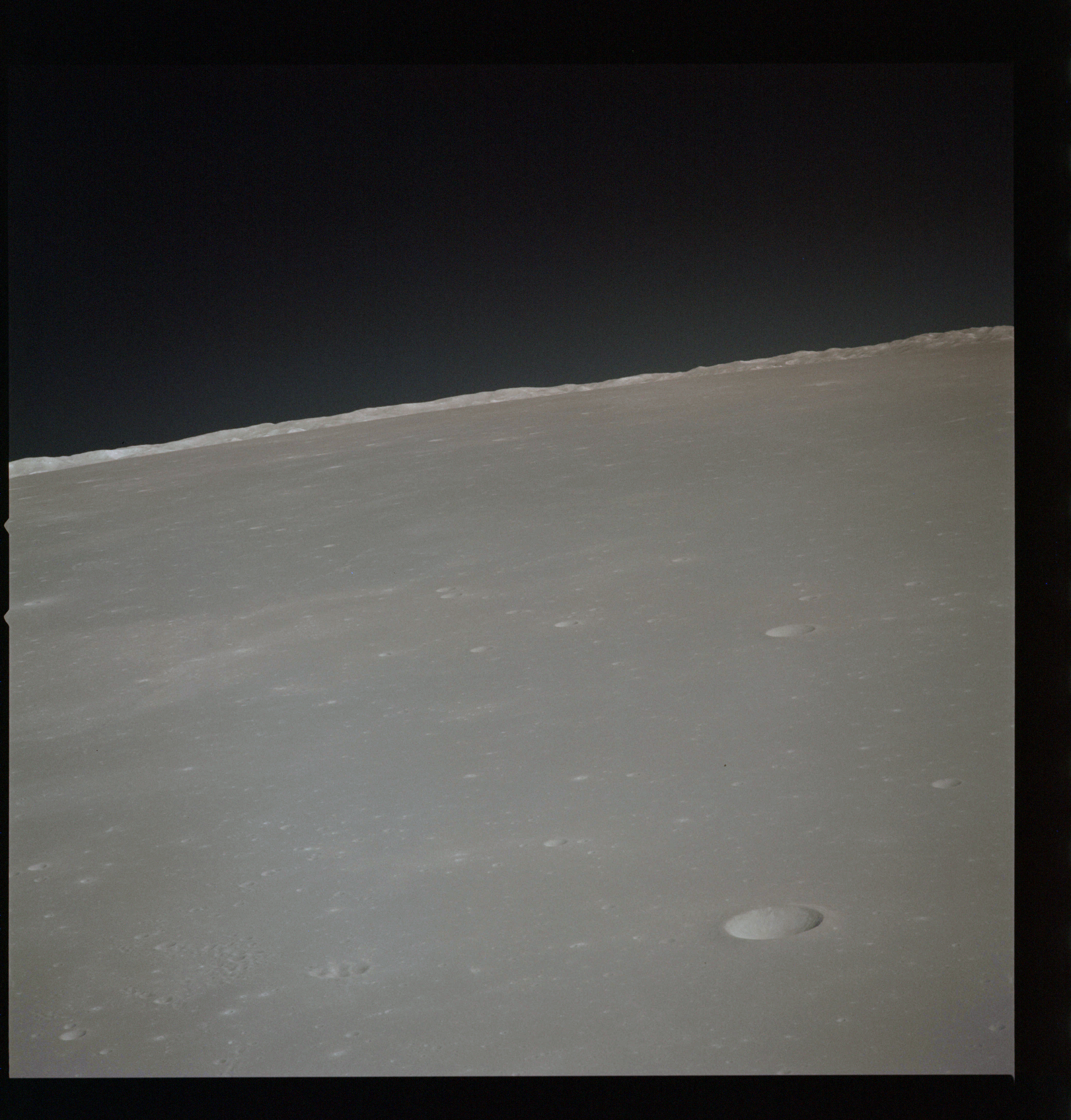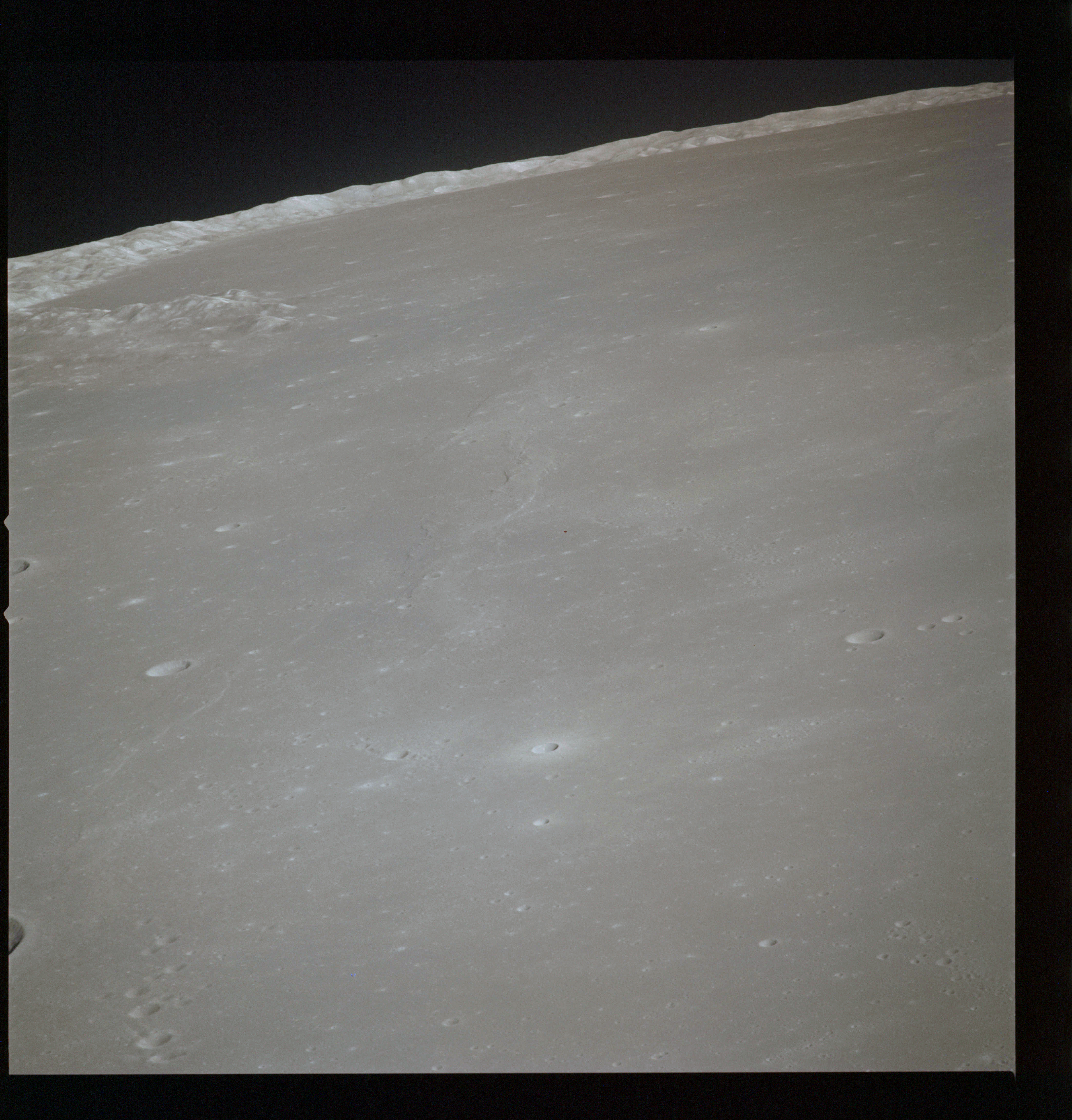 According to the SIM camera index, the last image in the current sequence is AS15-M-2623. However, this is a double exposure with the first image of the next sequence. The last clear image, AS15-M-2622, is shown here instead.