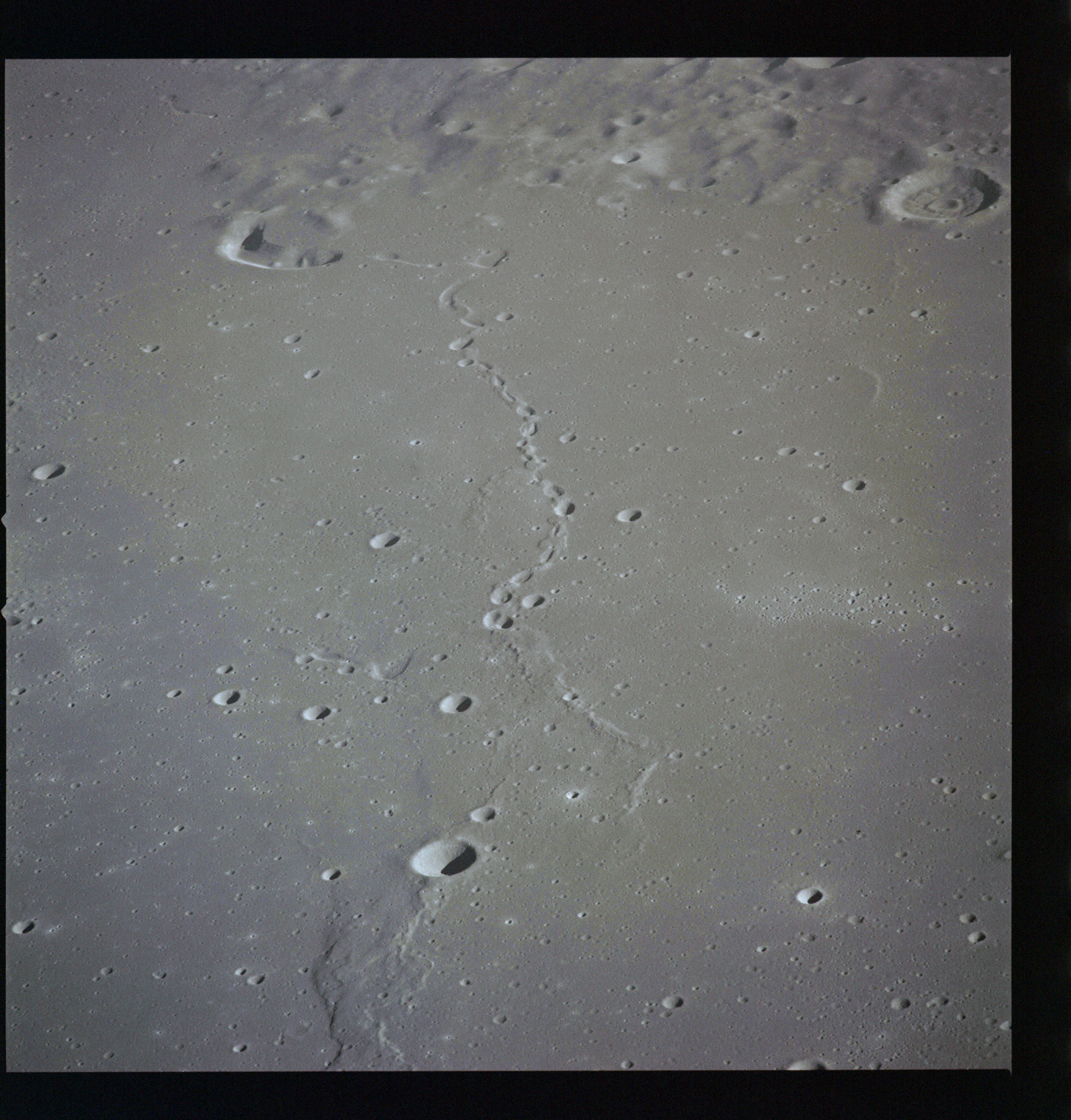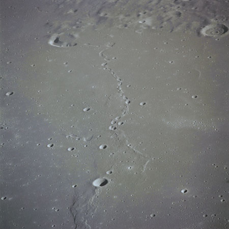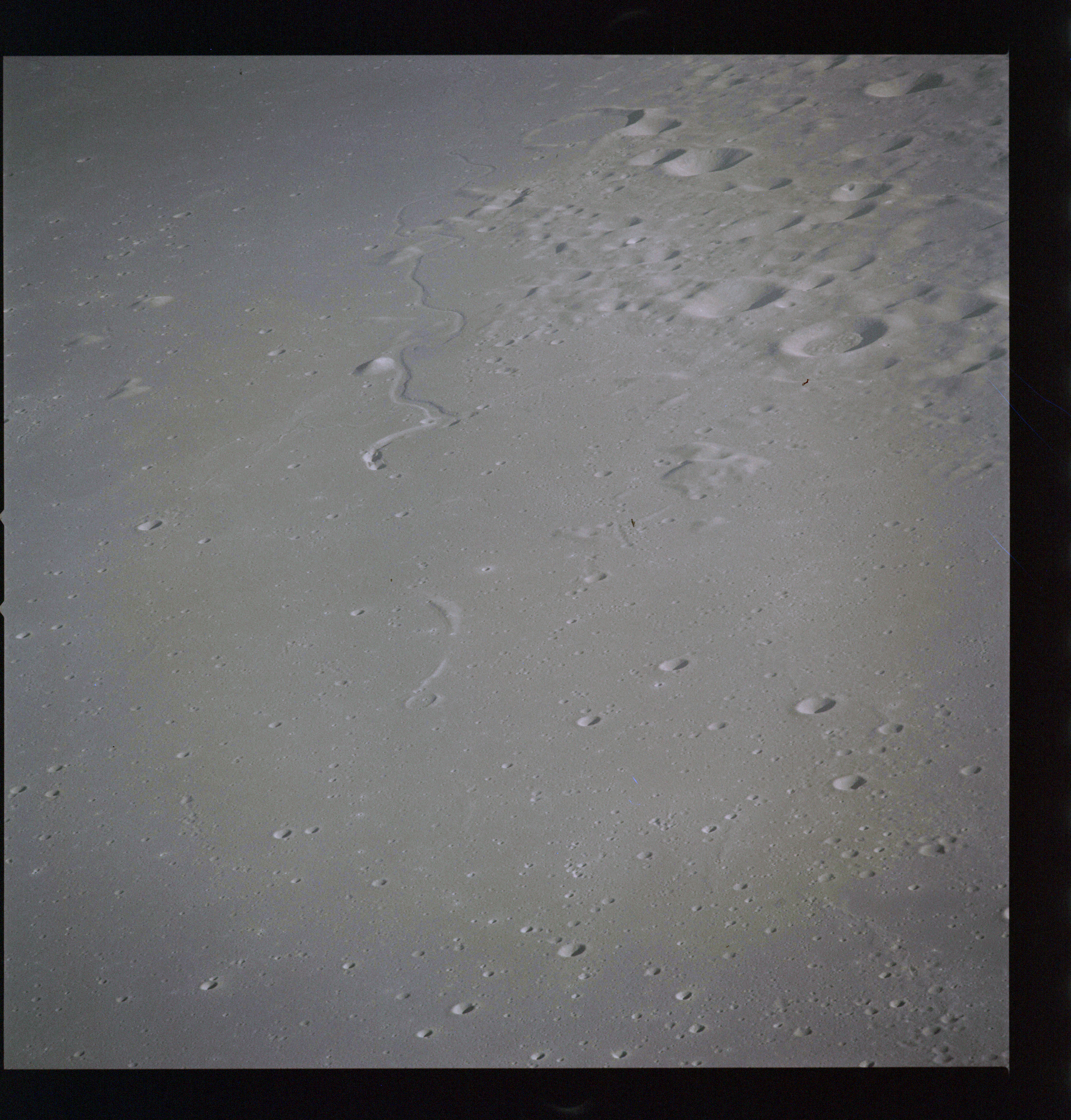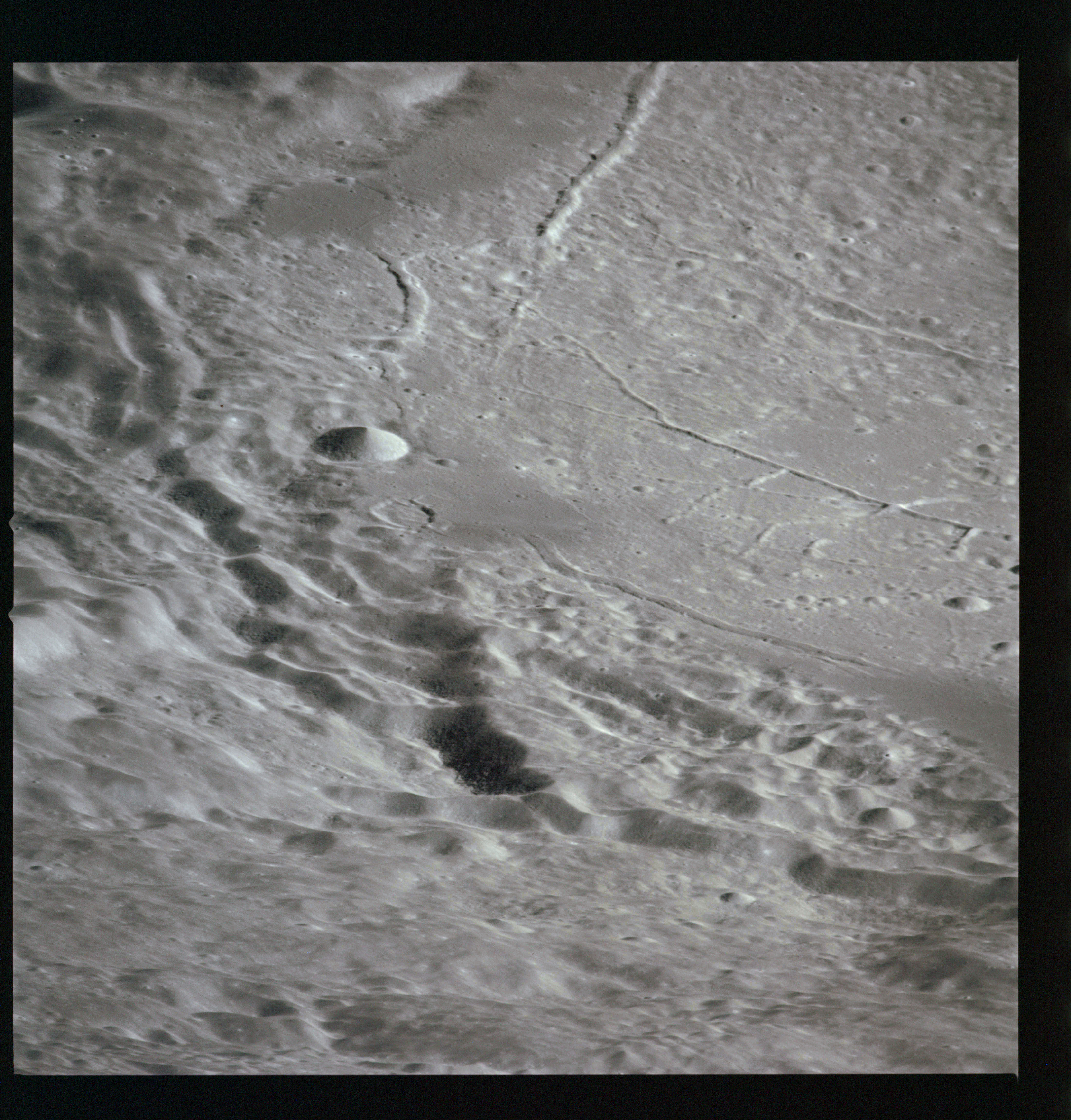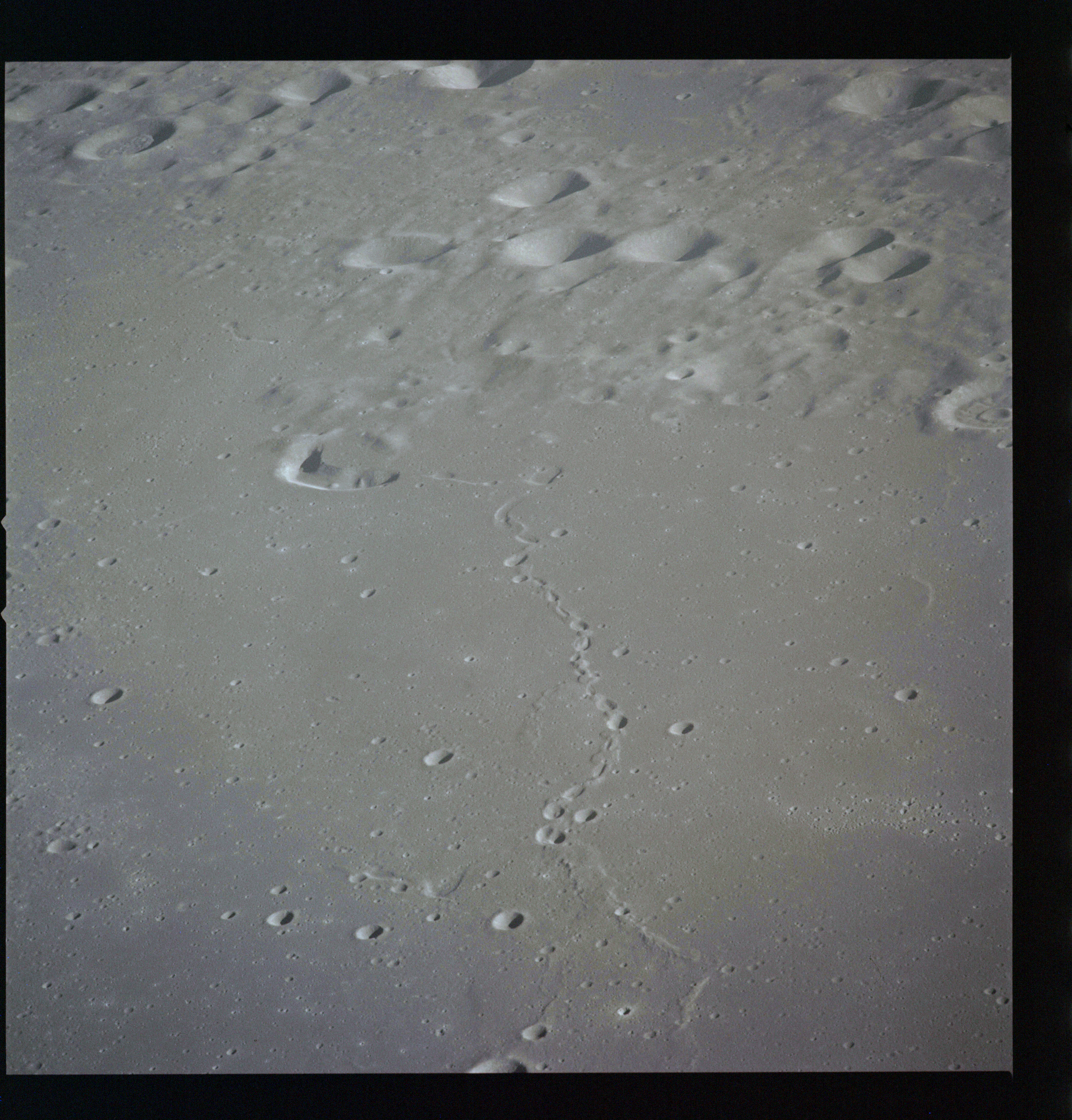 AS15-93-12726 - Wrinkle ridge and collapse pits across Oceanus Procellarum - Image by NASA/Johnson Space Center.