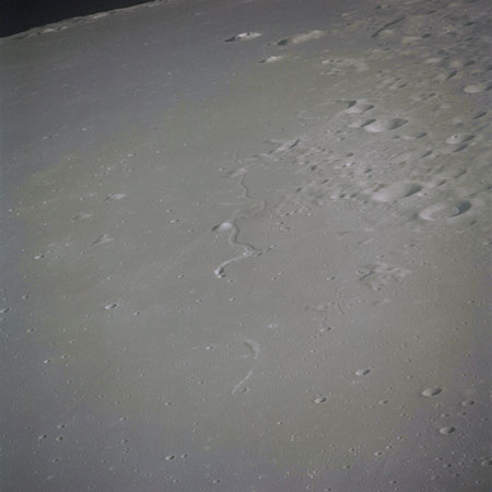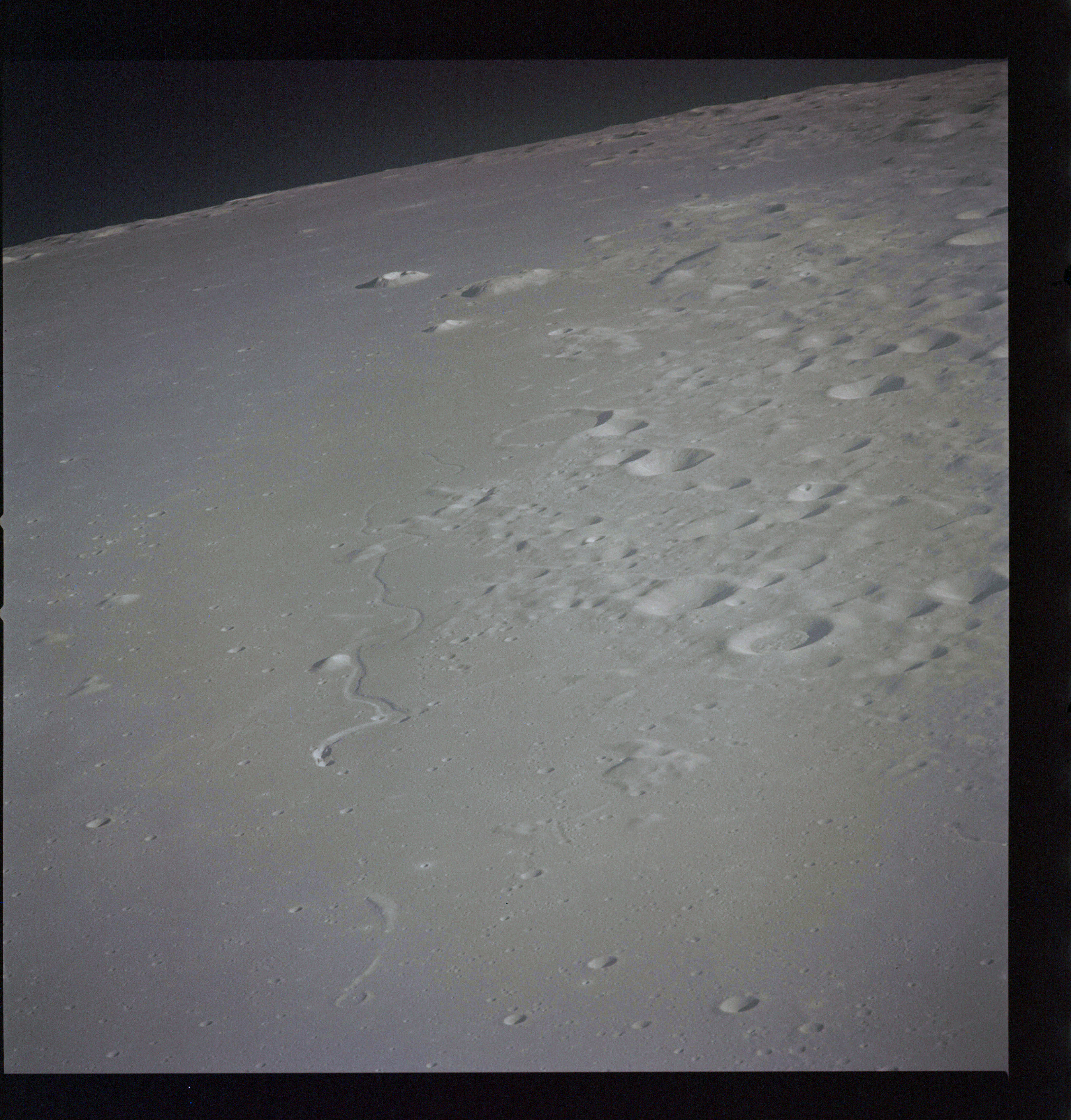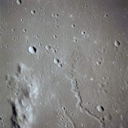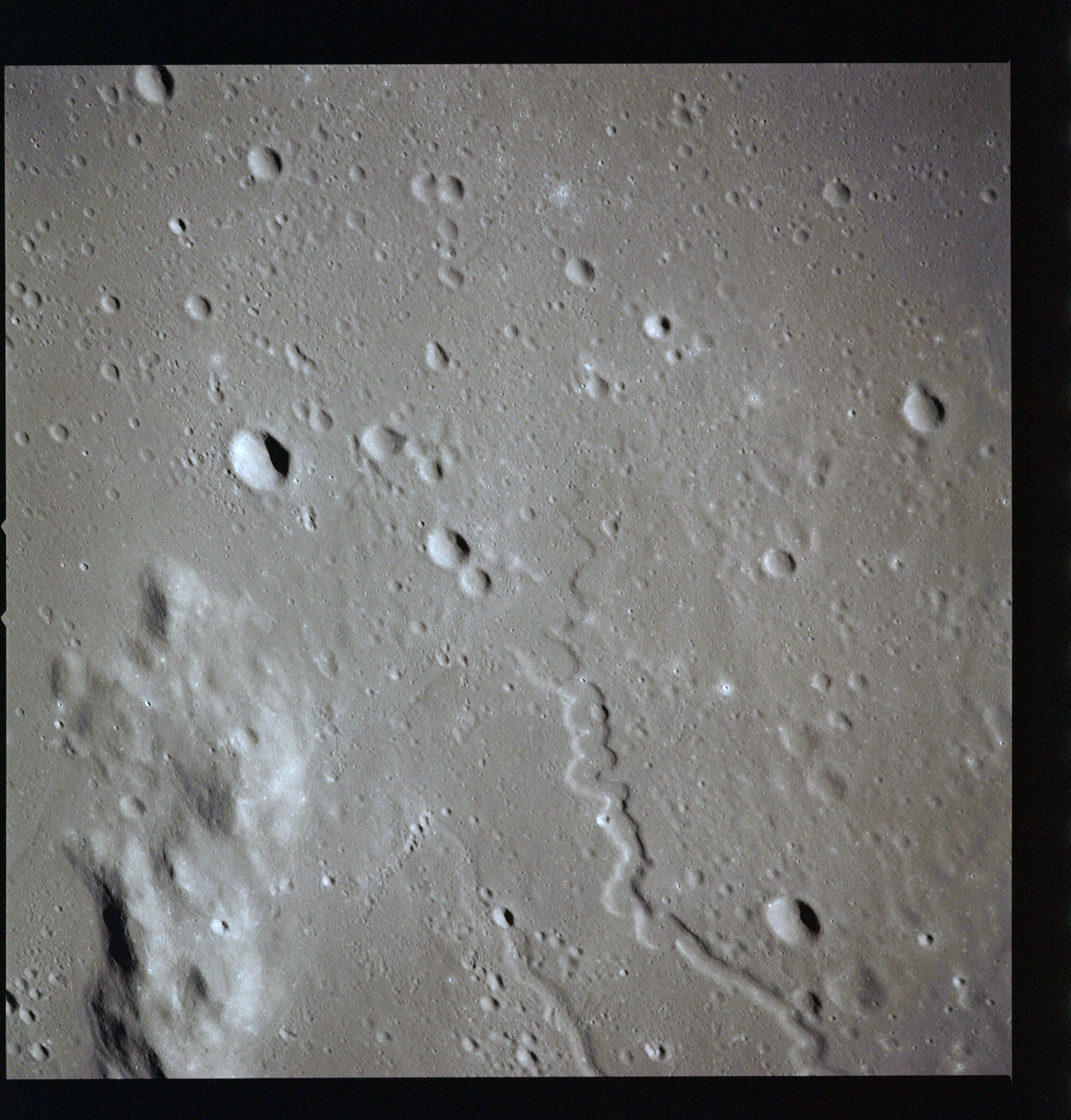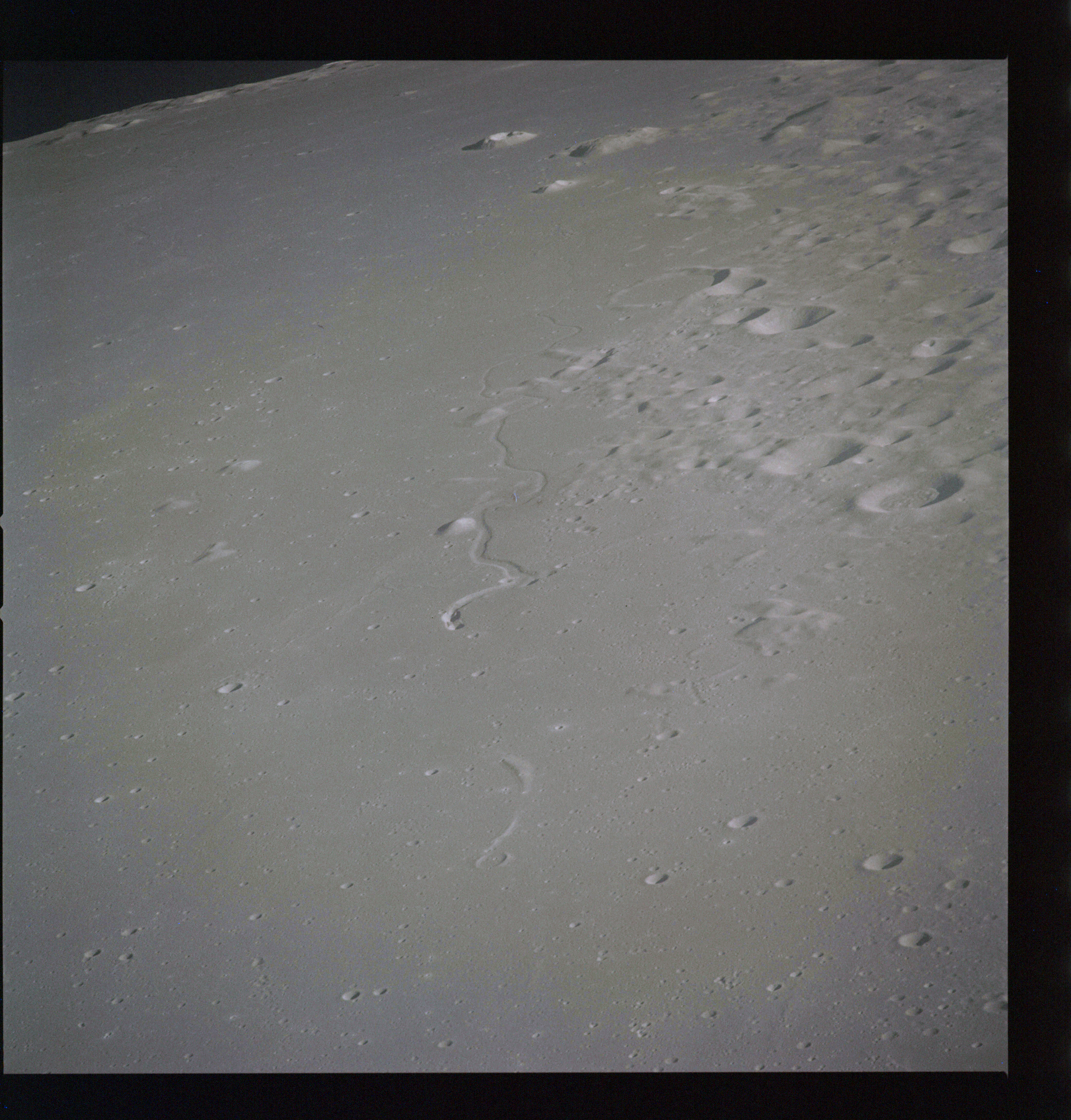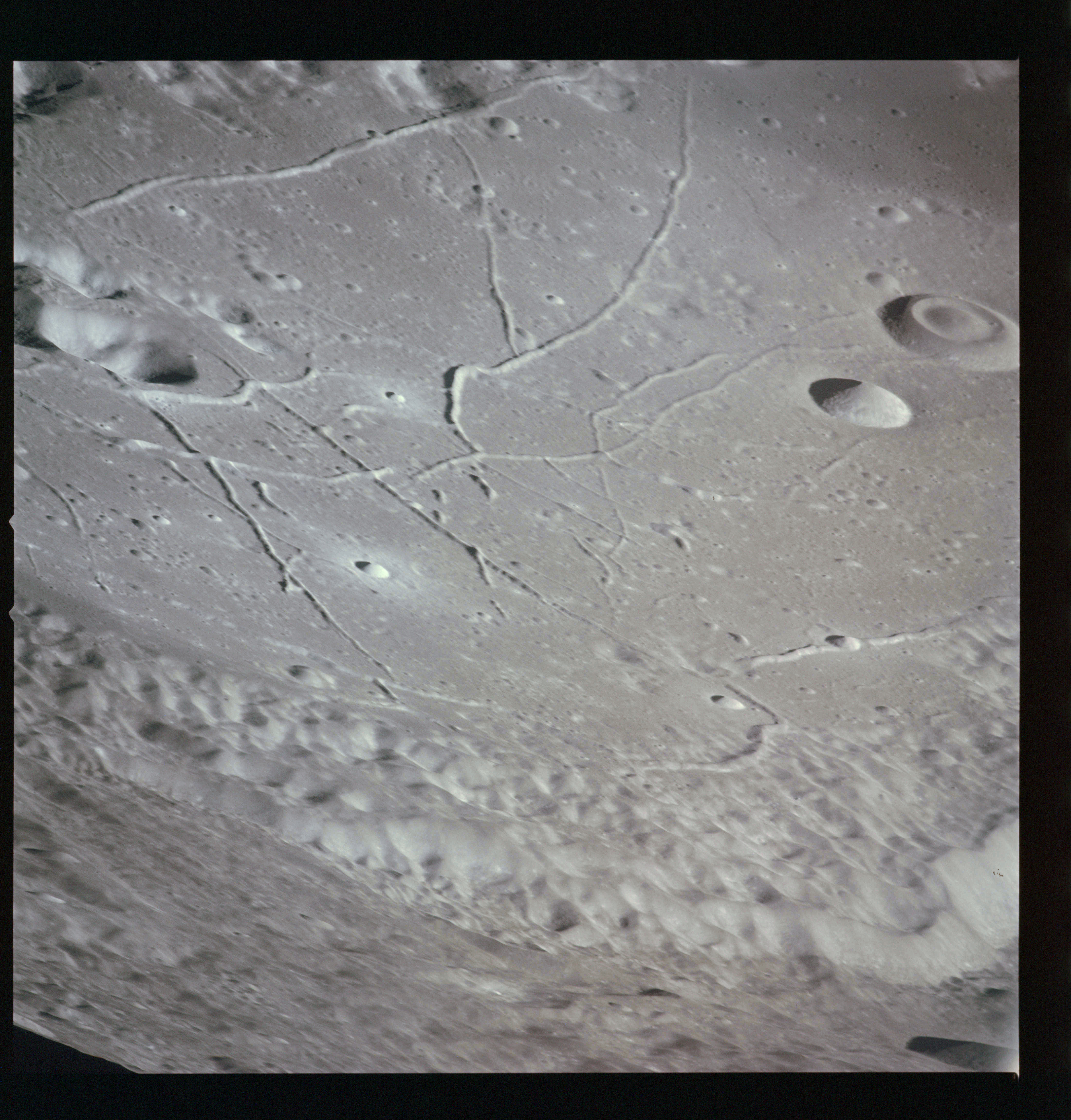 AS15-93-12726 - Wrinkle ridge and collapse pits across Oceanus Procellarum - Image by NASA/Johnson Space Center.