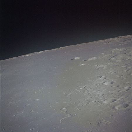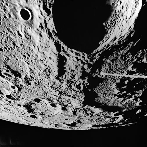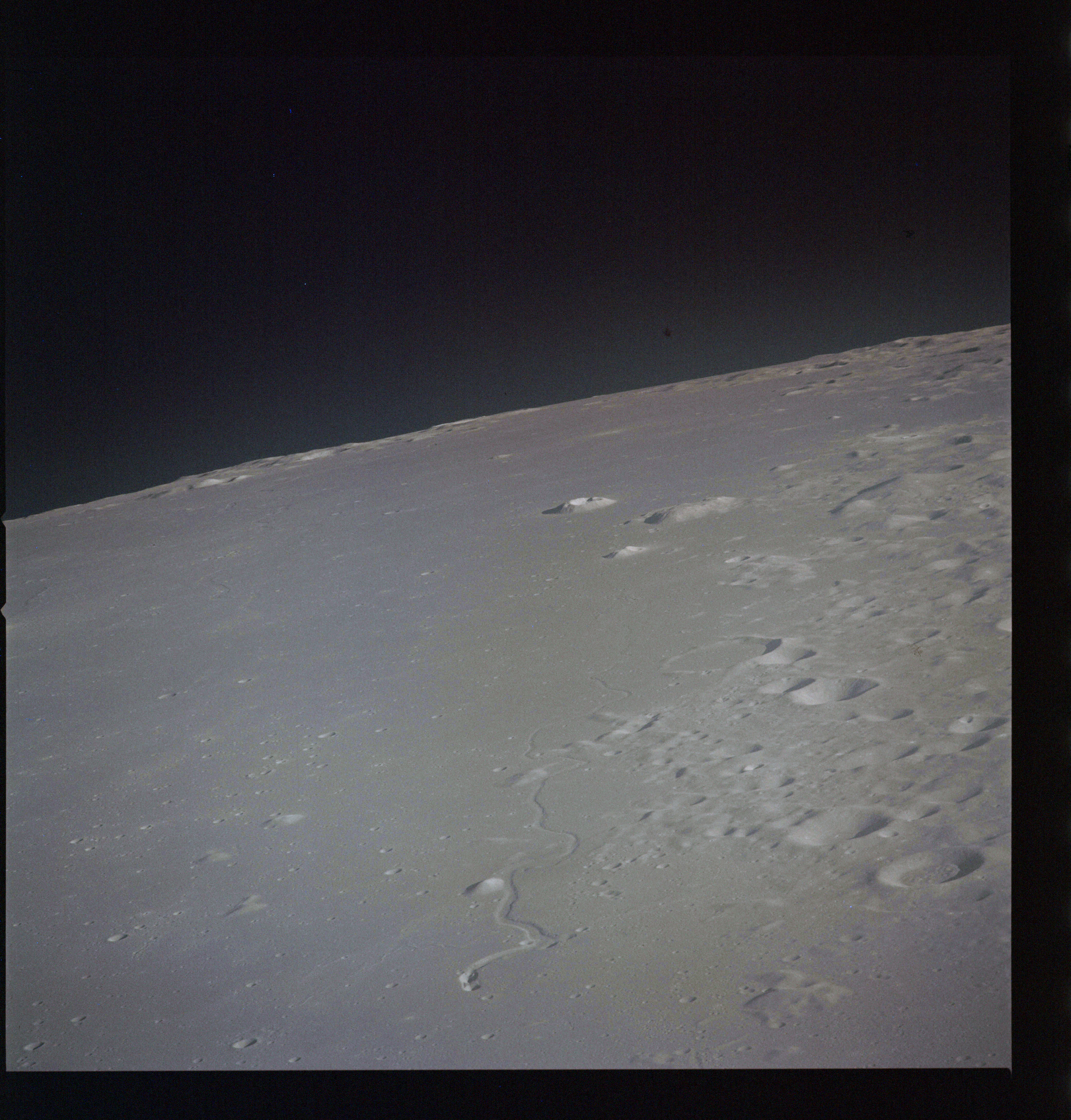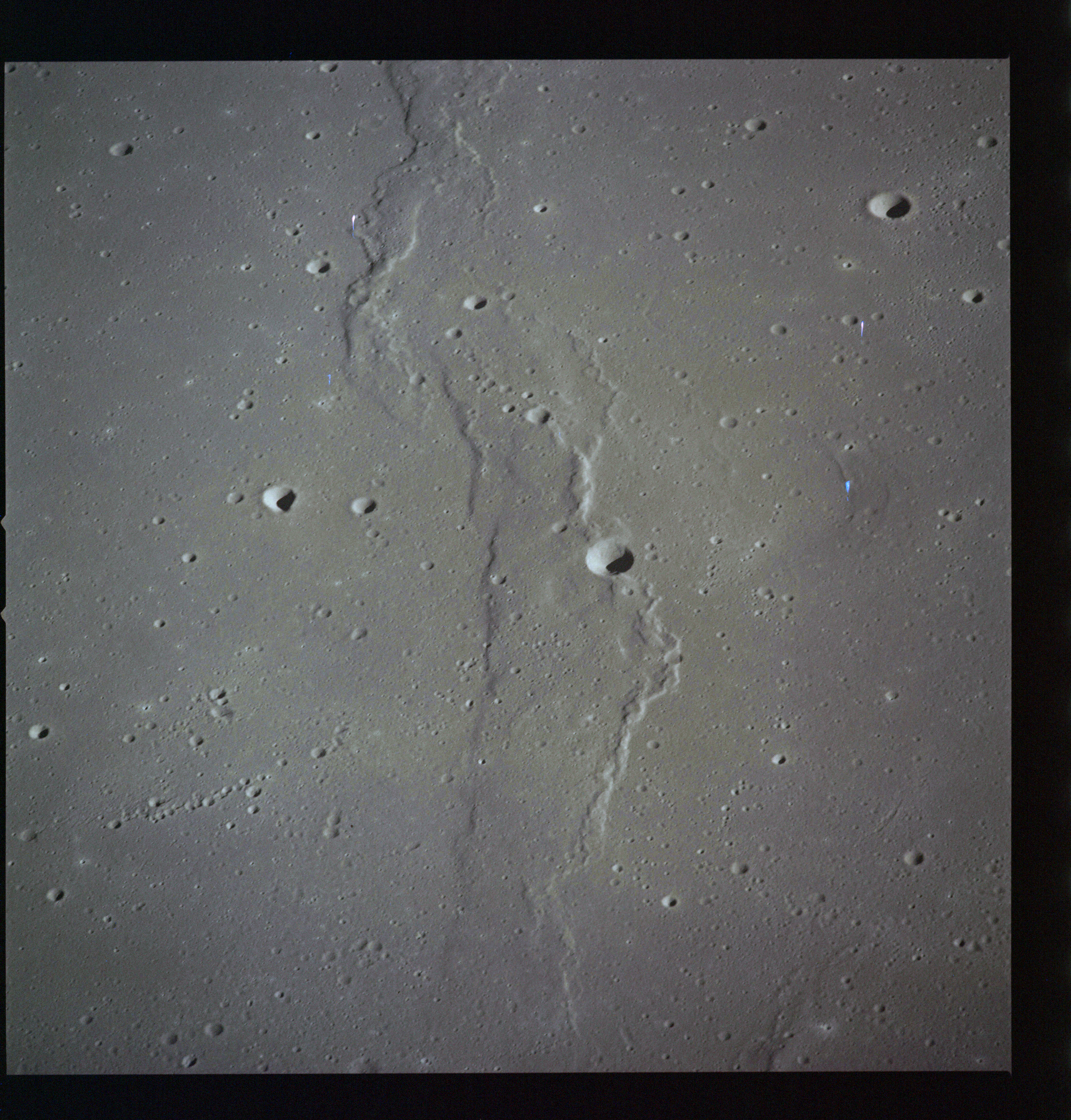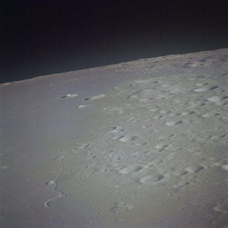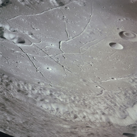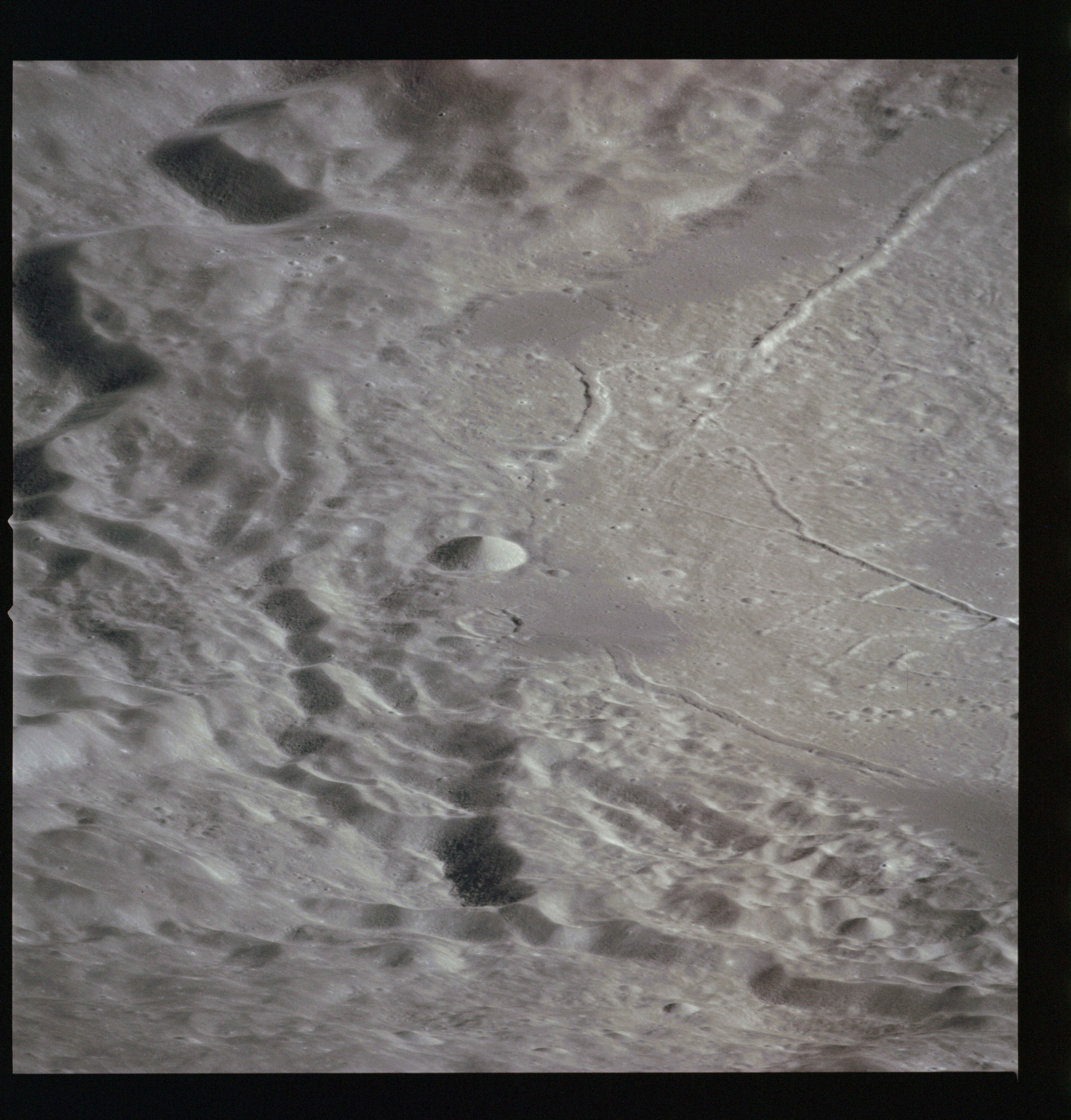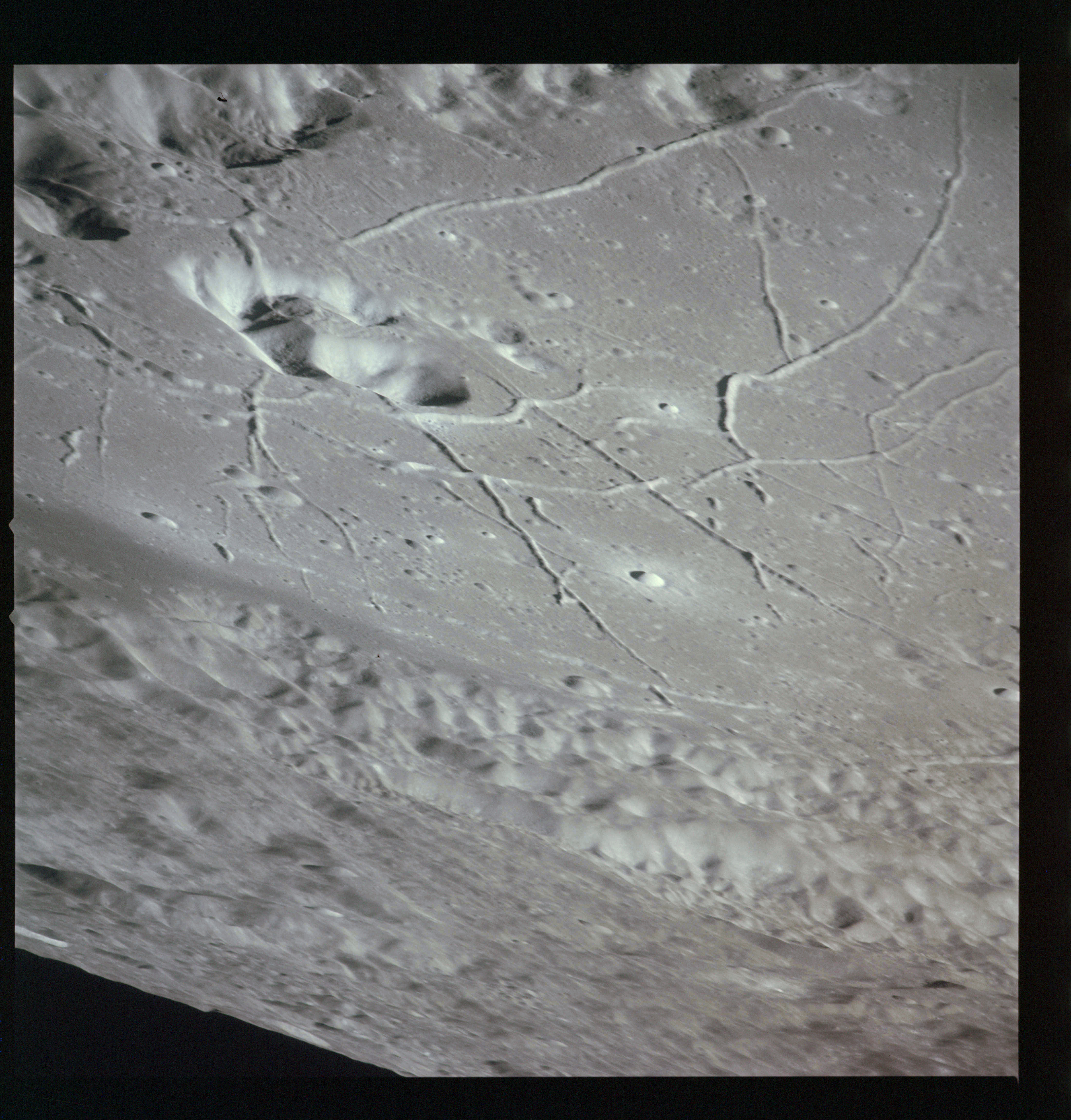 AS15-93-12726 - Wrinkle ridge and collapse pits across Oceanus Procellarum - Image by NASA/Johnson Space Center.