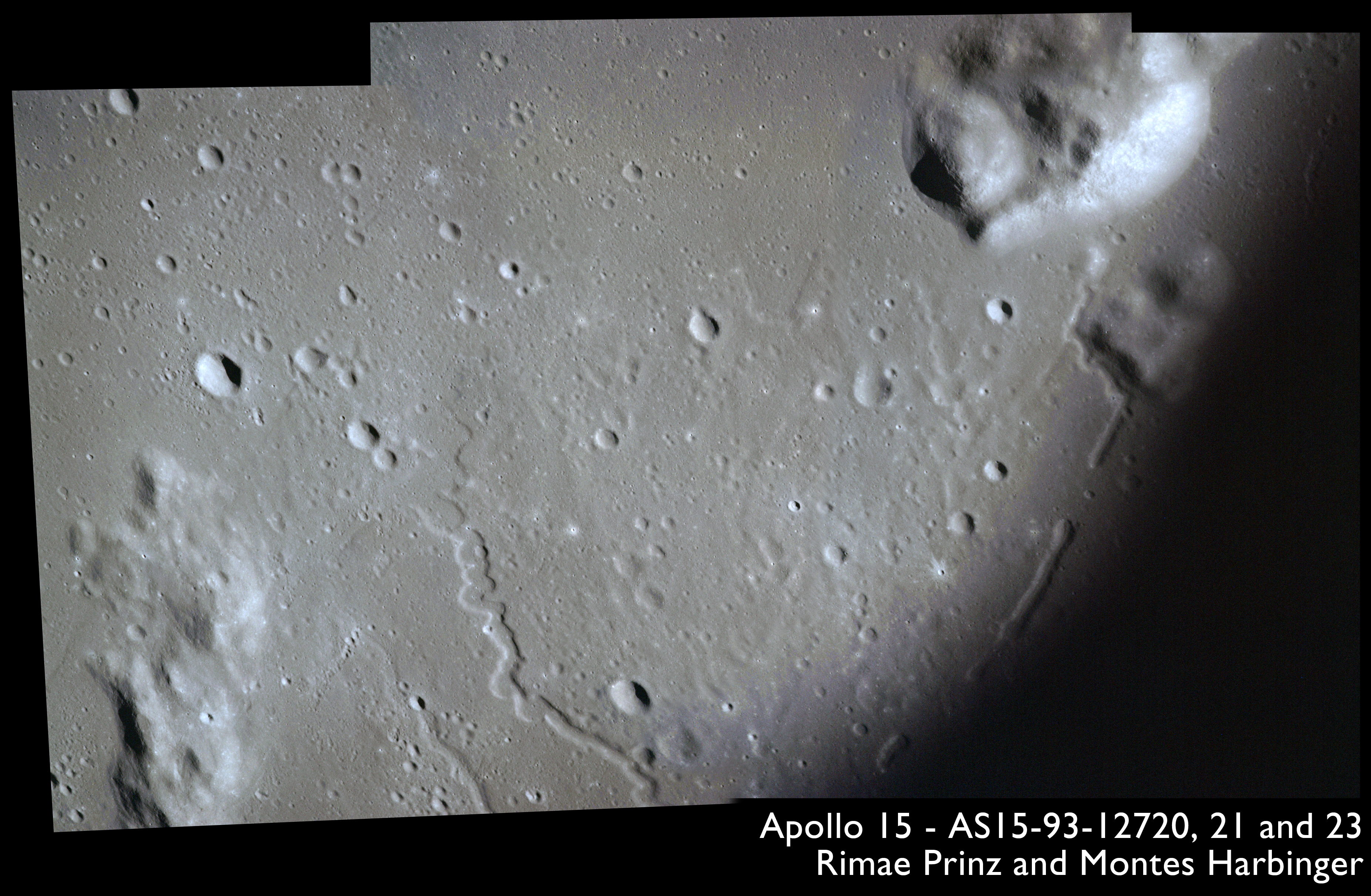 AS15-93-12723 - Mons Harbinger Mu and Rimae Prinz - Image by NASA/Johnson Space Center.