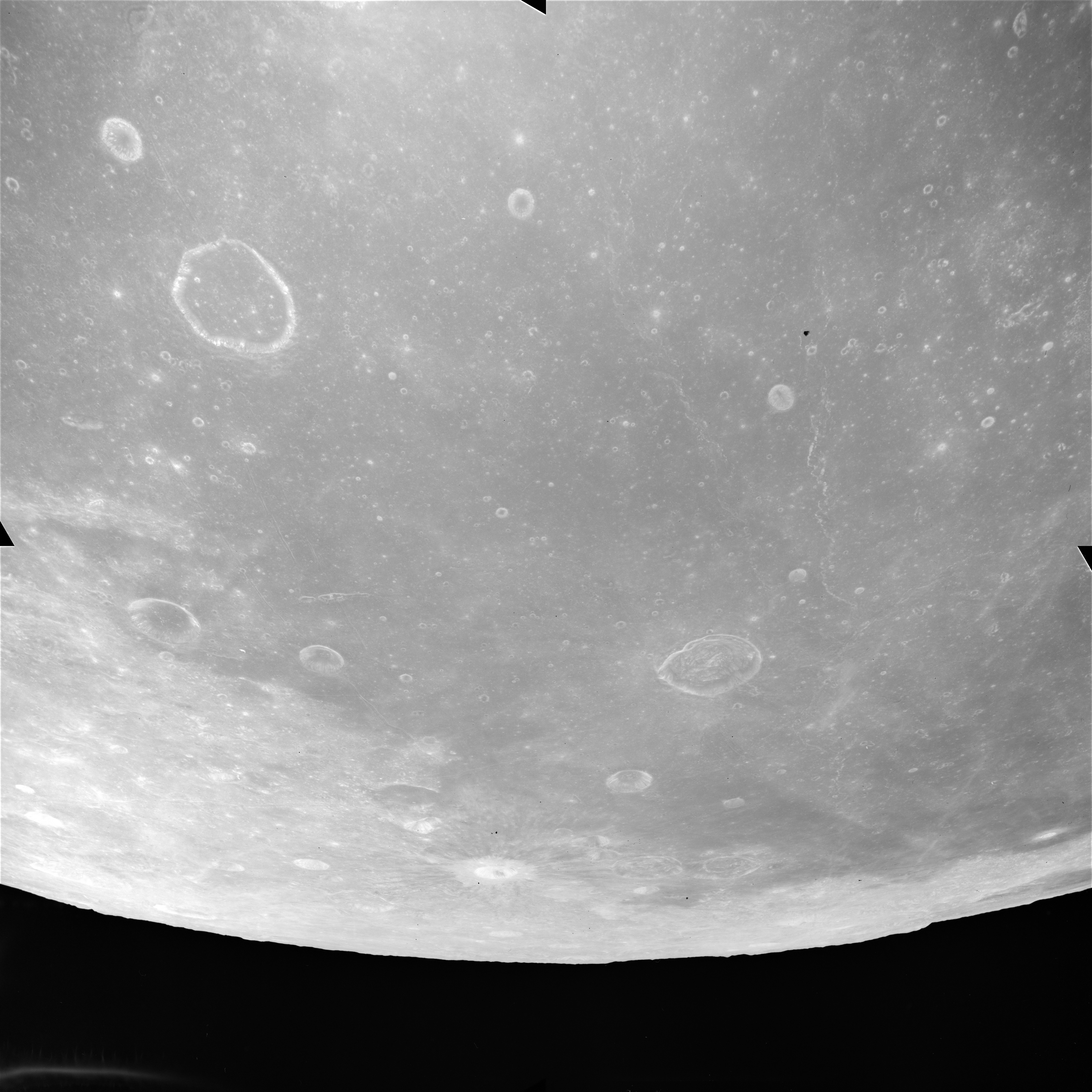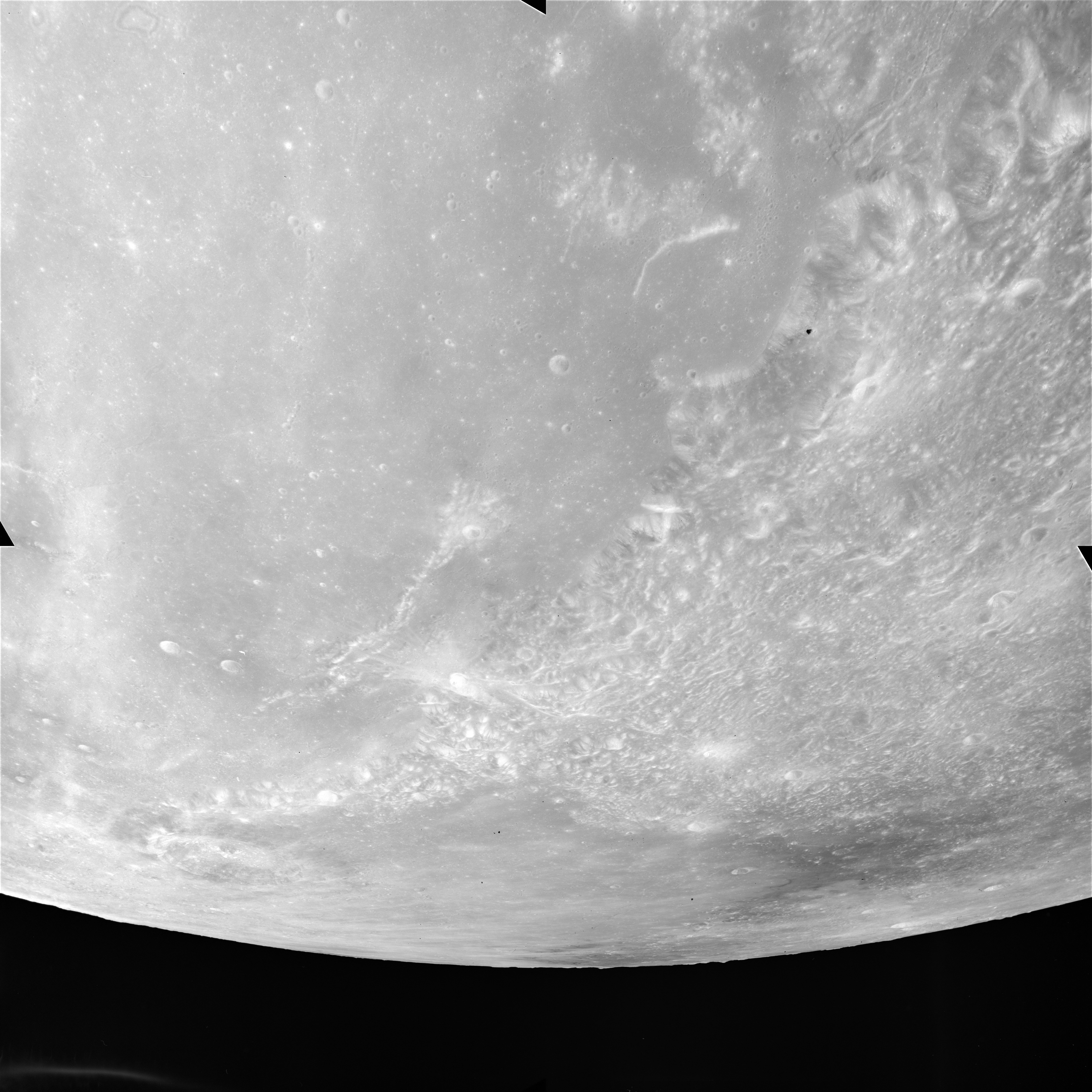Composition of images AS15-93-12724 to 12728 showing parts of Rimae Prinz and Montes Harbinger - Images by NASA/Johnson Space Center.