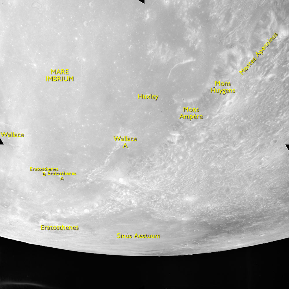 As the spacecraft continues its progress westwards, Promontorium Heraclides (Hercules Promontory) comes into view. This represents the southwestern cusp of Sinus Iridum.
