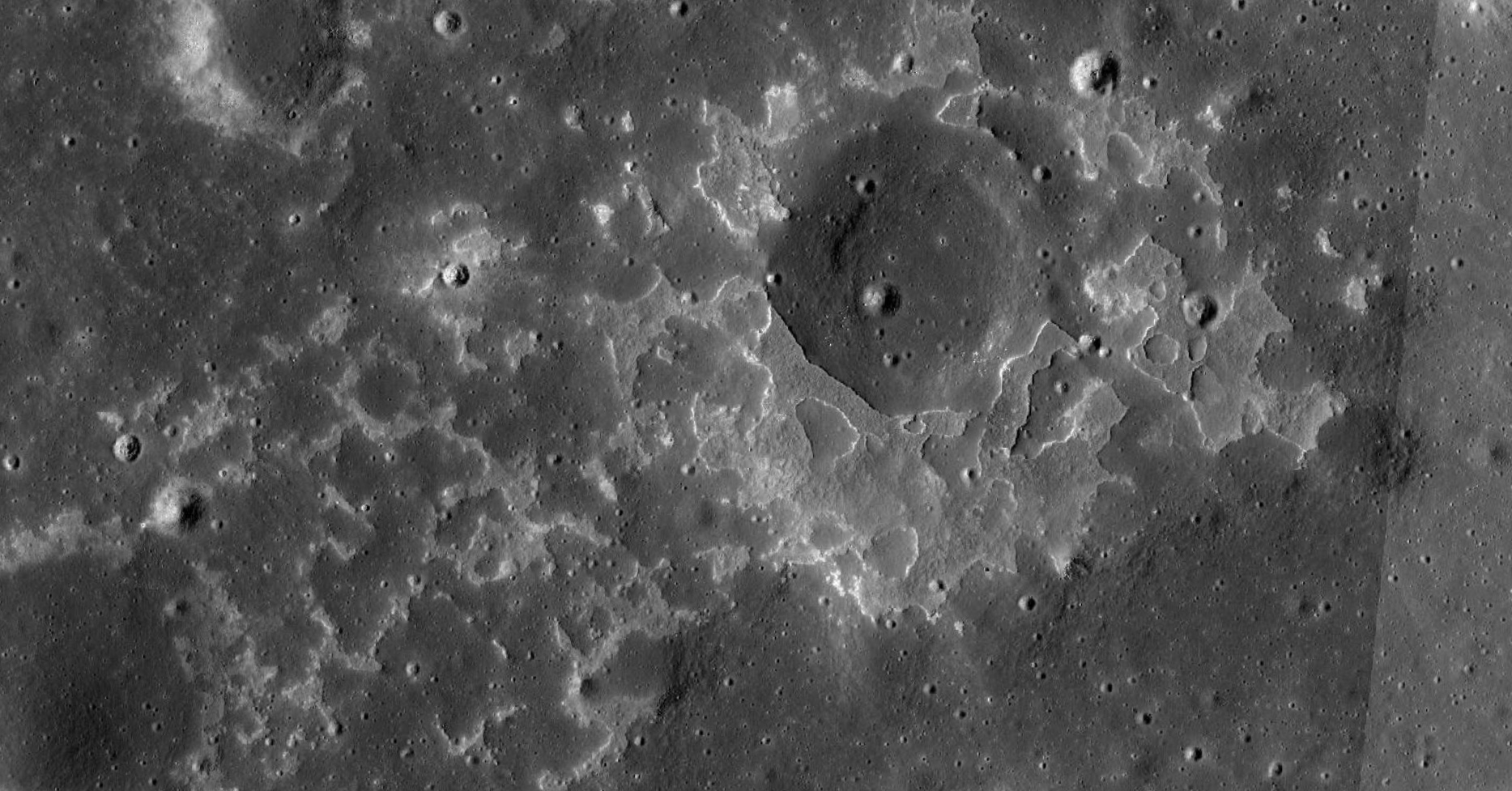 AS15-93-12725 - Wrinkle ridge and collapse pits across Oceanus Procellarum, including crater Gruithuisen K - Image by NASA/Johnson Space Center.