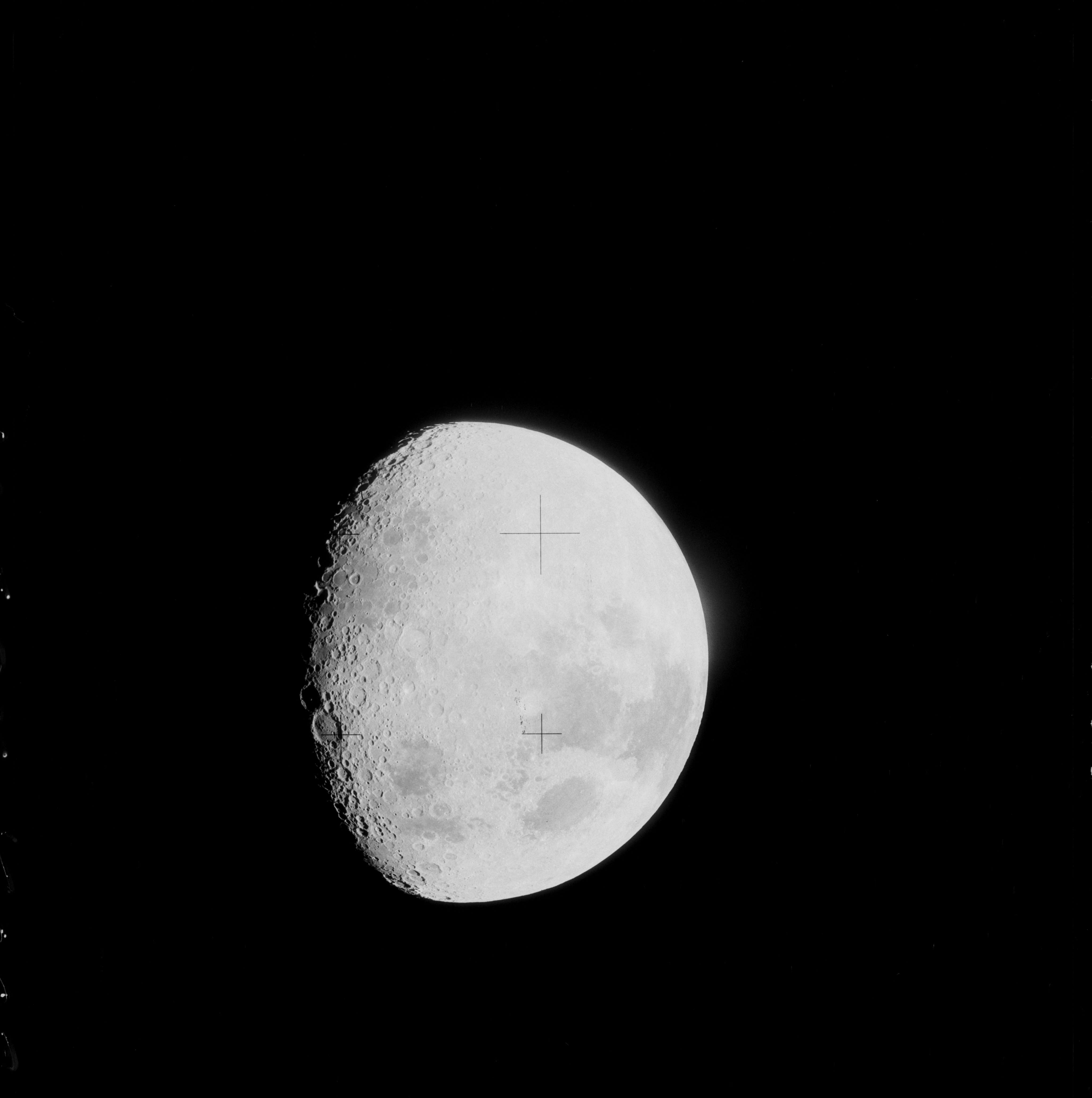 The next set of photos to be taken use the 500mm lens with a black and white film magazine, RR, to spot detail across the visible hemisphere.