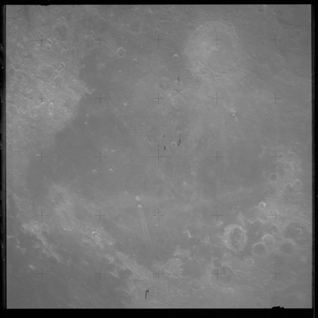 In AS15-95-12995, Mare Fecunditatis is well framed showing the Messier pair of craters that the crew recently flew over, and the comet-tail rays that emanate westwards from them. The large crater that dominates the eastern side of the mare is Langrenus.