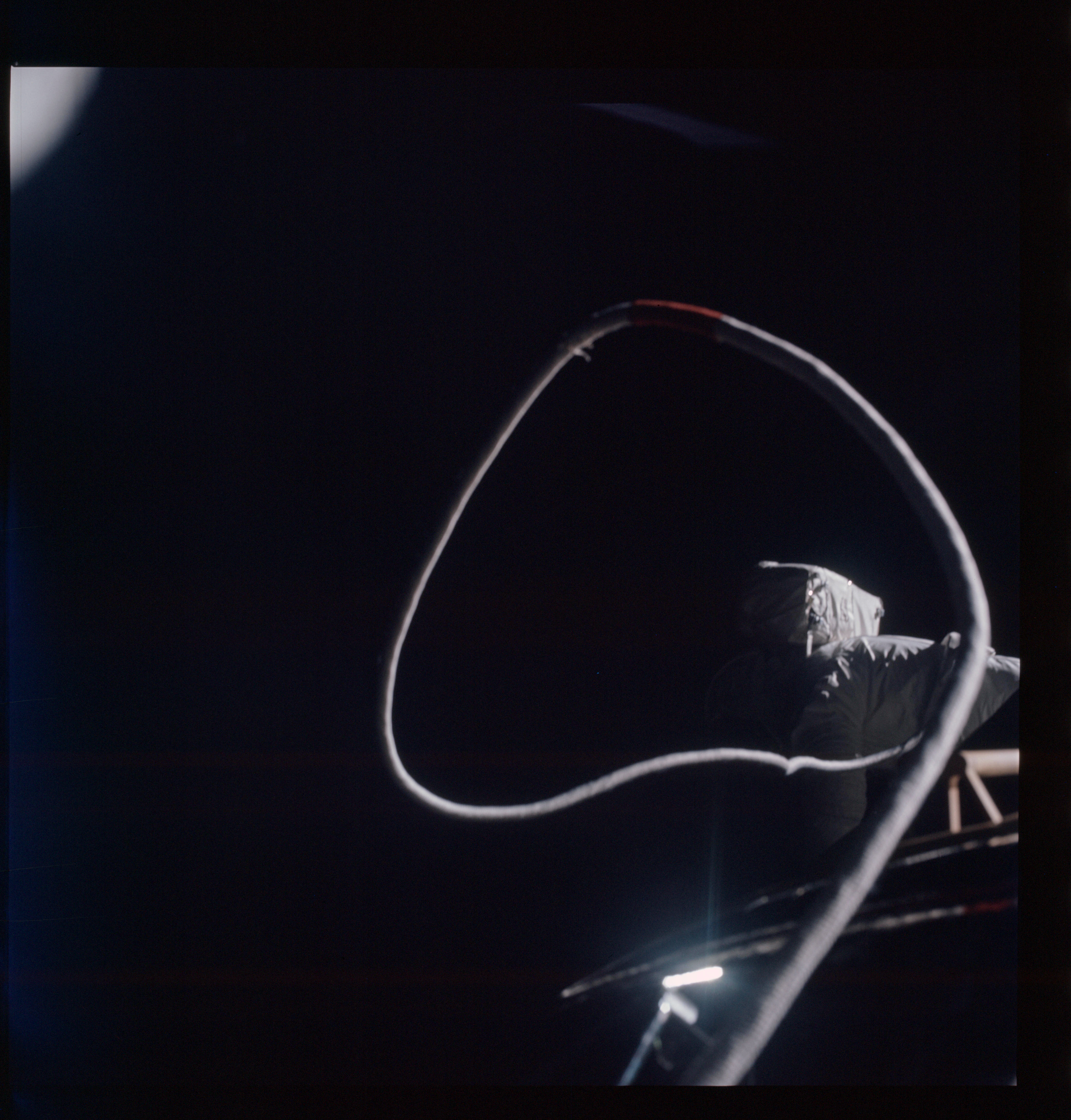 Worden (continued): "In true zero-g it was really much easier than it had been even in the zero-g airplane. I think there's some rotation that you get in the zero-g airplane that does affect your motions a little bit. True zero-g is just much easier. If you can do it in a zero-g airplane and in the Water Immersion Facility, in flight it is easy."