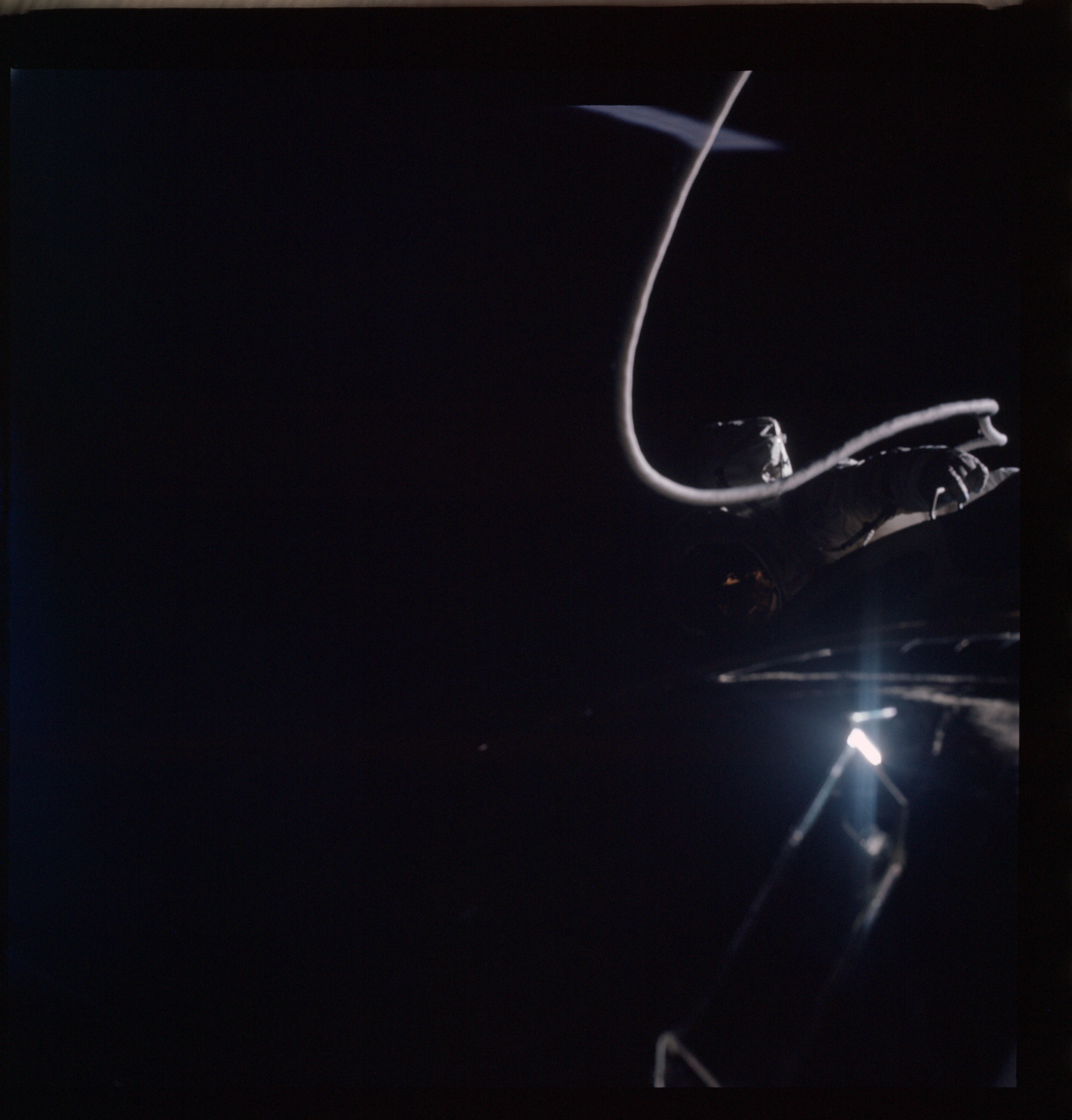 Scott, from 2004 mission review: "Weren't in a rush, but on the other hand, the purpose was to get the film and get back in. I think Al did the right thing. Came back in. I mean, it'd be nice to stay out and float around and look around but, why? So if you stay out and float around and look around and then something goes wrong during that period, then you say, 'Why did I do that?' So I think what you do is you do your job and you get back in and close the hatch and say, 'Gee, that was wonderful. I had a great time. I did my job.' I think to float around out there is exposing yourself to an unnecessary risk. It's low risk, but on the other hand, it's high risk. So what if that last minute is a time you popped a leak for some reason? Eh? So shoot, get the job over. As sort of an analogy, we used to fly airplanes in bad weather. Rule was always; go to your destination, finish your mission and then play around because if you got to get down, you got fuel."