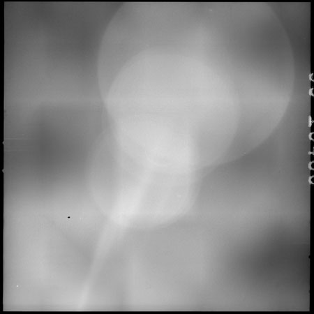 Next, by the Flight Plan, the magazine on the back of the Hasselblad camera body is changed to colour film and a reference shot taken through the same camera/lens combination. An earlier change in the Flight Plan asked for magazine P to be used instead of M. However, this magazine was finished three orbits before Endeavour left the Moon. Magazine Q is substituted.