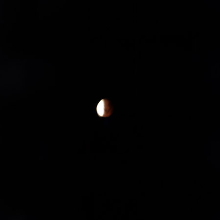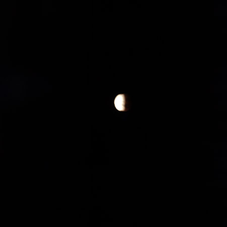 These are the seven frames taken using the 80-mm lens. The checklist had called for three exposures at shutter speeds of 1, 2 and 10 seconds. These 'browse' images are cropped to show the otherwise small images of the Moon. A large, uncropped version can be had by clicking on the image.