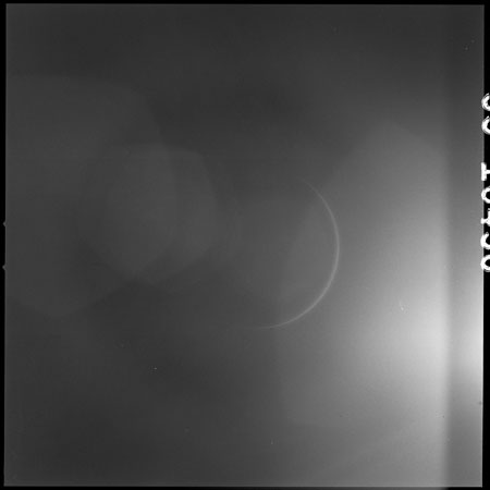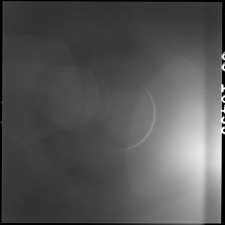 286:51:57 Scott: Well, we just got our first view of the Earth this morning, and, can you believe it's getting larger and it's getting smaller? We see just a very, very thin sliver of a very large round ball.