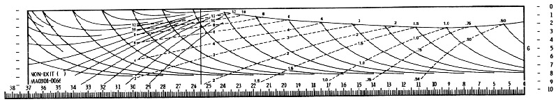 An intricate pattern of lines from the EMS display which define the relation between velocity and deceleration forces.