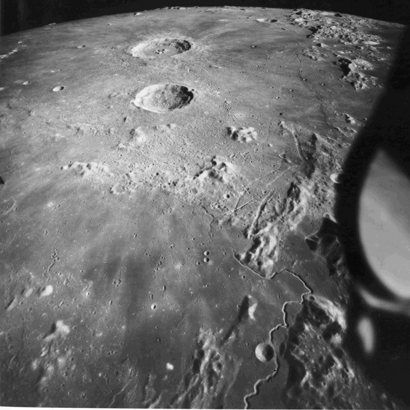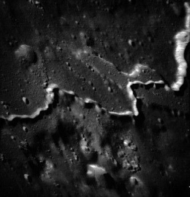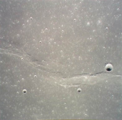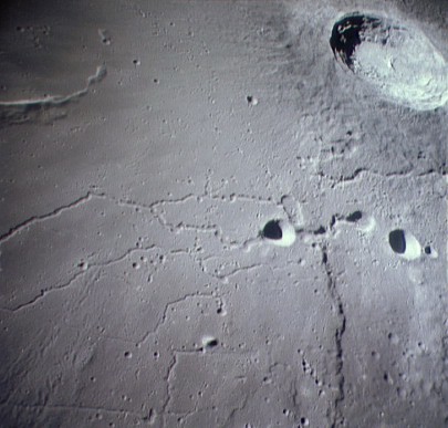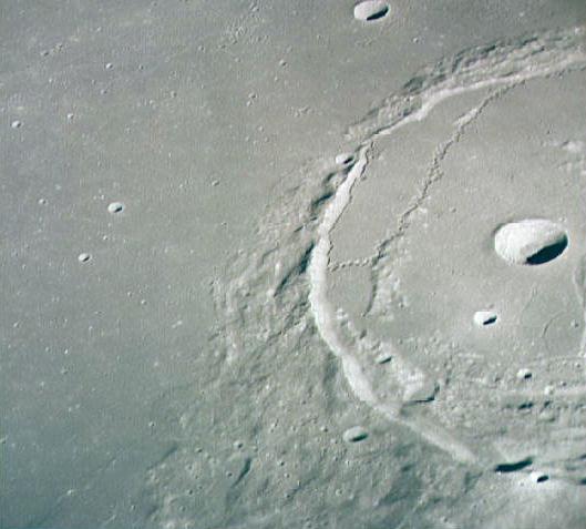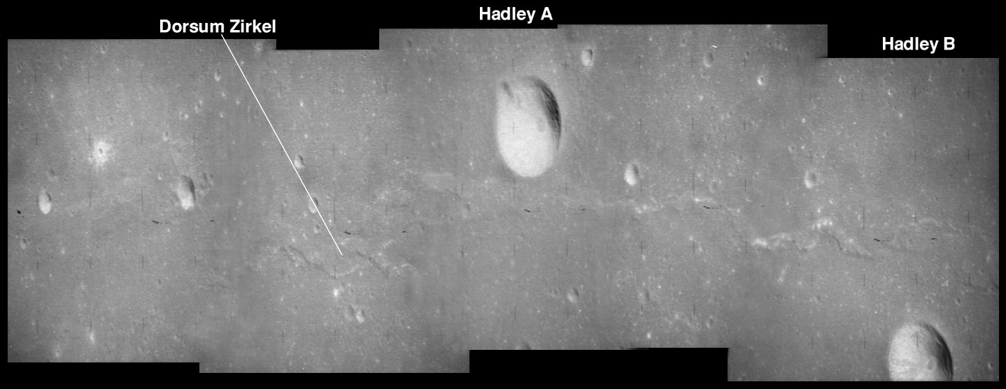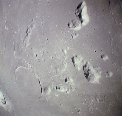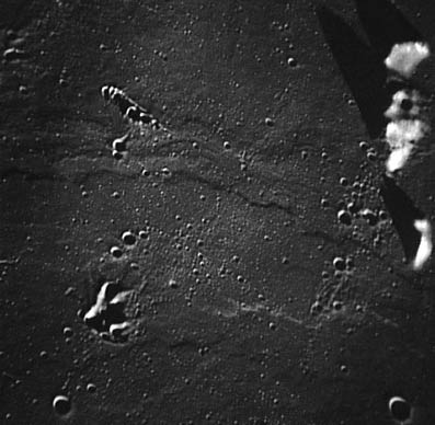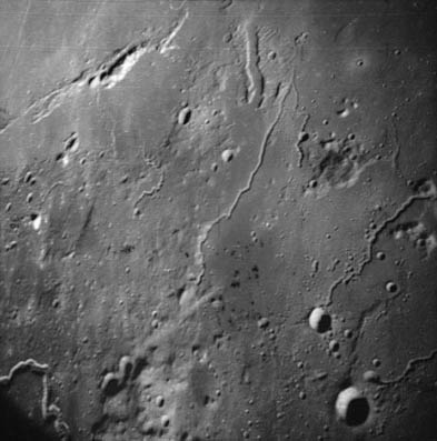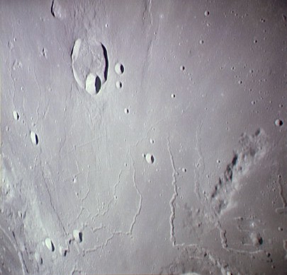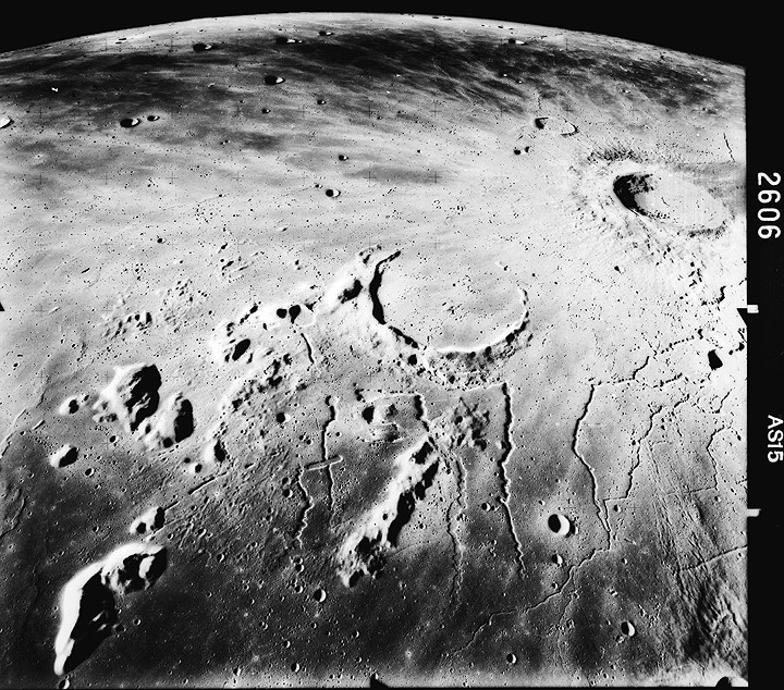 Linné, and Hornsby craters with Krishna depression and Dorsum von Cotta, Dorsum Owen, and Dorsum Gast.AS15-0414M.jpg (247k)