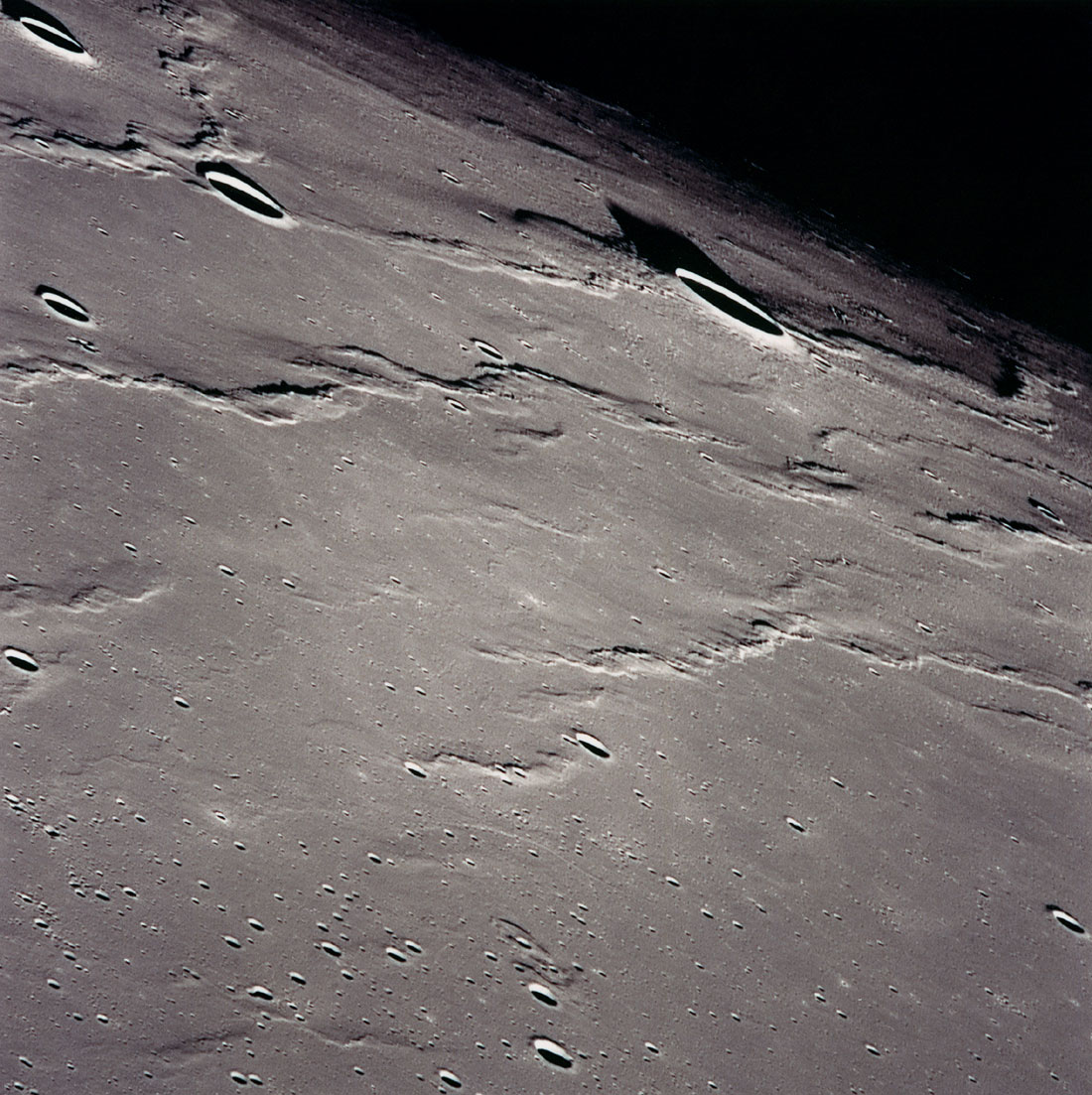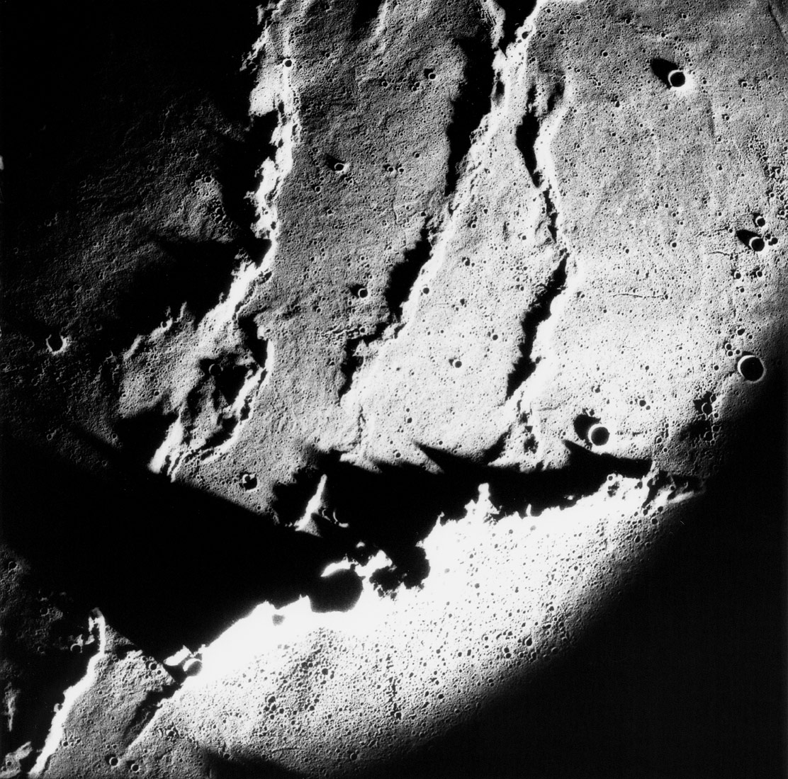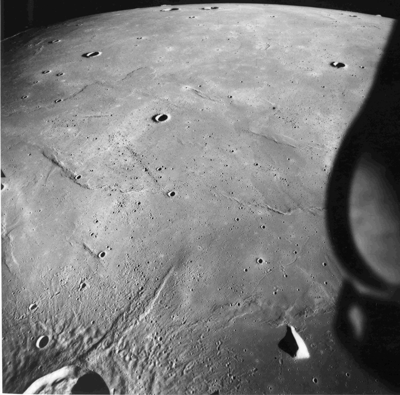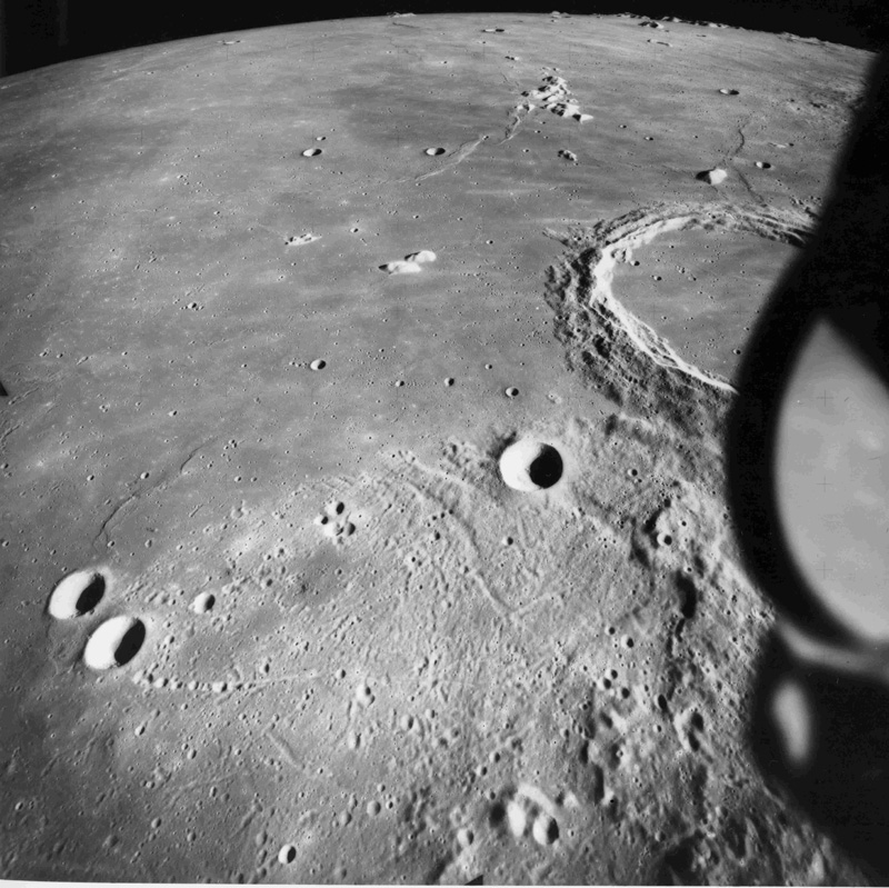 Linné, and Hornsby craters with Krishna depression and Dorsum von Cotta, Dorsum Owen, and Dorsum Gast.AS15-0414M.jpg (247k)