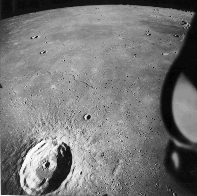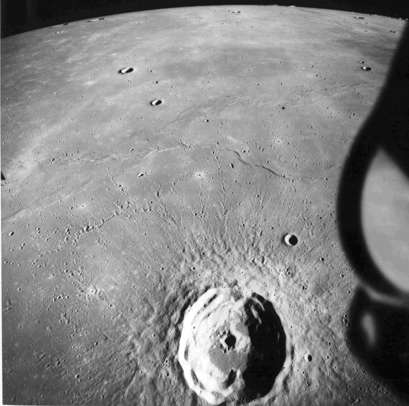 Moving further west of previous image, Timocharis Crater appears at bottom of frame.AS15-1548M.jpg (234k)