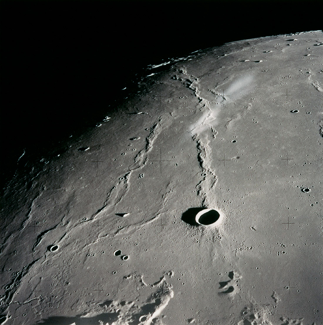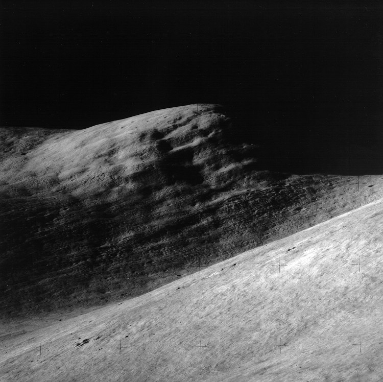 Linné Crater, Dorsum von Cotta, Krishna depression, and Dorsum Buckland: one half of stereo pair.AS15-9375P.jpg (1,090k)