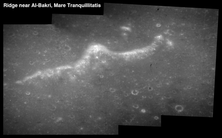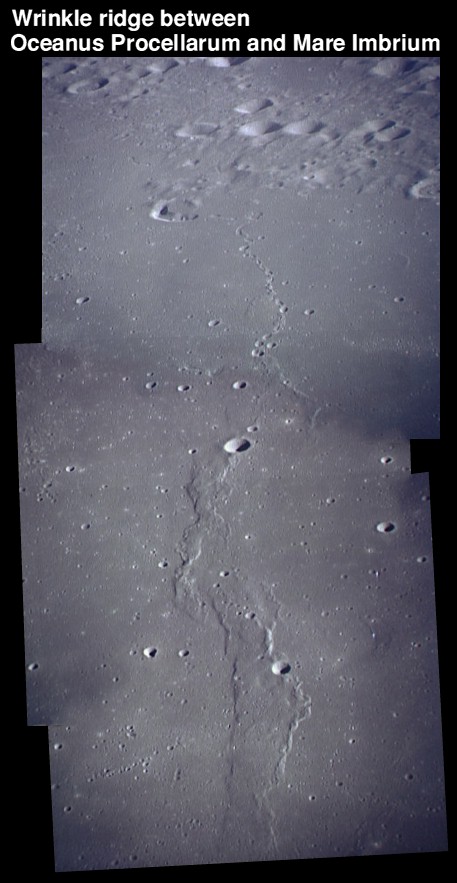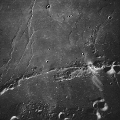 Wrinkle ridges near Humason Crater (formerly Lichtenberg G). Composite of frames AS15-97-13264 and 13265.rimaaris8.jpg (93k)