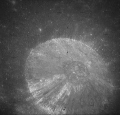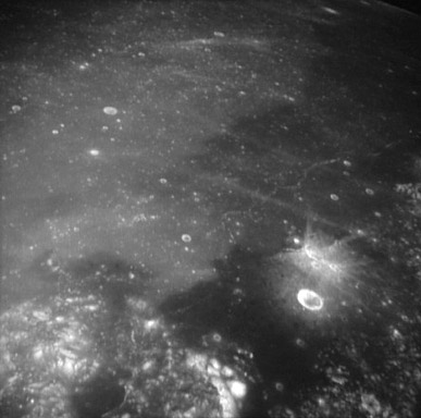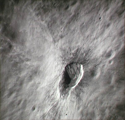 Oblique view of Tsiolkovsky crater and its ejecta blanket.AS15-0835M.jpg (168k)