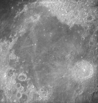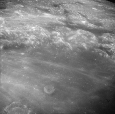 Moving further west of previous image, over the basalt flows of Mare Imbrium.AS15-1547M.jpg (229k)