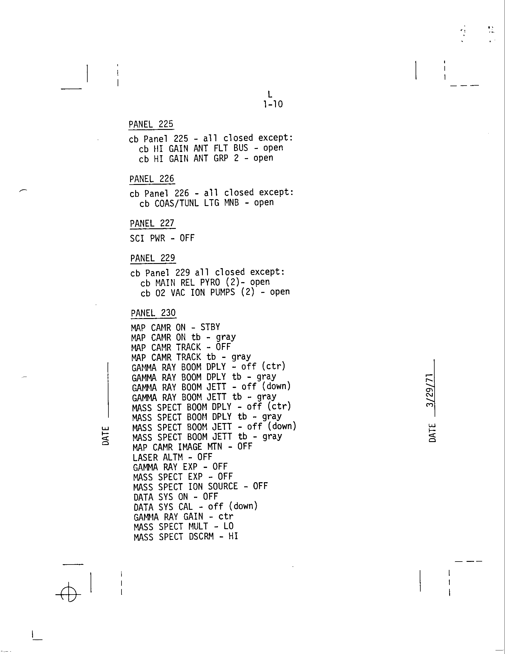 - 1-10 Panel 225, 226, 227, 229, 230