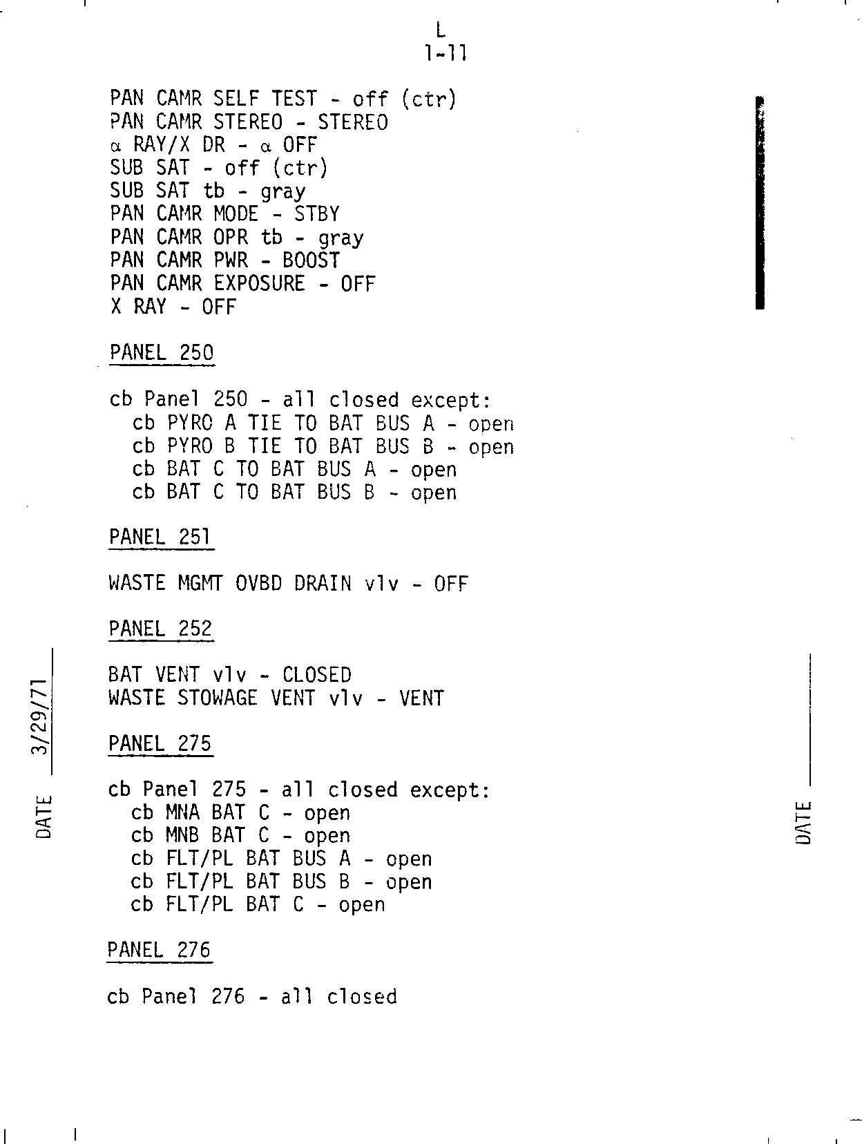 - 1-11 Panel 250, 251, 252, 275, 276