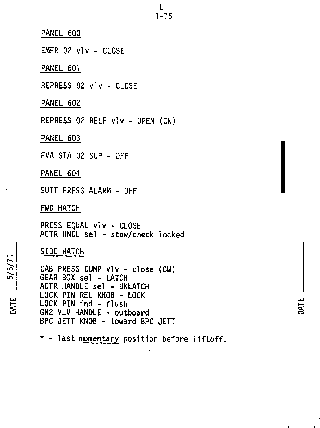 - 1-15 Panel 600, 601, 602, 603, 604, Forward hatch, Side Hatch